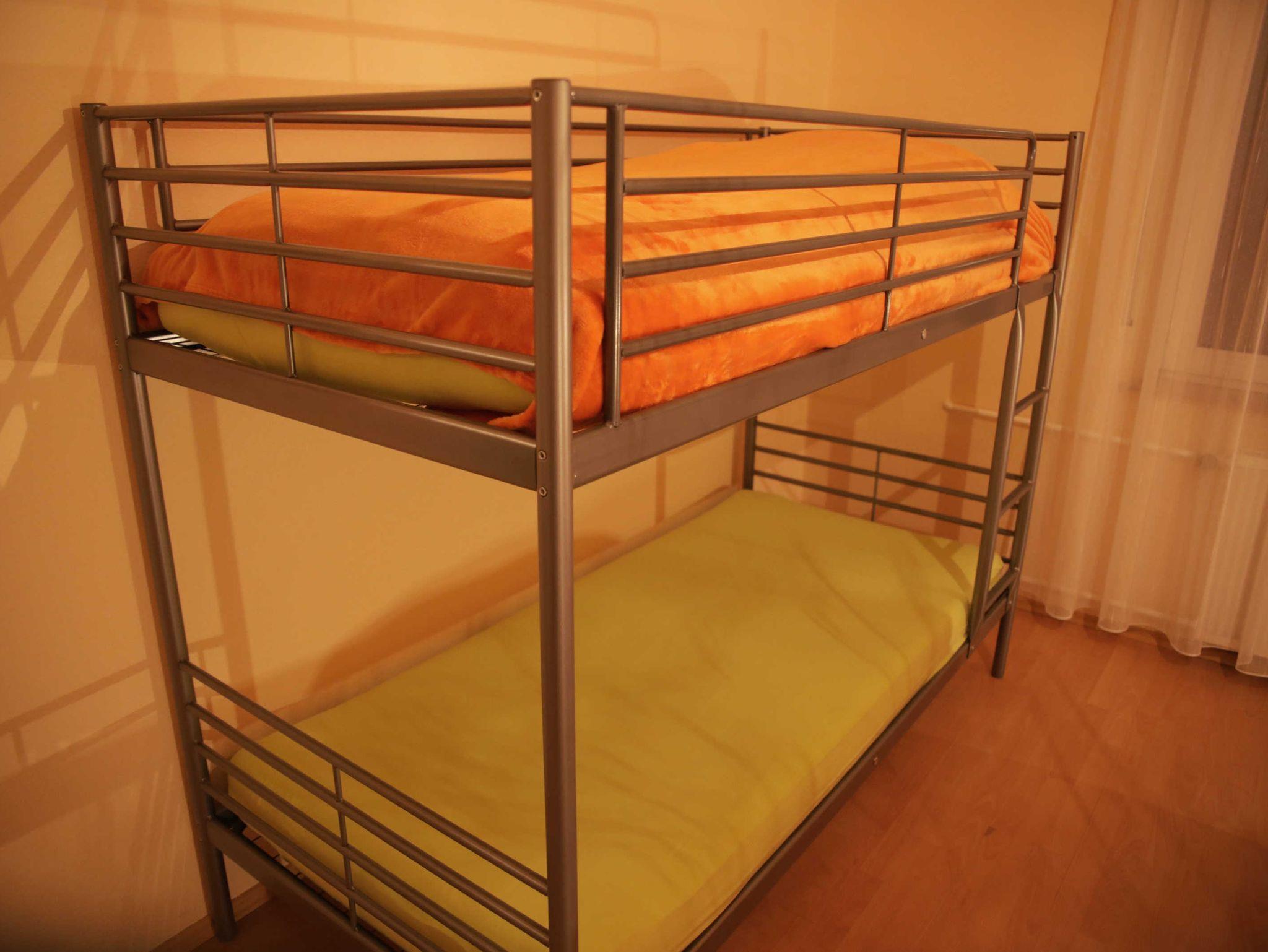 Das gemütliche und ruhige Schlafzimmer ist mit einem großen Bett (1,80m x 2,00 Meter) und einem Doppel-Stockbett ausgestattet. Der Schlafbereich ist sehr ruhig.