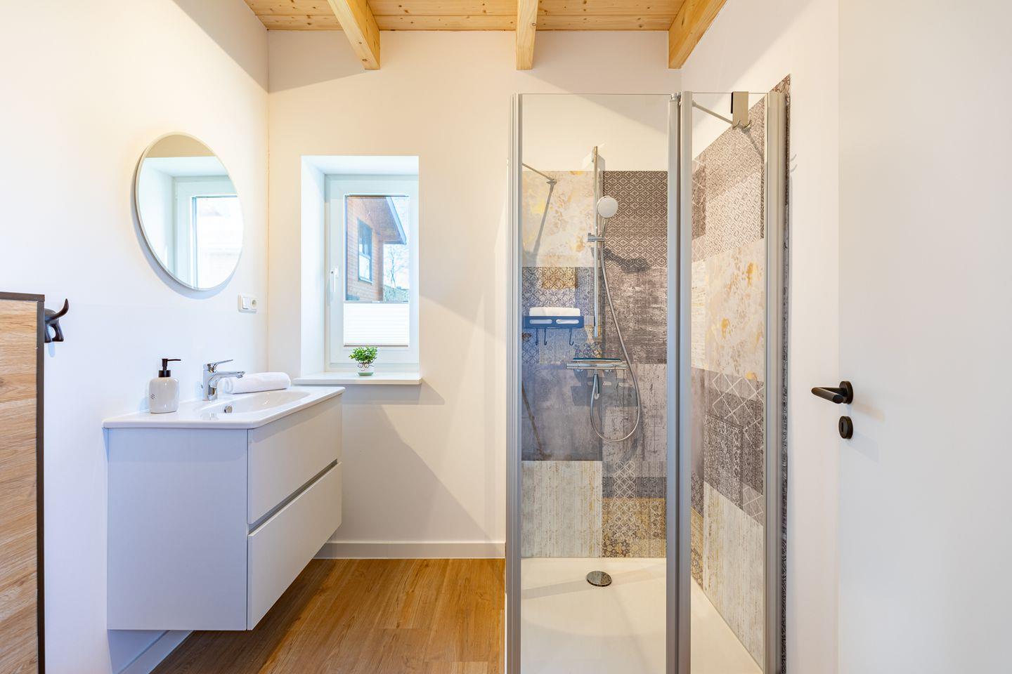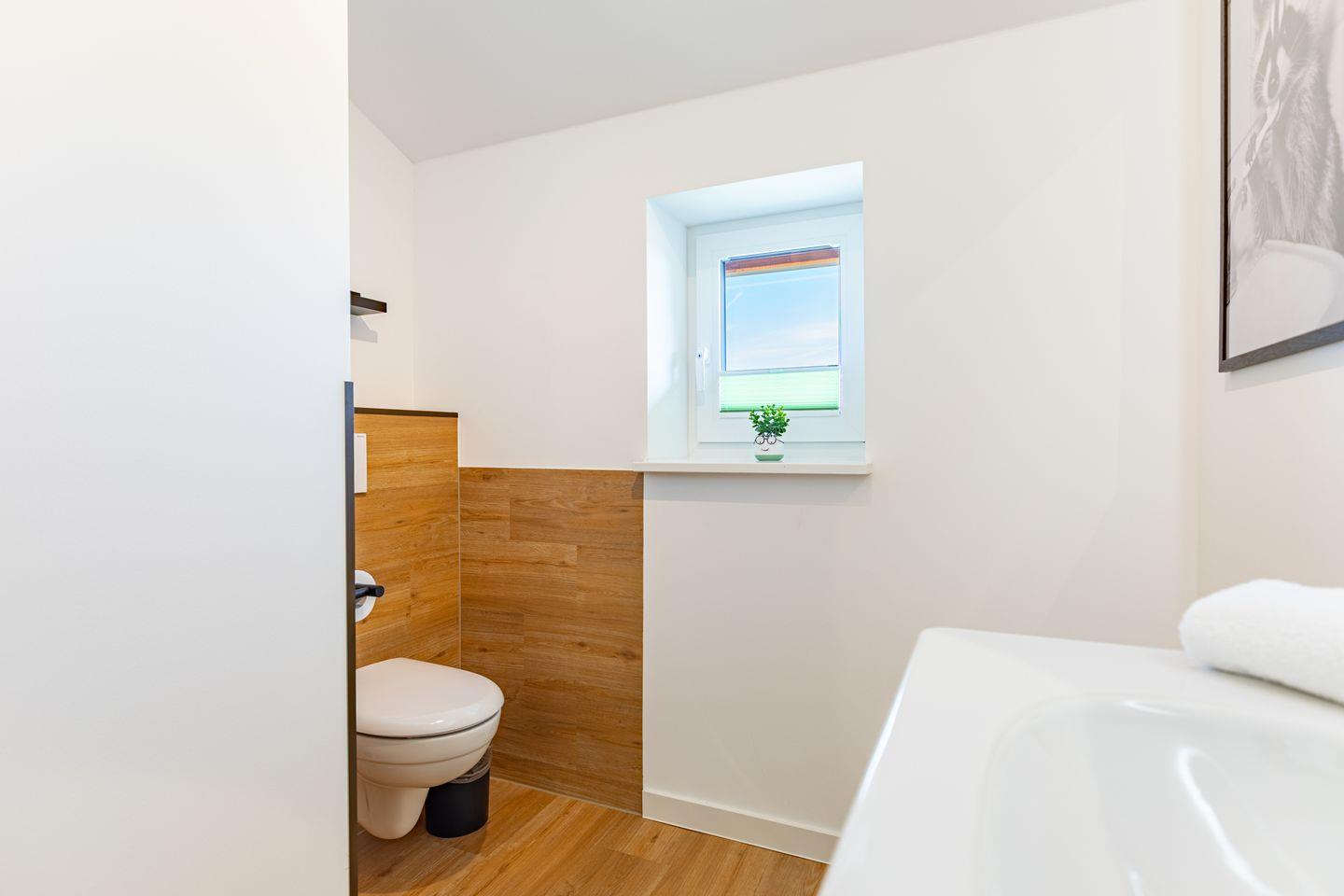 Ein modernes Badezimmer mit bodengleicher Dusche, WC sowie Sauna und einem Whirlpool sorgen für besonderen Komfort. Ein echtes Highlight ist der angrenzende Balkon mit wunderbarer Aussicht über das Katinger Watt!
