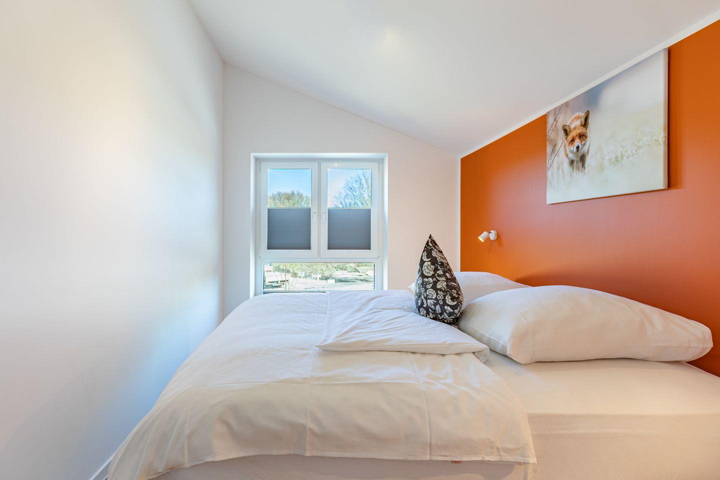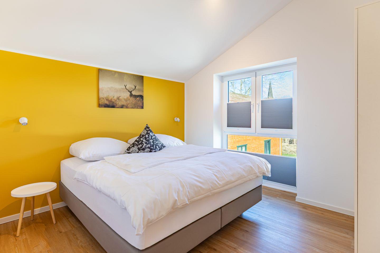 Das freistehende Ferienhaus bietet auf 105m² Platz für bis zu 6 Personen und ist ideal für Familien und Gruppen. Es verfügt über insgesamt 4 Zimmer, darunter 2 behagliche Schlafzimmer mit bequemen Boxspring-Doppelbetten (180x200) im Obergeschoss und Kleiderschränken. Ein drittes Schlafzimmer mit Kleiderschrank befindet sich im Erdgeschoss der Unterkunft, in dem zwei Einzelbetten zum Träumen einladen.