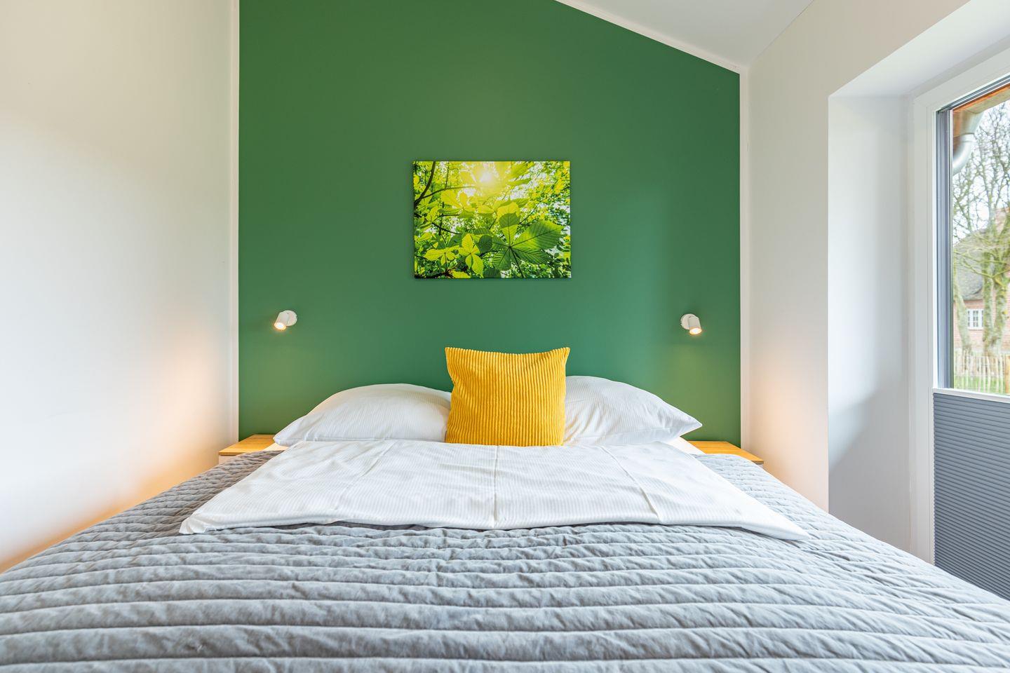 Das freistehende Ferienhaus bietet auf 60 m² Platz für bis zu 4 Personen und ist ideal für Familien und Gruppen. Es verfügt über insgesamt 3 Zimmer, darunter ein Schlafzimmer mit einem bequemen Boxspring-Doppelbett (180x200). Das zweite Schlafzimmer ist mit zwei Einzelbetten (je 90x200) ausgestattet. Beide Schlafzimmer verfügen über Kleiderschränke.