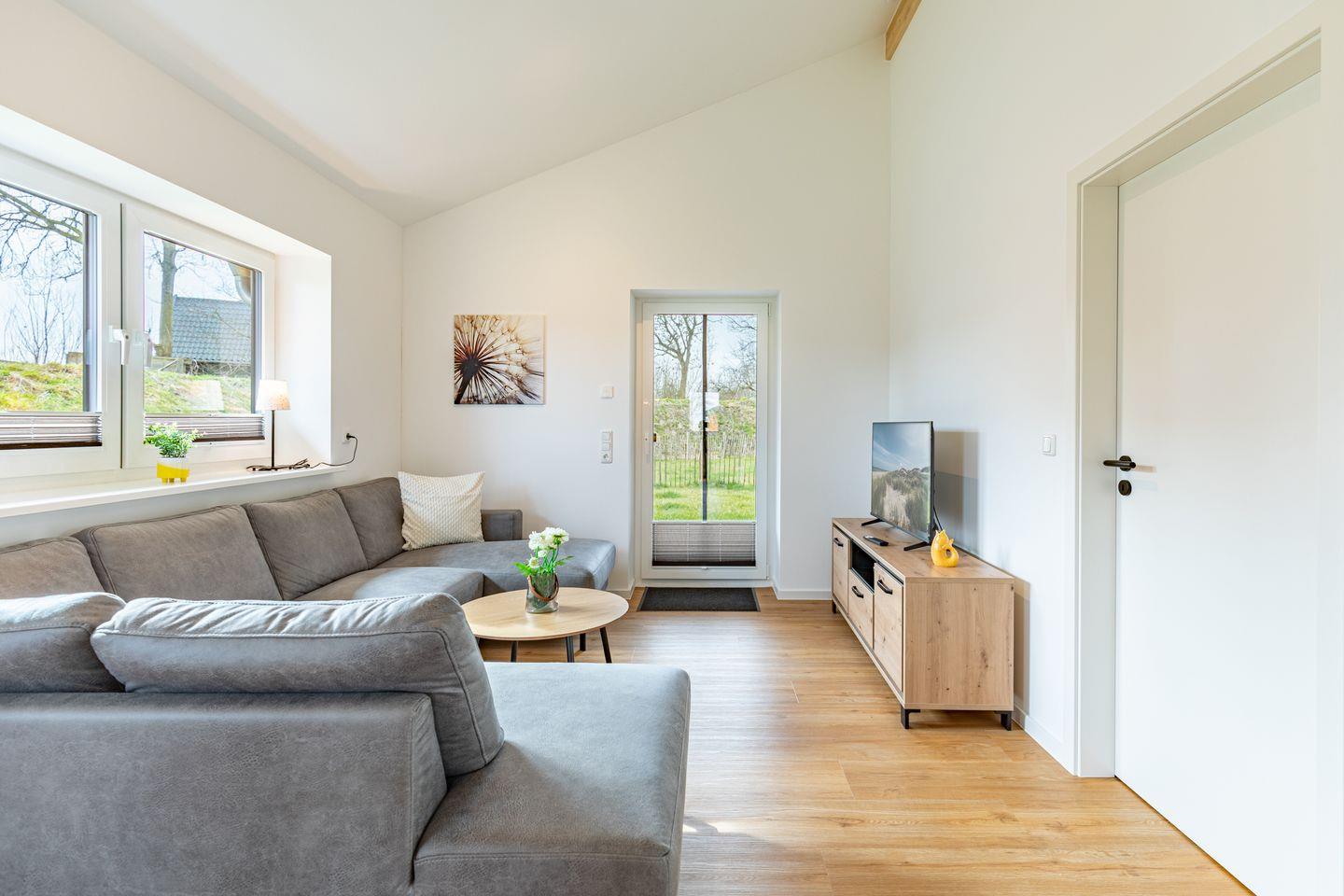 Die offene Küche ist voll ausgestattet mit Induktionskochfeld, Backofen, Mikrowelle, Spülmaschine, Senseo-Kaffeemaschine und Kühlschrank mit Gefrierfach – perfekt für gemeinsame Kochabende. Im gemütlichen Wohnbereich laden eine Sofaecke und ein Smart-Fernseher zum Verweilen ein. Kostenloses, schnelles WLAN hält Sie jederzeit online. Der angrenzende Essbereich bietet ausreichend Platz für alle Gäste.