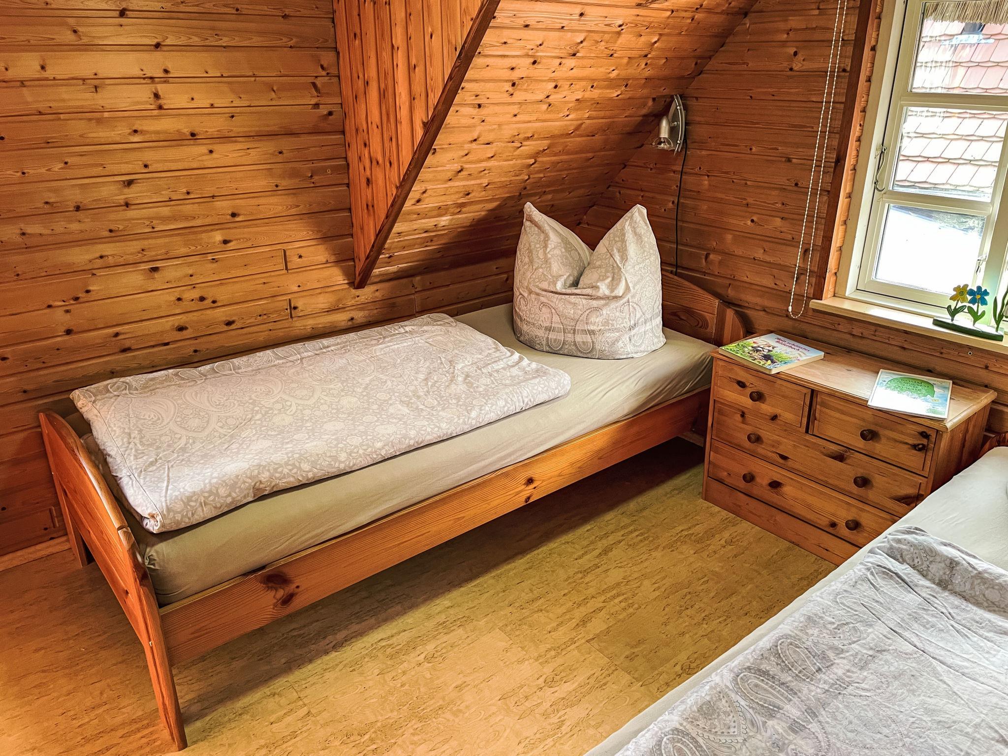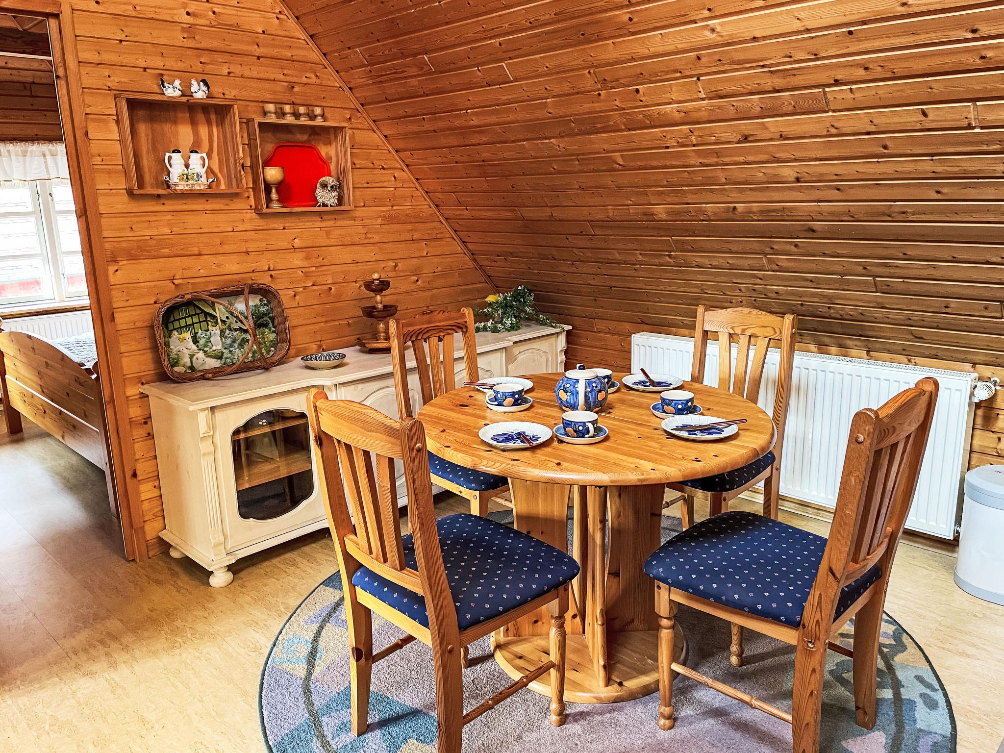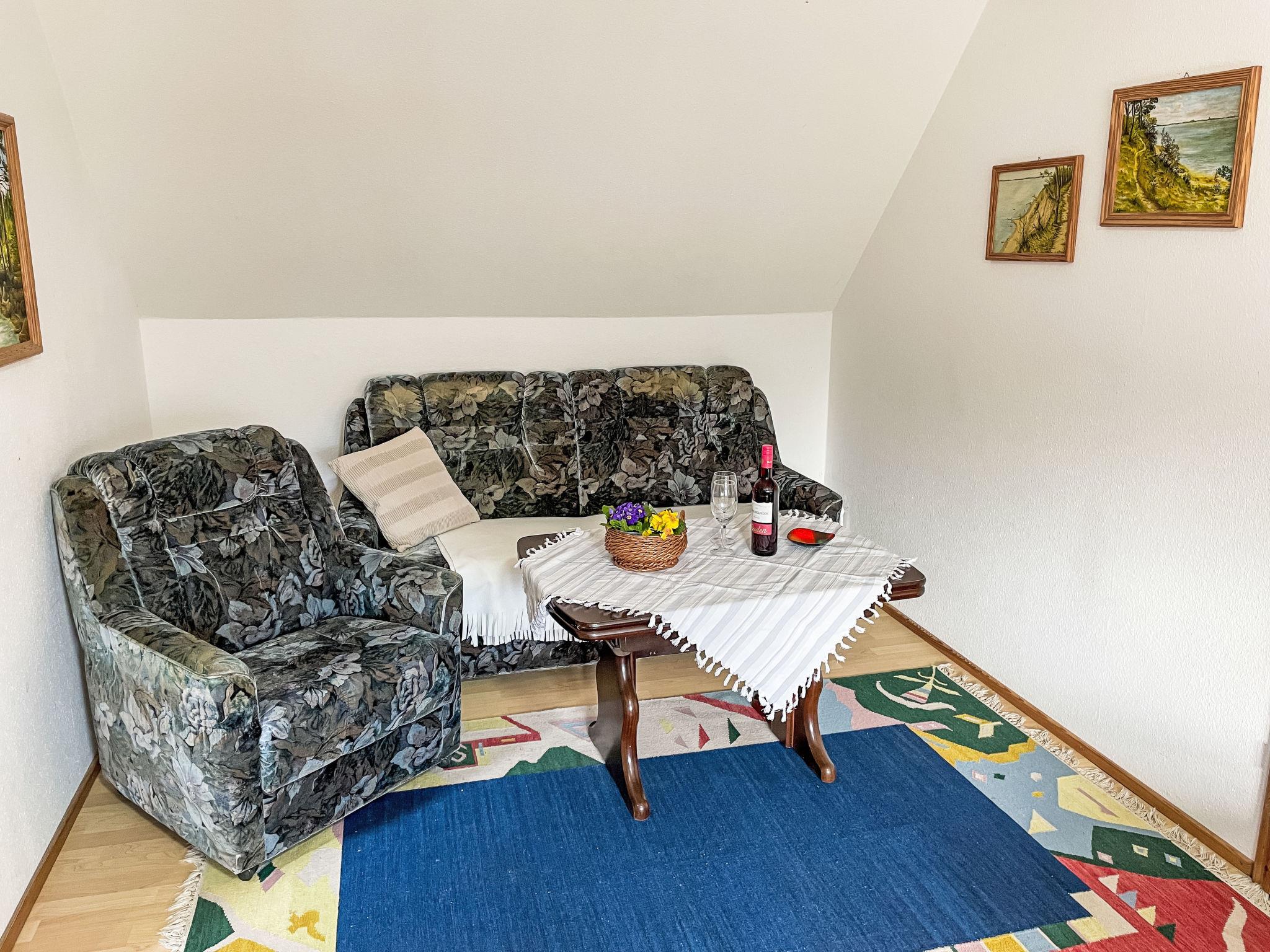 "Brigitte", 3-room apartment 65 m2, on the upper floor. Practical and wooden furniture furnishings: upper floor: living room with sloping ceilings with satellite TV (flat screen), radio. 1 double bedroom with sloping ceilings. 1 room with sloping ceilings with 2 beds. With sloping ceilings kitchen (2 hot plates, mini-oven, toaster, kettle, microwave) with dining table. Shower/WC. Gas heating. Patio. Barbecue (portable). Facilities: baby cot. Parking (2 cars). Please note: non-smokers only. Smoke alarm. Musicians are welcome in this house with their instruments.