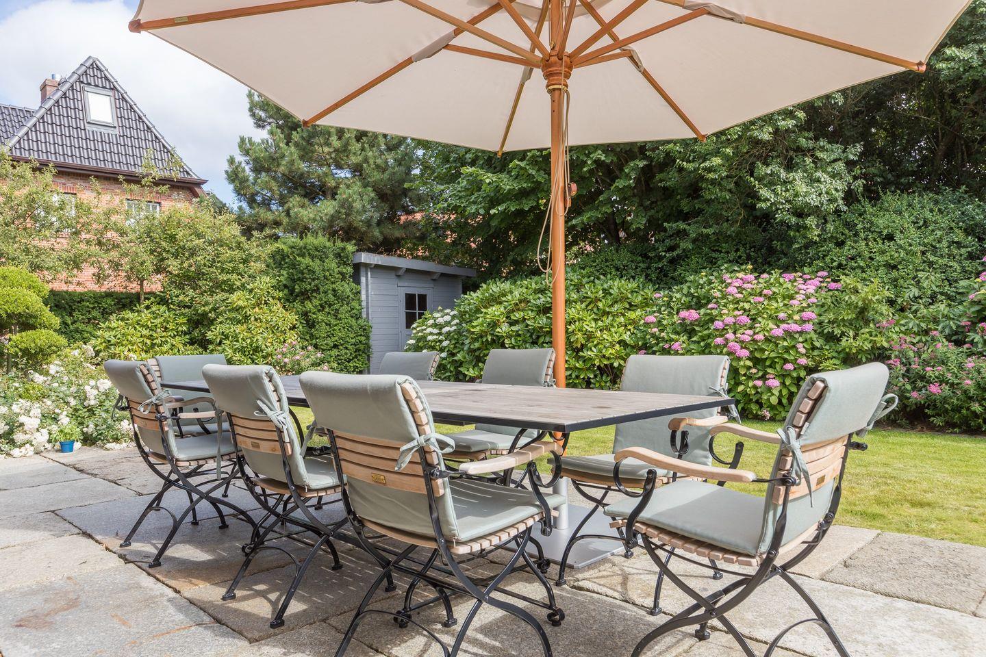 Erleben Sie den unvergleichlichen Luxus des „Hideaway Hansen Hus“ – ein Juwel mitten im historischen Kapitänsdorf Keitum. Auf rund 280 qm Wohnfläche, verteilt auf vier Ebenen, genießen Sie eine erstklassige Ausstattung und ein einmaliges Ambiente. Das exklusive Haus liegt in ruhiger Lage, umgeben von prachtvollen Hortensien und bietet auf der großzügigen Süd- und Westterrasse und im weitläufigen Garten pure Entspannung. Die geschmackvolle Inneneinrichtung und hochwertige Ausstattung lassen keine Wünsche offen – ideal für bis zu 6 Personen (8 Personen auf Anfrage).