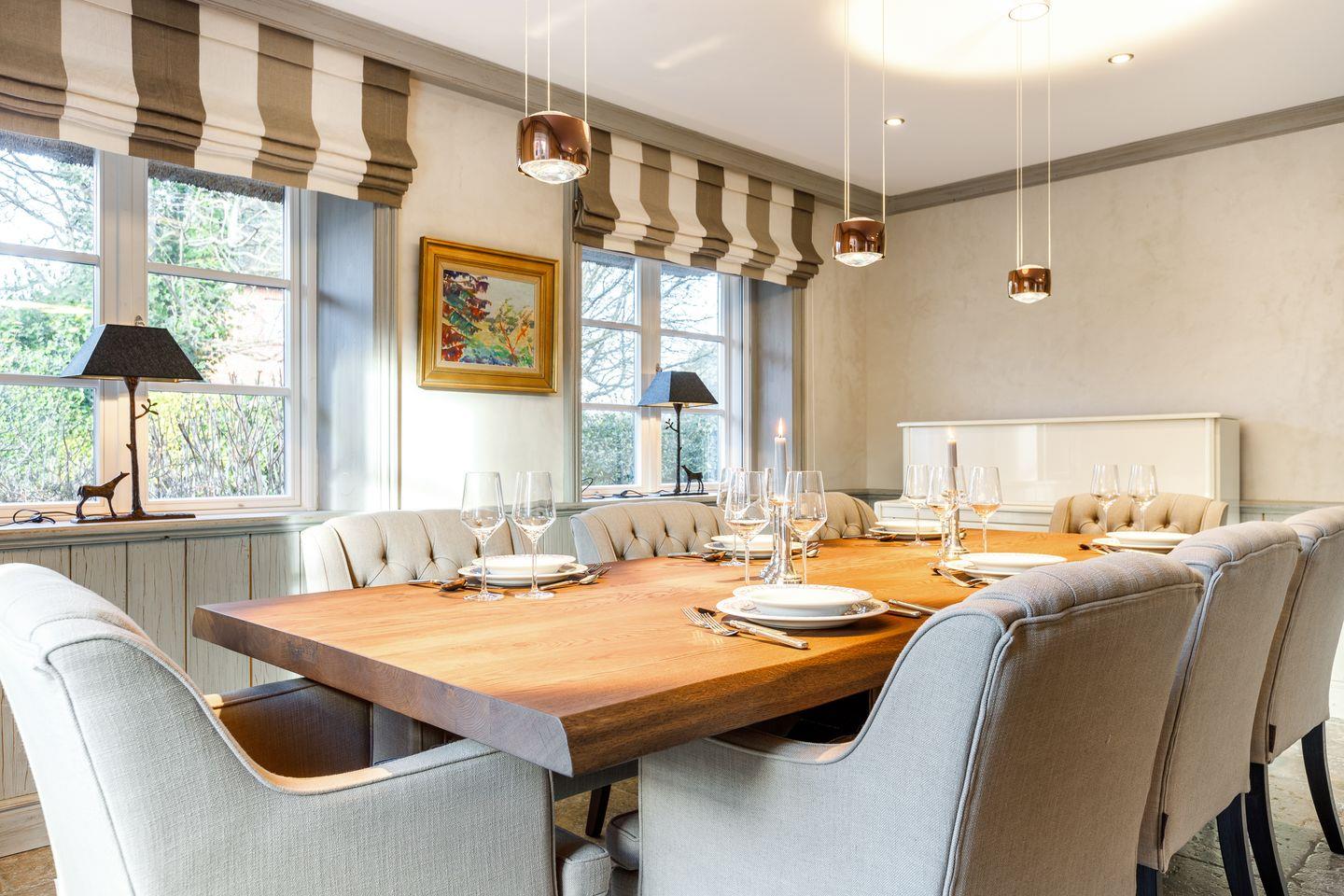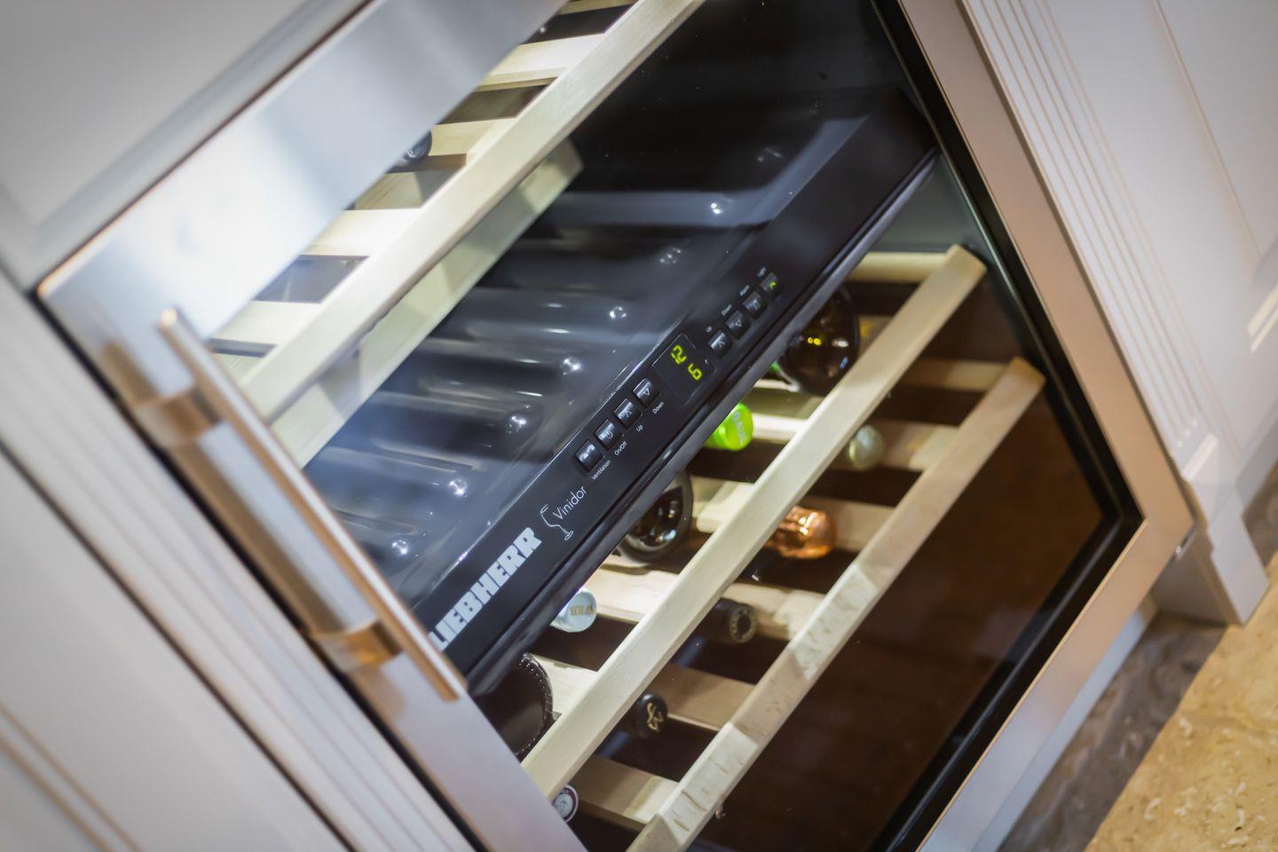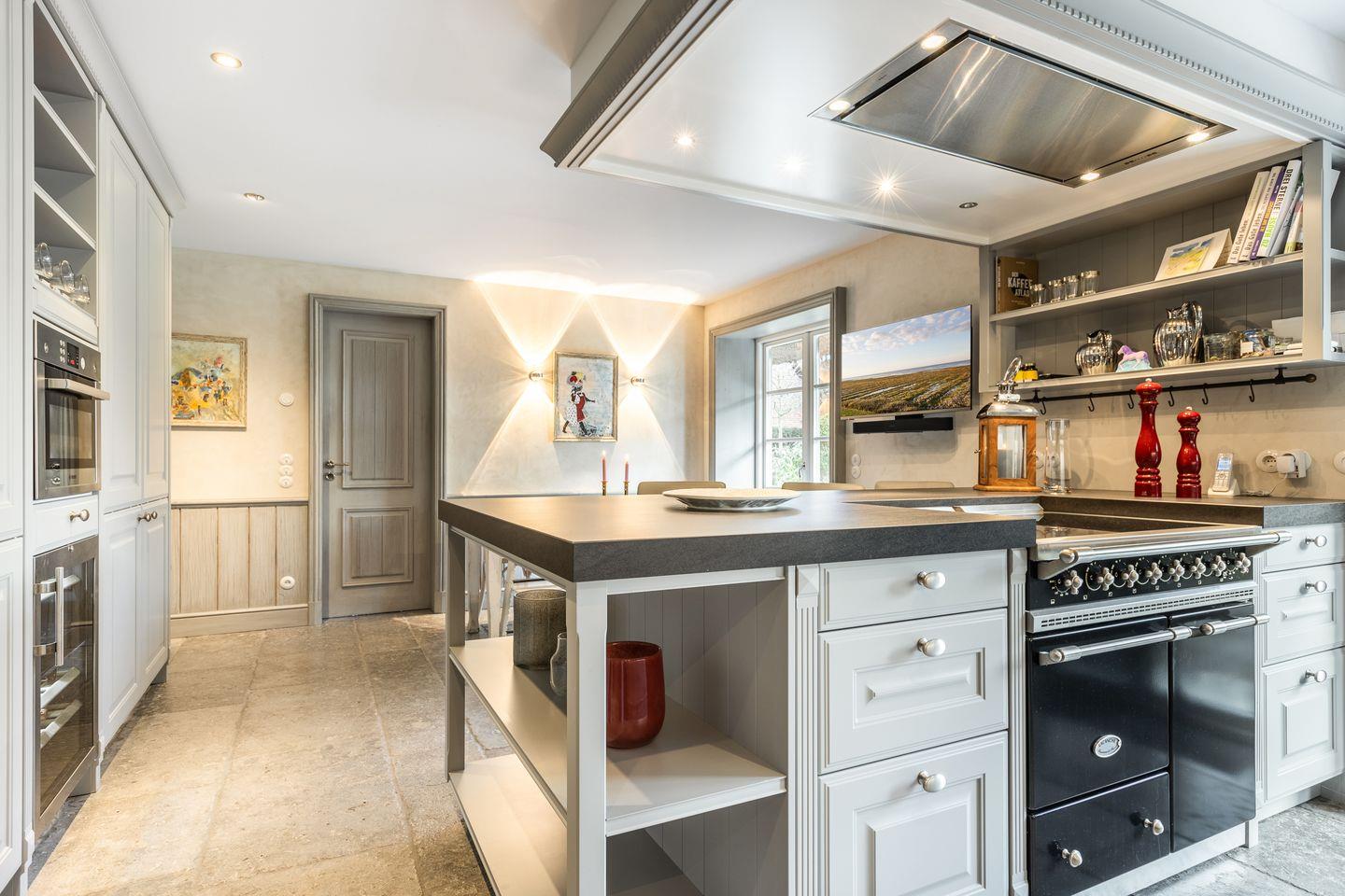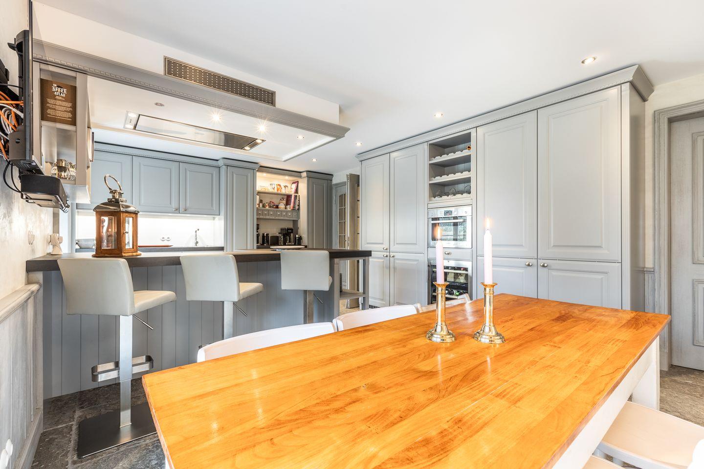 Die separate Wohnküche ist ein echtes Highlight mit hochwertigem Lacanche-Herd, zwei Kühl- und Weinschränken und einem großen Essbereich. Die Ausstattung lässt keine Wünsche offen und lädt zum gemeinsamen Kochen und Genießen ein.
