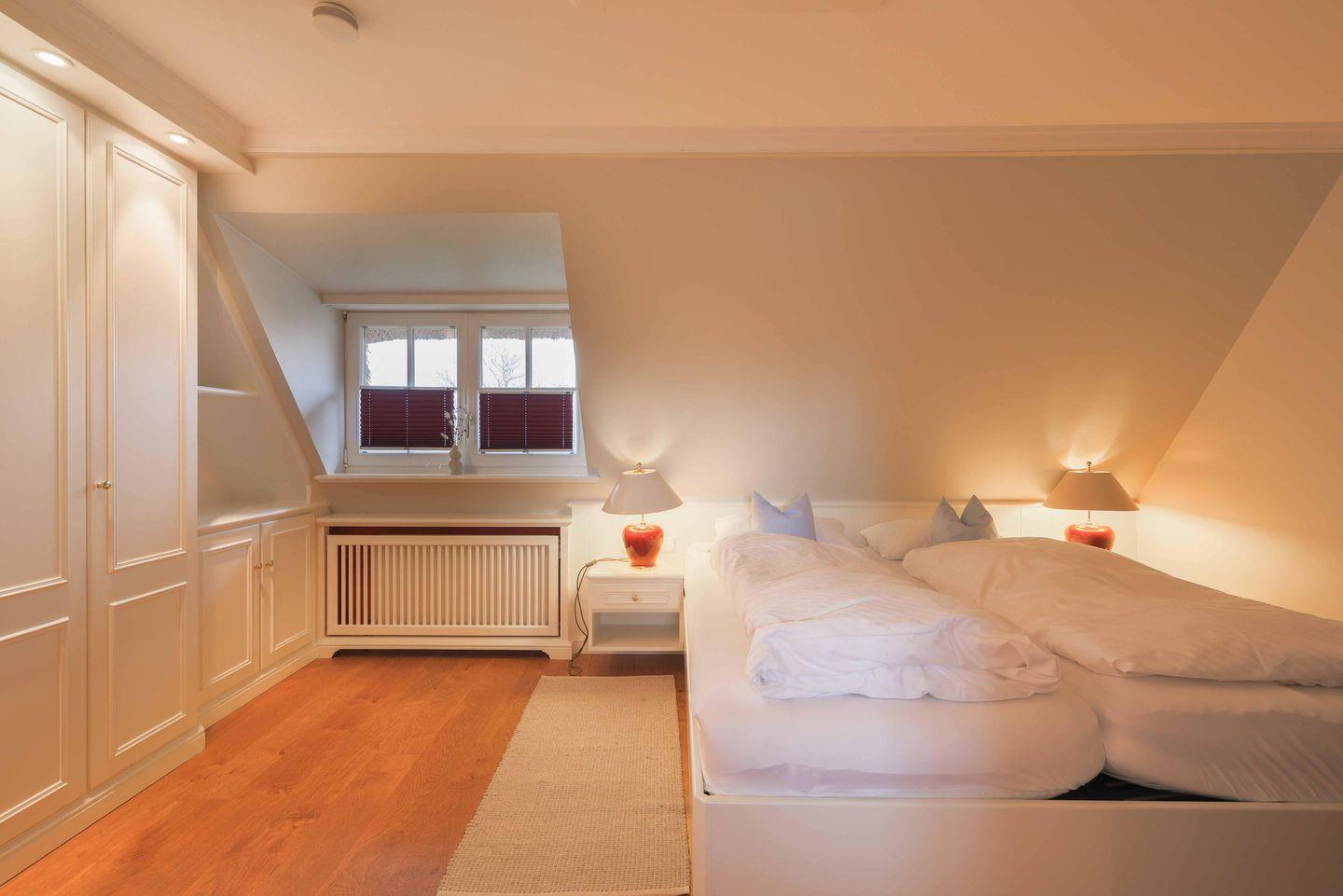 Beide Schlafzimmer der Unterkunft sind mit weiteren Fernsehern ausgestattet. Im oberen Schlafzimmer befindet sich ein Safe. Die großen Doppelbetten (200x200cm) sorgen für besonderen Schlafkomfort. Kleiderschränke bieten zusätzlichen Stauraum.