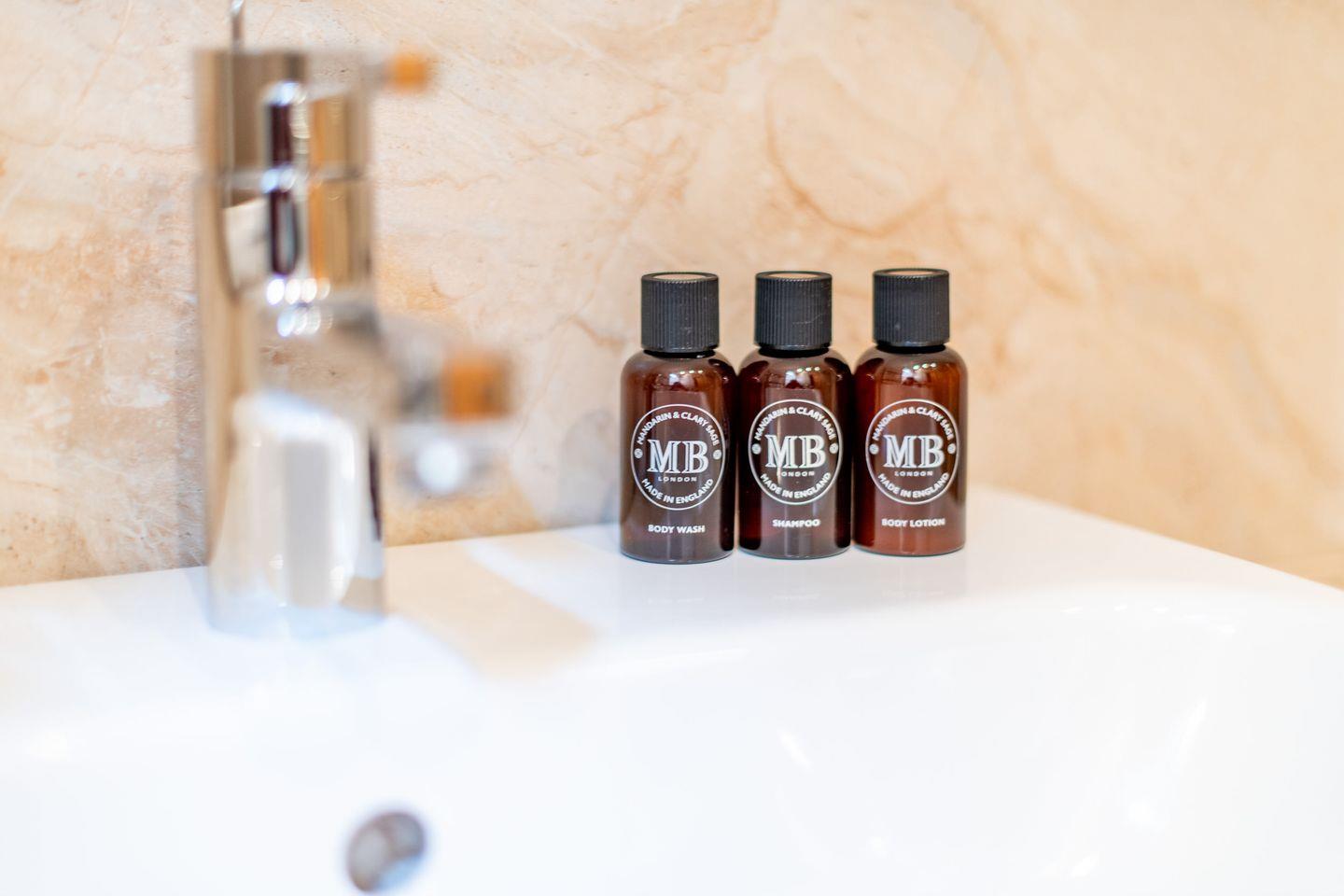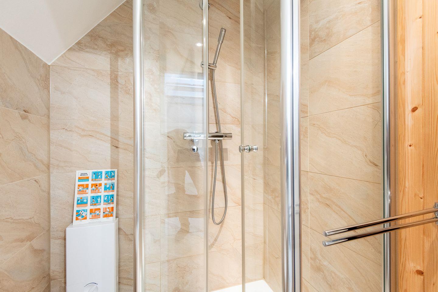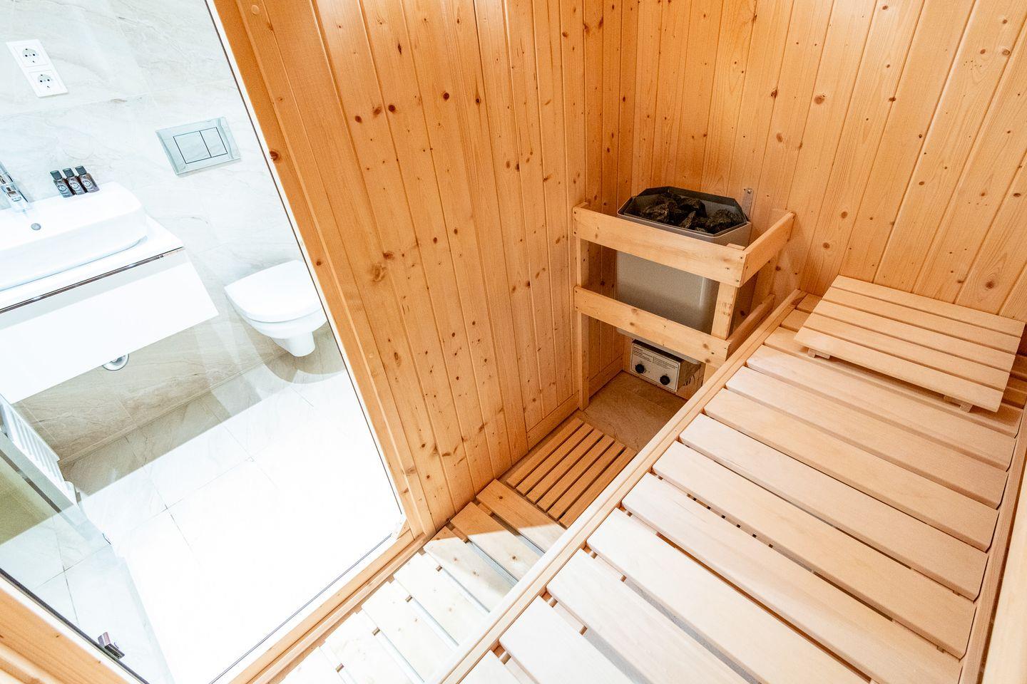 Zwei hochwertig ausgestattete Badezimmer, beide mit Dusche, WC und Fön, sowie eines zusätzlich mit Badewanne, sorgen für höchsten Komfort. Ein Gäste-WC bietet zusätzliche Bequemlichkeit. Nach einem langen Tag auf Sylt lädt die hauseigene Sauna im Wellnessbereich zum Entspannen und Erholen ein.
