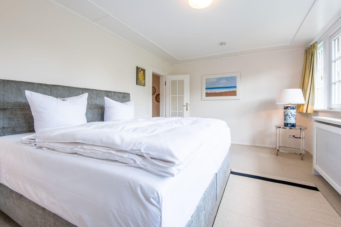 Die drei geschmackvoll eingerichteten Schlafzimmer bieten erholsamen Schlafkomfort. Ein Schlafzimmer ist mit einem großzügigen Doppelbett (200x200 cm) und einem Kleiderschrank ausgestattet. Die weiteren beiden Schlafzimmer verfügen über Einzelbetten, die jeweils auf eine Doppelbettgröße von 180x200 cm ausgezogen werden können, sowie über Kleiderschränke. Diese Zimmer bieten eine ruhige und behagliche Atmosphäre für entspannte Nächte.