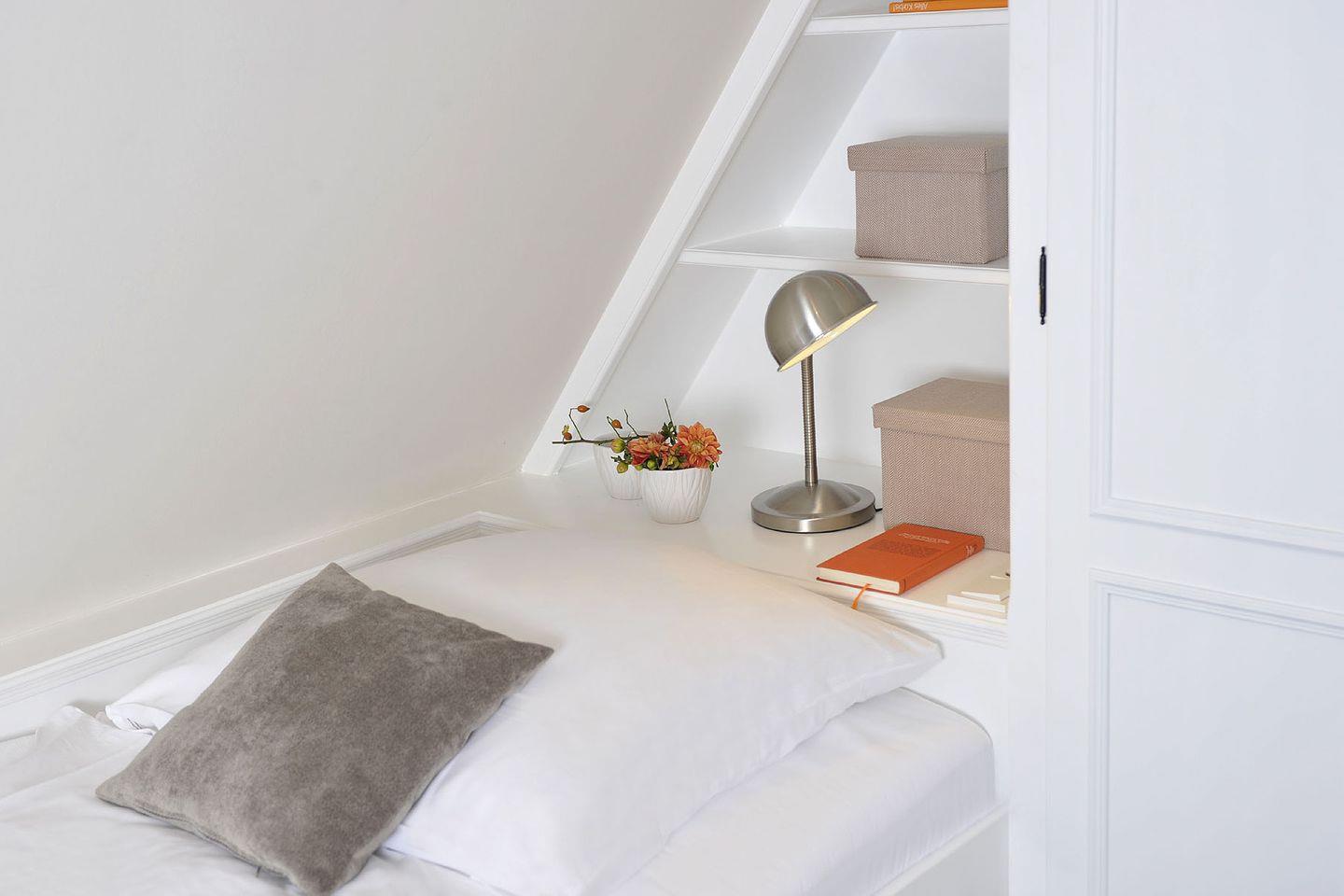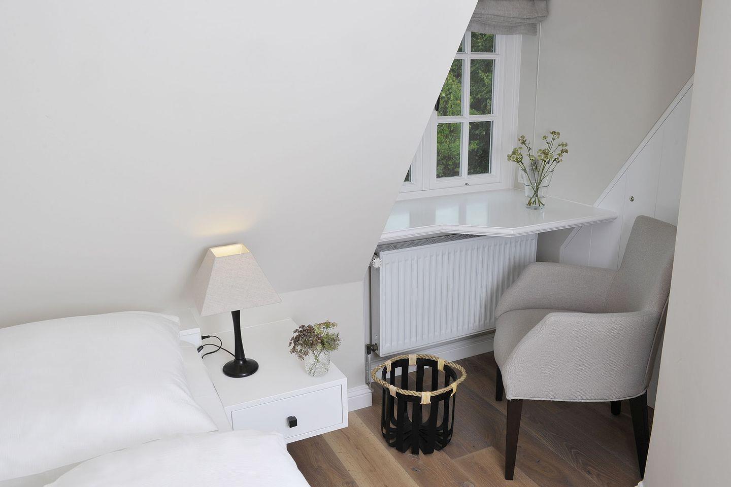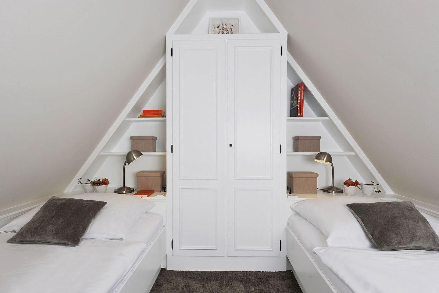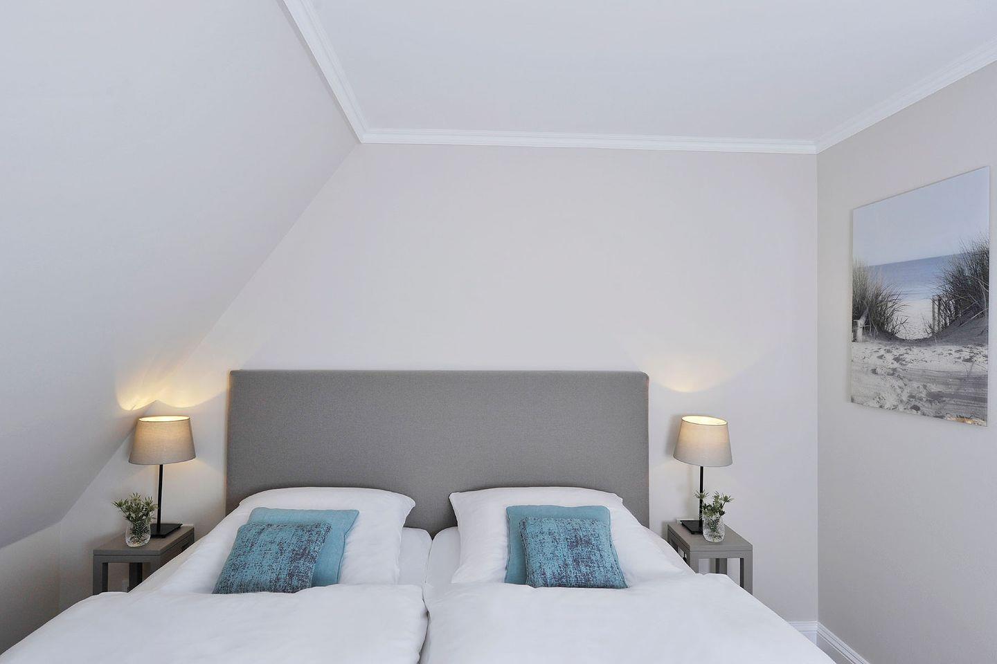 Spitzgiebel: Schlafzimmer mit 2 getrennt stehenden Einzelbetten und TV