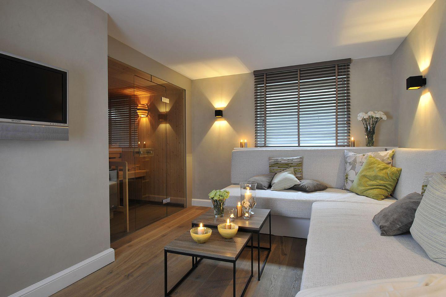 Souterrain: Wellnessbereich mit Sauna, Ruhe Ecke, Dusche und WC, Waschmaschine und Trockner