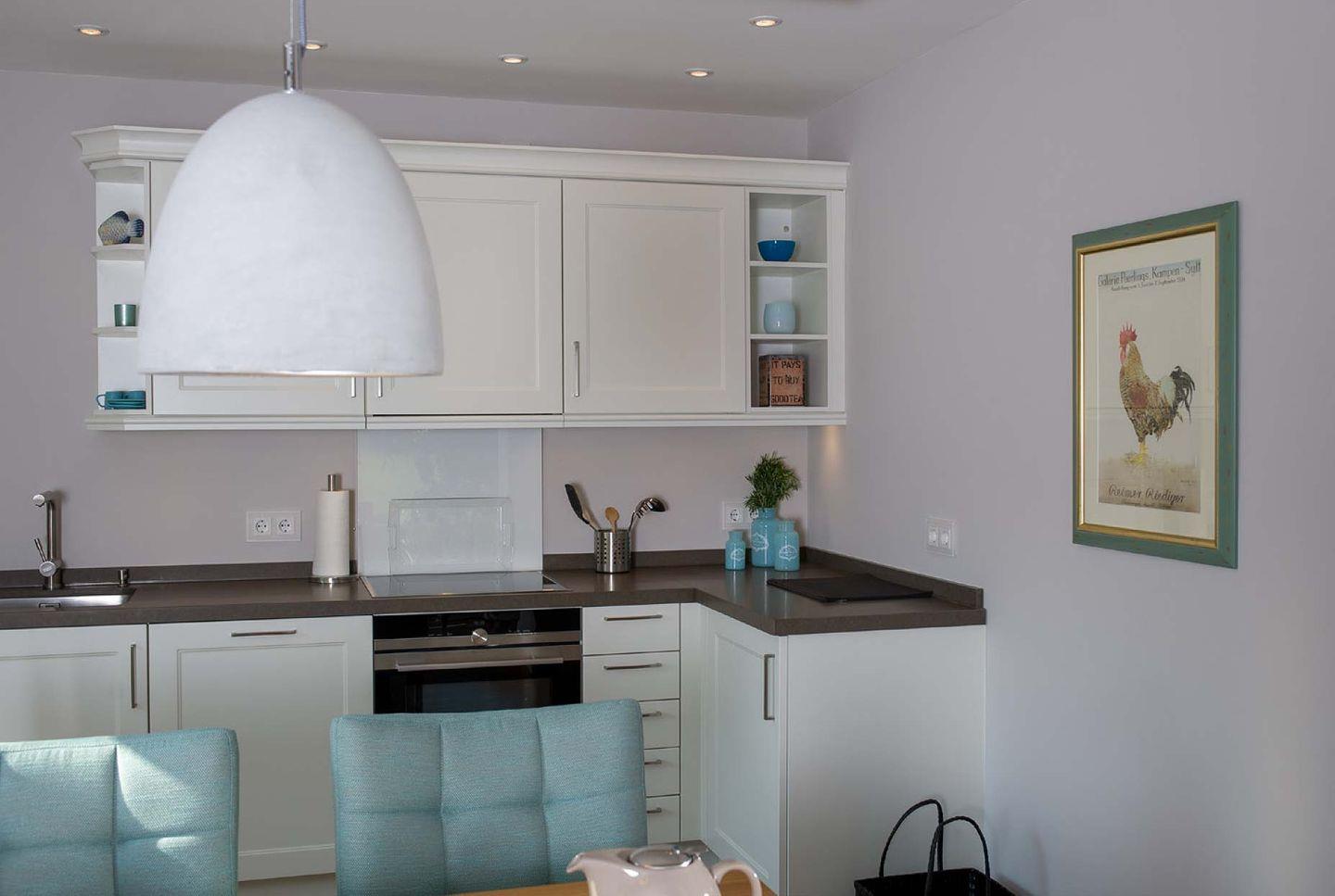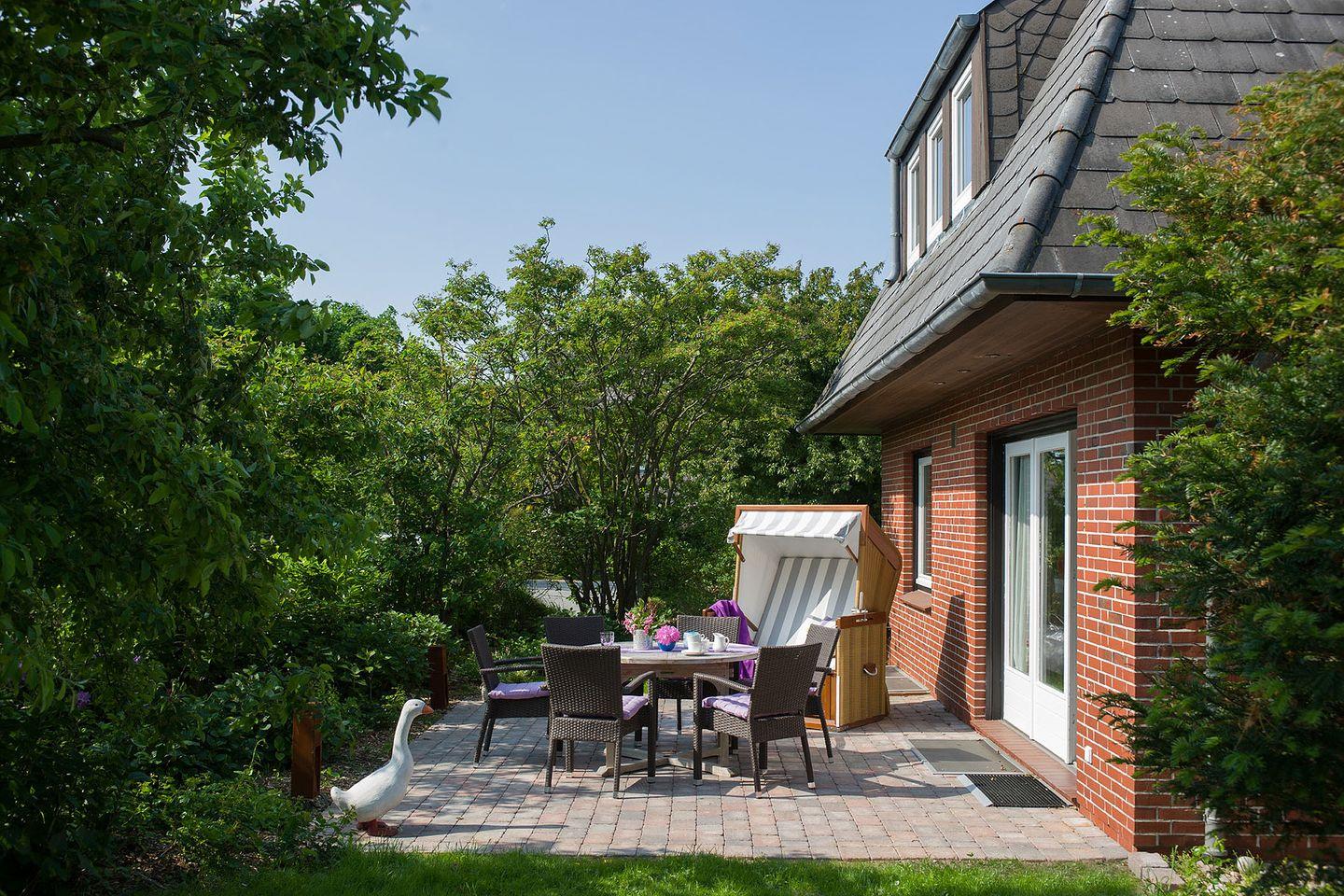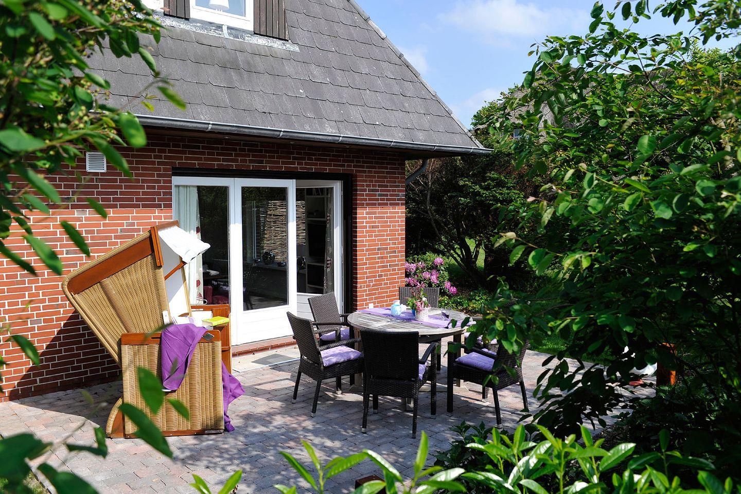 Das exklusive Ferien Domizil im Erich-Johannsen-Wai 7 in Keitum bietet für maximal zwei Personen ausreichend Platz, um hier gemeinsam auf zwei Ebenen und 74 m² entspannte Urlaubstage zu verbringen. Große Fensterfronten sorgen für ein natürliches und helles Wohlbefinden. Sie öffnen die Wohnung hin zu den Plätzen auf der Terrasse und in den 9000 m² großen Gemeinschaftsgarten. Von morgens bis abends lässt sich die Sonne genießen. Strand-Motive prägen die Dekore auf den Kissen und Stoffen des großzügigen Wohn– und Essbereichs. Die Farben Türkis und Brombeer gehören zum Farbkonzept der Inneneinrichtung und werden durch einen warmen Taupeton der Wände unterstrichen. Der offene Wohnbereich mit modernem Esstisch, kuscheliger Couch und voll ausgestatteter Küche tragen zum sympathischen Wohnambiente bei. Jeder Gast verfügt über ein eigenes, modernes Bad. Abends findet man Ruhe und Entspannung bei gutem Essen und einer Flasche Wein vor dem Ethanol-Kamin. Eine schöne Holztreppe verbindet den Wohnbereich mit dem behaglich anmutenden Schlafbereich im Untergeschoss. Das Ferien Domizil »Sonnenkoje« ist aufgrund seiner besonderen Lage ein idealer Ausgangspunkt, um den grünen Ort der Insel – Keitum – mit seinen zahlreichen Alleen und dem alten Baumbestand zu erkunden.