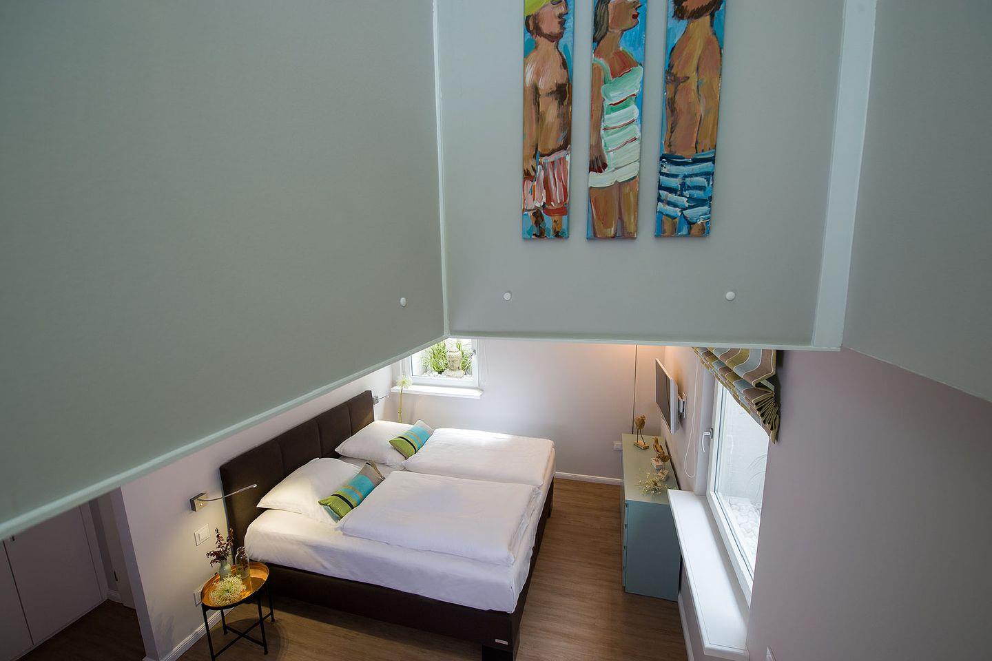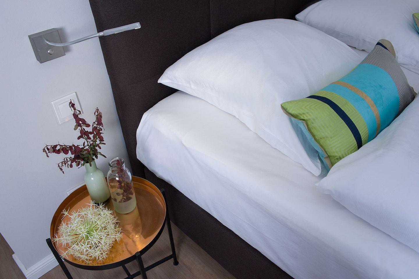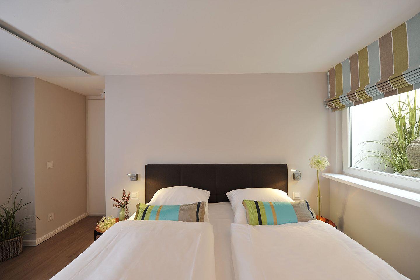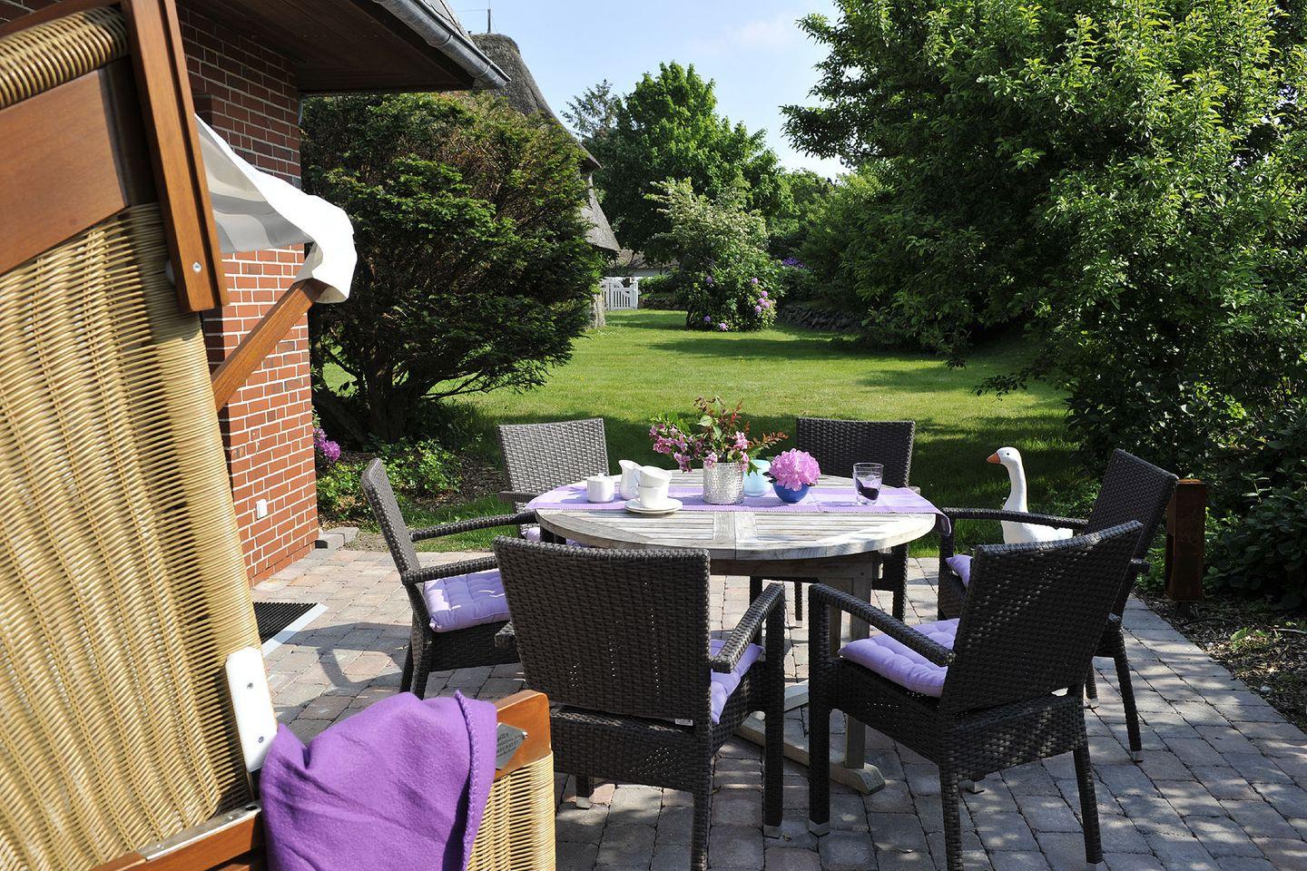 Das exklusive Ferien Domizil im Erich-Johannsen-Wai 7 in Keitum bietet für maximal zwei Personen ausreichend Platz, um hier gemeinsam auf zwei Ebenen und 74 m² entspannte Urlaubstage zu verbringen. Große Fensterfronten sorgen für ein natürliches und helles Wohlbefinden. Sie öffnen die Wohnung hin zu den Plätzen auf der Terrasse und in den 9000 m² großen Gemeinschaftsgarten. Von morgens bis abends lässt sich die Sonne genießen. Strand-Motive prägen die Dekore auf den Kissen und Stoffen des großzügigen Wohn– und Essbereichs. Die Farben Türkis und Brombeer gehören zum Farbkonzept der Inneneinrichtung und werden durch einen warmen Taupeton der Wände unterstrichen. Der offene Wohnbereich mit modernem Esstisch, kuscheliger Couch und voll ausgestatteter Küche tragen zum sympathischen Wohnambiente bei. Jeder Gast verfügt über ein eigenes, modernes Bad. Abends findet man Ruhe und Entspannung bei gutem Essen und einer Flasche Wein vor dem Ethanol-Kamin. Eine schöne Holztreppe verbindet den Wohnbereich mit dem behaglich anmutenden Schlafbereich im Untergeschoss. Das Ferien Domizil »Sonnenkoje« ist aufgrund seiner besonderen Lage ein idealer Ausgangspunkt, um den grünen Ort der Insel – Keitum – mit seinen zahlreichen Alleen und dem alten Baumbestand zu erkunden.