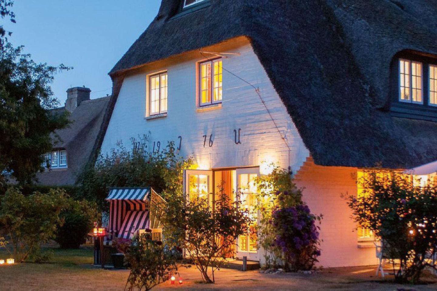 Das exklusive 4-Sterne Ferien Domizil im Gaat 28 in Keitum bietet auf zwei Ebenen und 126 m² ausreichend Platz für zwei Erwachsene und zwei Kinder. Ideal für einen Sylt-Urlaub mit der Familie oder eine Auszeit zu Zweit. Friesische Gemütlichkeit bekommt hier eine neue Dimension. Das Haus erstrahlt heute in Taupe, Violett, Türkis und Orange. Das sind die Farben der gemütlich, freundlich bis sinnlichen wirkenden Räume. Alles fügt sich wunderbar zusammen und lässt ein sehr angenehmes und beruhigendes Wohnambiente entstehen. Die zwei Schlafzimmer im Obergeschoss wurden mit viel Liebe zum Detail eingerichtet, das Kinderzimmer mit dem gemütlichen Etagenbett in der Schräge wurde erst im Jahr 2017 neu gestaltet. Das Wohnzimmer mit Essplatz und Kamin öffnet sich zu den beiden in Naturstein ausgeführten Terrassen. Der umschließende, große Garten lädt in aller Ruhe zum Träumen und Entspannen ein. Ob die Träume im farbenfrohen Gaat 28 bunter sein werden, das muss jeder Gast selbst ergründen.