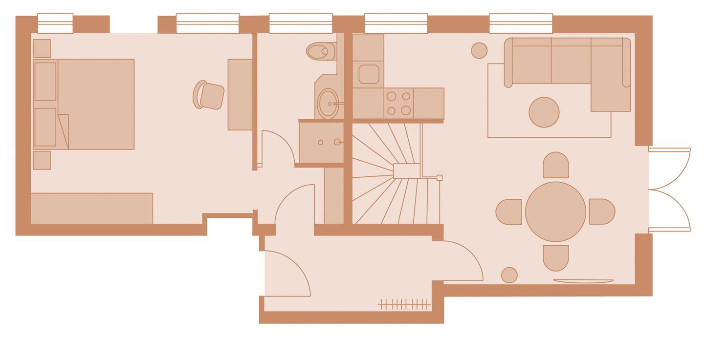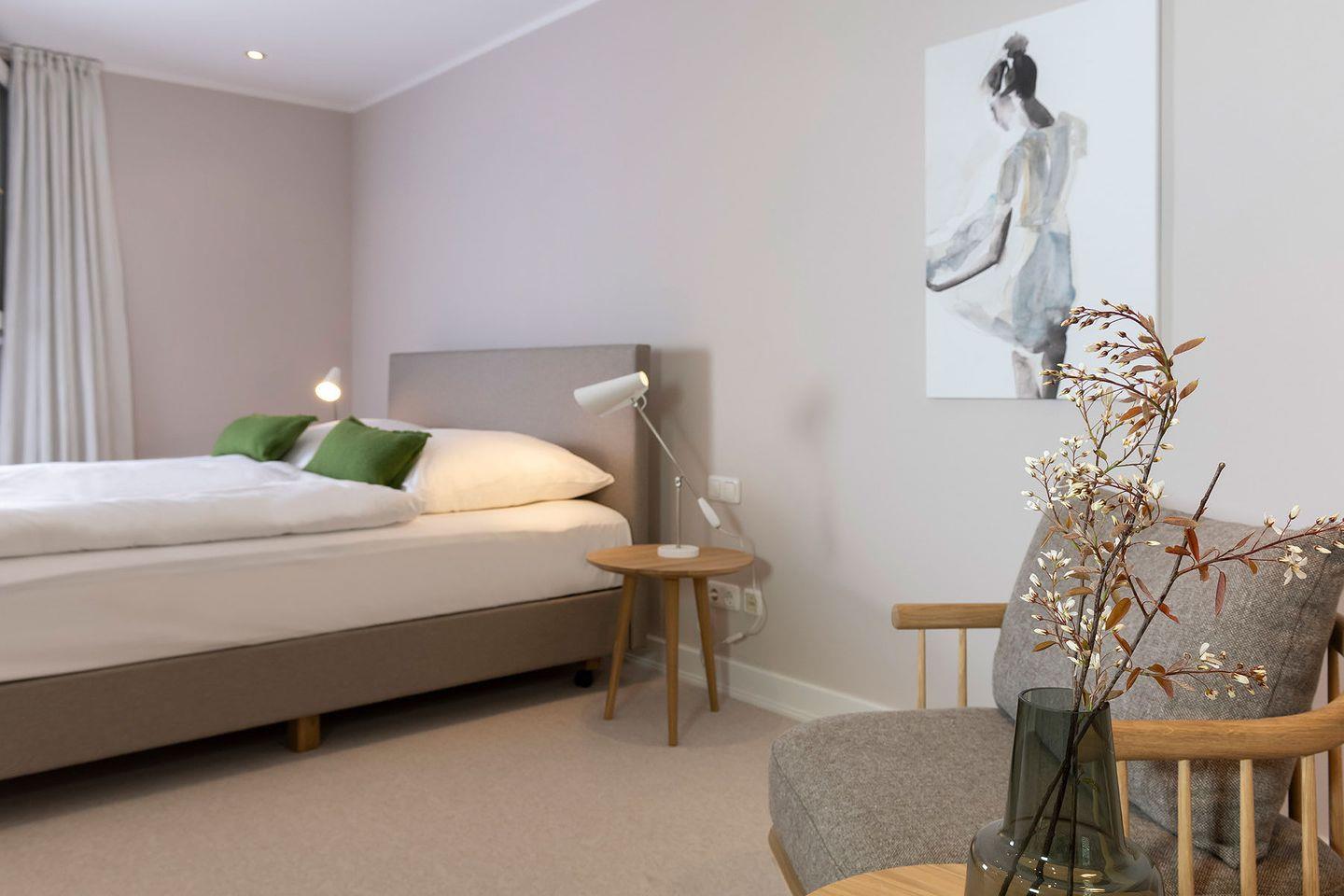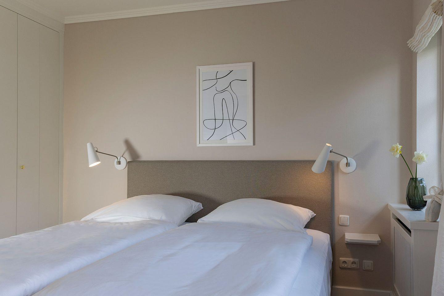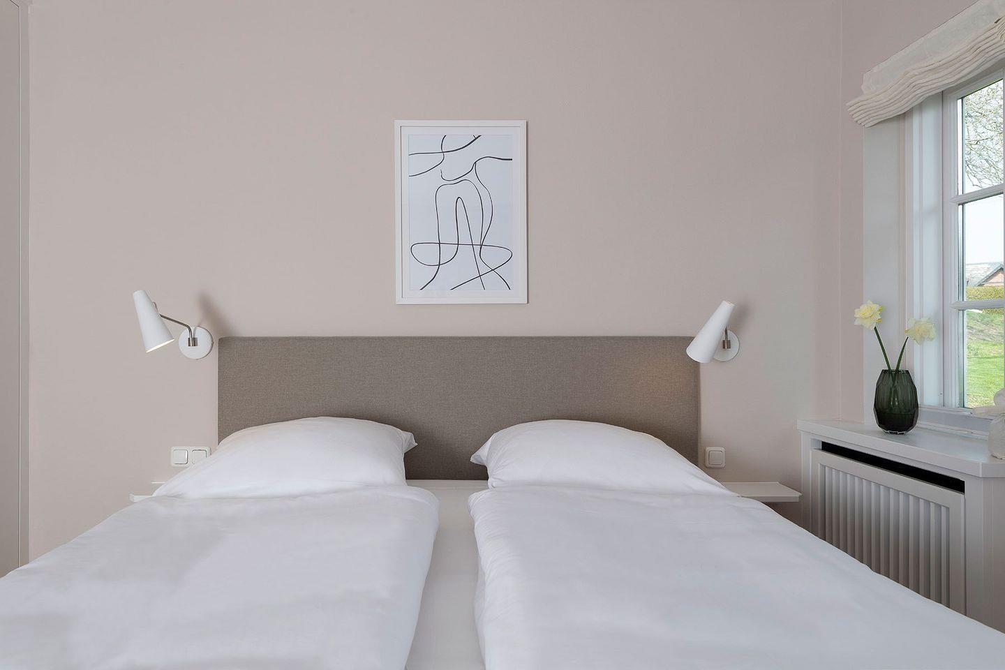 Das im »Nordisch-Skandi-Style« eingerichtete Ferien Domizil »Leichte Brise« befindet sich im Erdgeschoss des Groot's Hu¨s und bietet fu¨r maximal vier Personen ausreichend Platz, um gemeinsam auf zwei Ebenen und 112 m² entspannte Urlaubstage zu verbringen. Zwei jeweils an Wohn- und Schlafraum gelegene und nach Su¨den und Osten ausgerichtete Terrassen erweitern den Wohnbereich zum Gemeinschaftsgarten. Die Sonnenplätze sind jeweils mit Gartenmöbeln und Strandkorb ausgestattet.