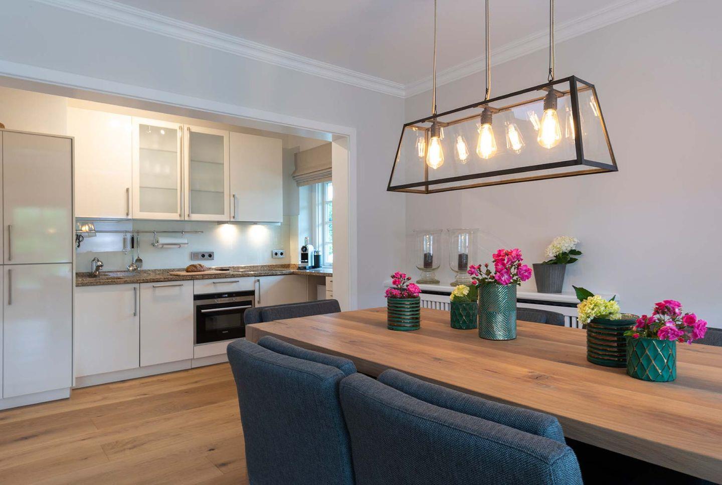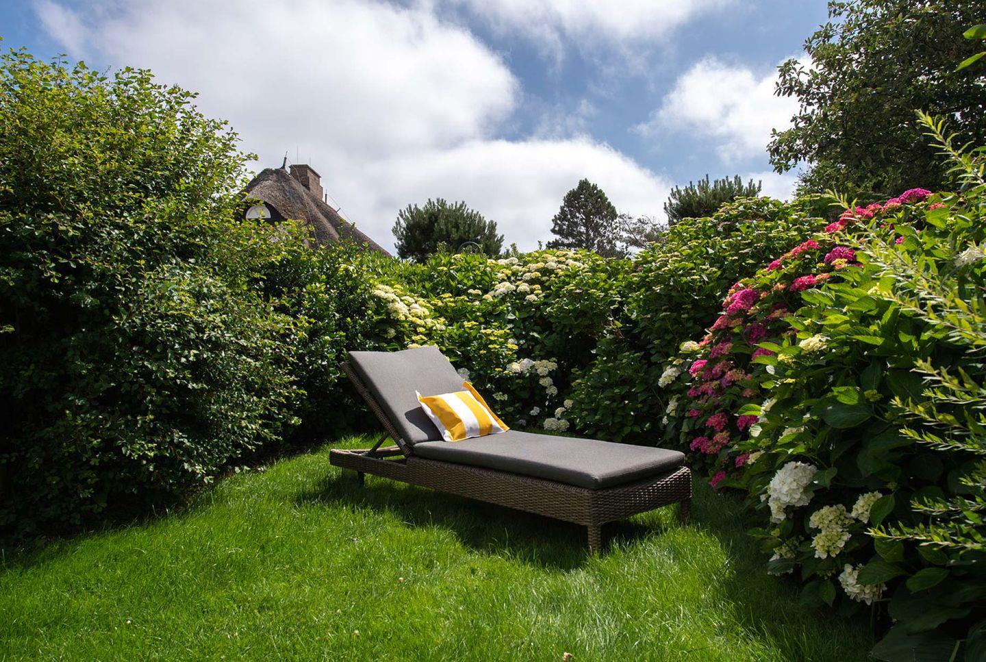 Das ebenerdige 5-Sterne-Domizil, in ruhiger und zentraler Lage in Keitum, liegt in unmittelbarer Nähe zum BENEN-DIKEN-HOF und bietet auf 72qm einen zeitgemäßen, wohligen Rückzugsort für erholsame Tage zu zweit auf Sylt. Das Gefühl des Wohlbefindens/Ankommens beginnt gleich beim Betreten der 2018 renovierten 5-Sterne-Wohnung: Ein Windfang mit großem Spiegel und Garderobe führt über die kleine Diele mit Gäste-WC zum Herzstück dieses Domizils, dem hellen und lichtdurchfluteten Wohnzimmer. Die helle und offene Gestaltung des Wohnbereiches schafft eine warme Atmosphäre, die man auch bei stürmischen Tagen an der Nordseeküste spüren kann. Im angrenzenden Essbereich mit voll ausgestatteter Küche kann man lange genussvolle Abende genießen. Das Bild des Wohlfühlens vervollständigen das Tageslicht-Badezimmer mit Dusche und das Schlafzimmer mit King-Size-Bett. Im Obergeschoss des Hauses befindet sich noch eine weitere abgegrenzte Wohnung für bis zu vier Personen– ideal auch für Freunde oder befreundete Familien. Die nach Süden ausgerichtete Naturstein-Terrasse bietet einen traumhaften Rückzugsort vom Alltag, zum Erholen und Seele baumeln lassen. Der Strandkorb, eine Liege und der großzügige Essplatz laden mit Blick auf den liebevoll gestalteten Grünbereich zum entspannten Verweilen ein.