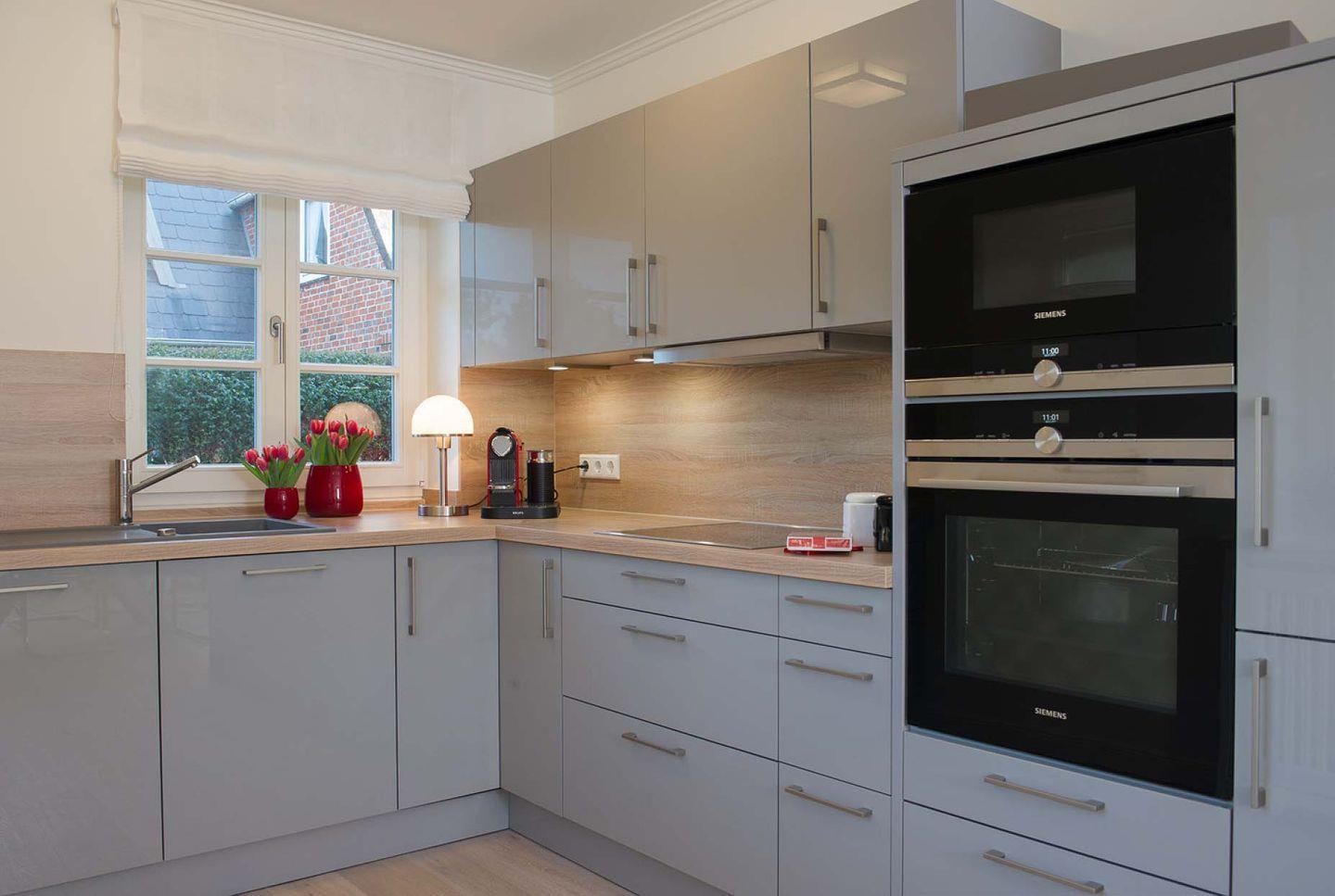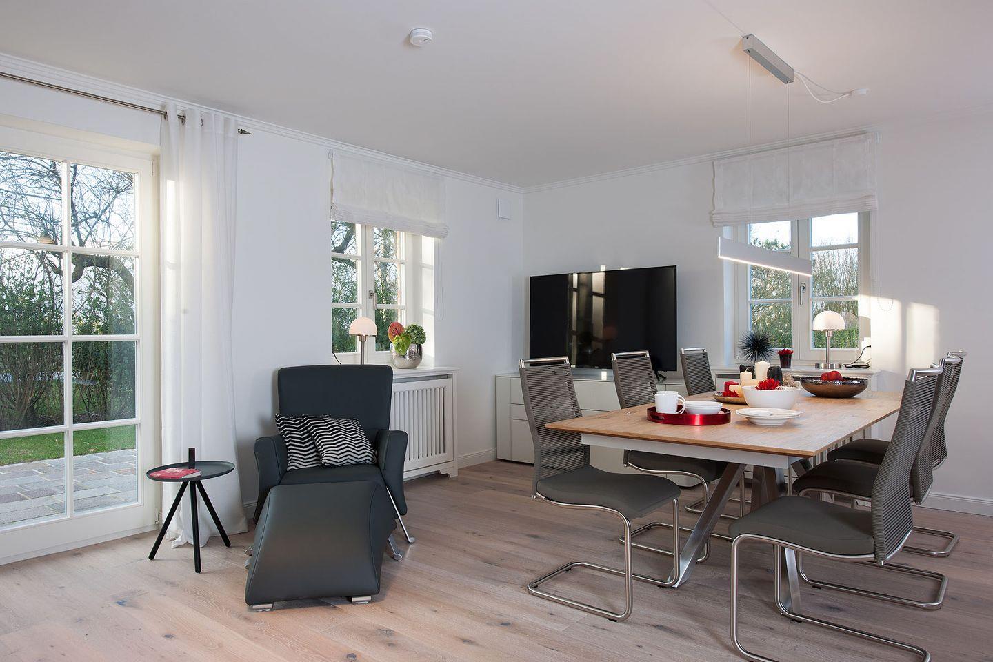 Erdgeschoss: Flur, Gäste-WC; komplett eingerichtete offene Küche mit Nespresso-Maschine, Ess- und Wohnbereich mit TV, großer Garten, Süd-Terrasse mit Gartenmöbeln und Strandkorb
