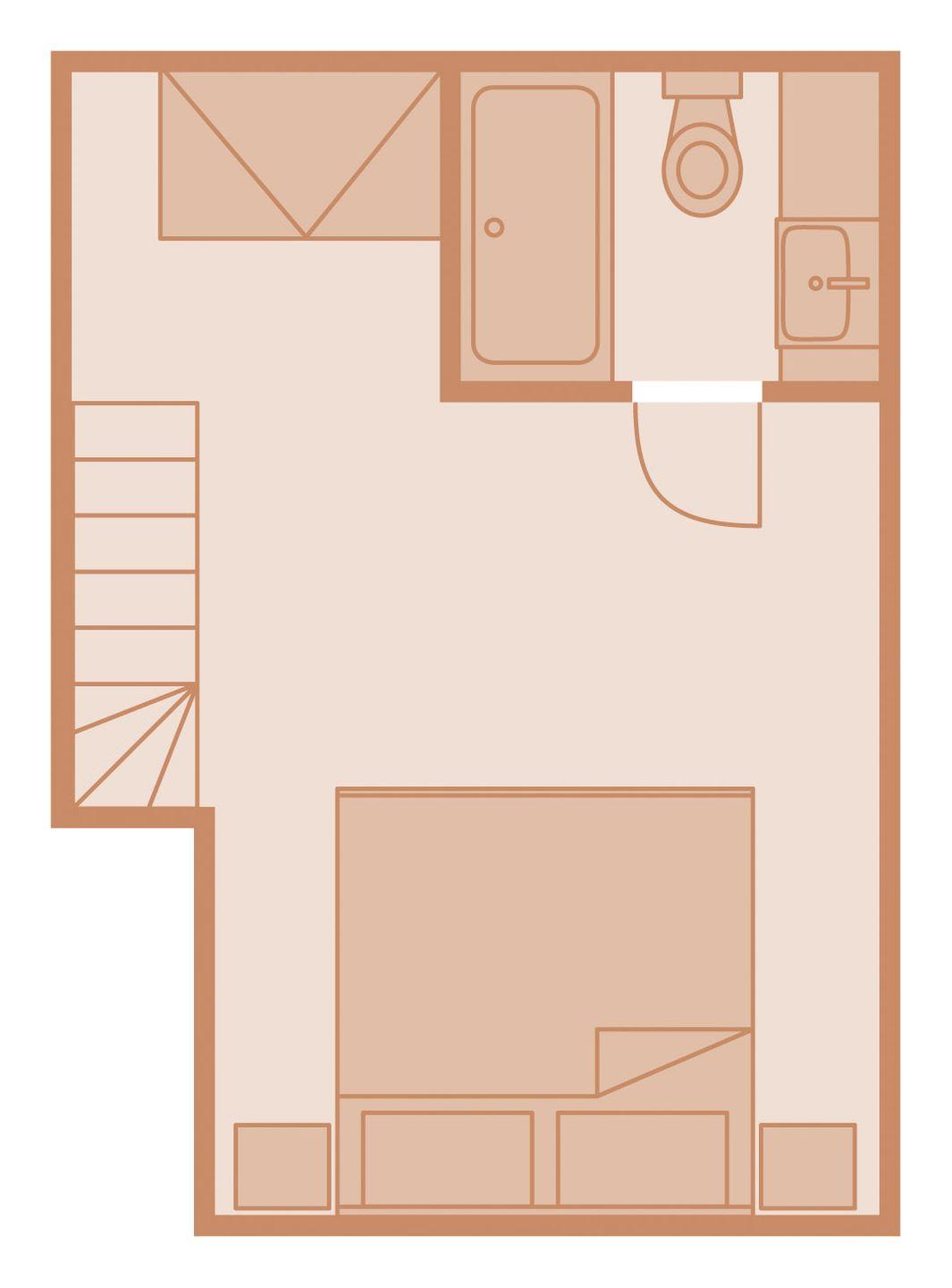 Spitzgiebel: 1 Doppelzimmer mit TV, Badezimmer mit Dusche und WC