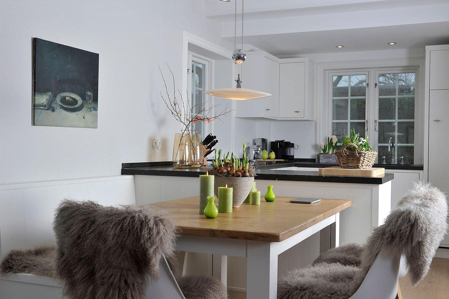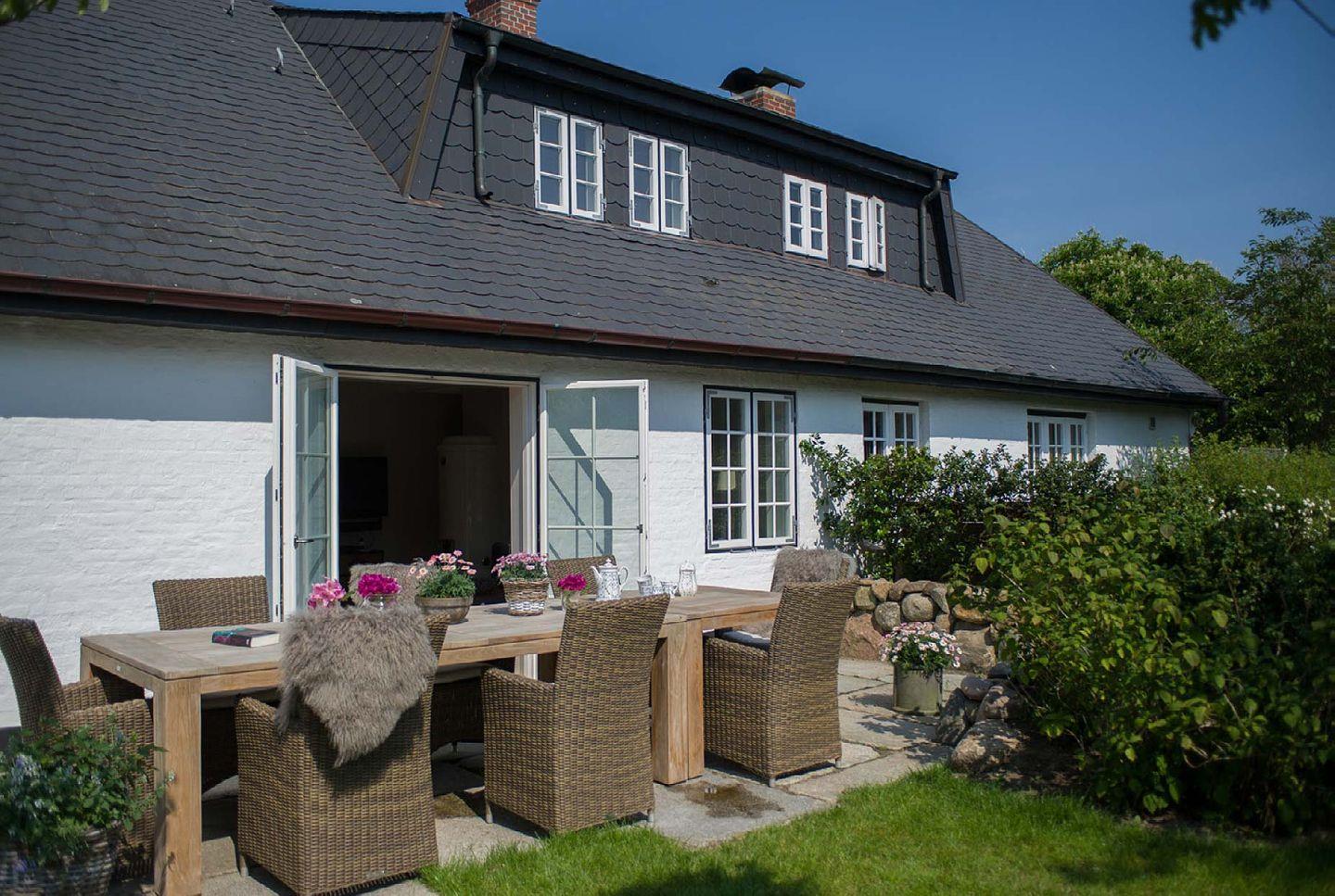 Das exklusive 5-Sterne Ferien Domizil an der Munkmarscher Chaussee 7 in Keitum bietet für maximal sieben Personen ausreichend Platz, um hier gemeinsam auf drei Ebenen und 106 m² entspannte Urlaubstage zu verbringen. Eine Terrasse erweitert den großzügigen Wohn- und Essbereich zu den beiden Sonnenplätzen im Garten. Stilsicher und mit viel Liebe zum Detail wurde dieses Domizil neu konzipiert und für die Ansprüche seiner Gäste durchdacht eingerichtet. Das helle Wohnzimmer mit modernem Esstisch, kuscheliger Sofalandschaft und offener, voll ausgestatteter Küche ist prägend für das sympathische Wohnambiente. Die Großzügigkeit findet sich auch in den zwei Bädern wieder. Die Farben sind Beige und Grau in vielen Abstufungen, kombiniert mit pastelligen Farbtönen. Familien werden sich hier sehr wohl fühlen, denn es bietet großen Raum für Gemeinsamkeit und gleichzeitig viele Möglichkeiten sich zurück zu ziehen. Jeder findet hier seinen Platz. Das Ferien Domizil ist in unmittelbarer Nähe des Wattenmeers gelegen und bietet eine wunderbare Ausgangslage für lange Spaziergänge am Strand. Wenn man den ganzen Tag über vom Wind umfangen ist, gibt es nichts Schöneres als sich abends vor dem Kachelofen aufzuwärmen und zu entspannen – Glücksgefühle garantiert.