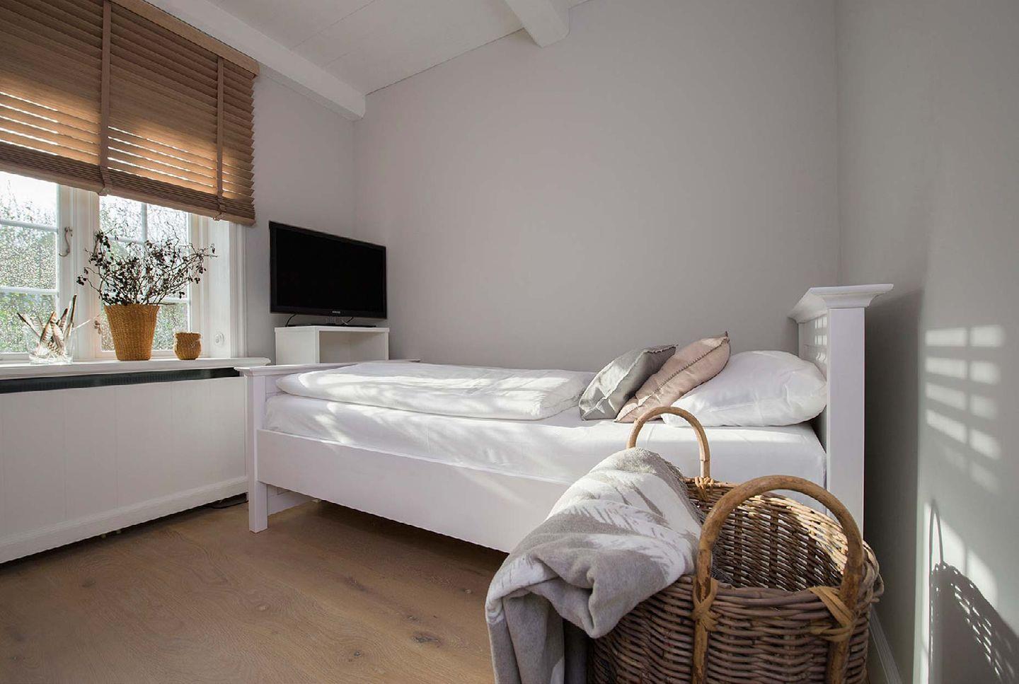 Obergeschoss: 1 Doppelzimmer, 2 Zimmer mit getrennt stehenden Betten, 1 Badezimmer mit Dusche und WC, Garten, Südost-Terrasse mit Gartenmöbeln und Strandkorb