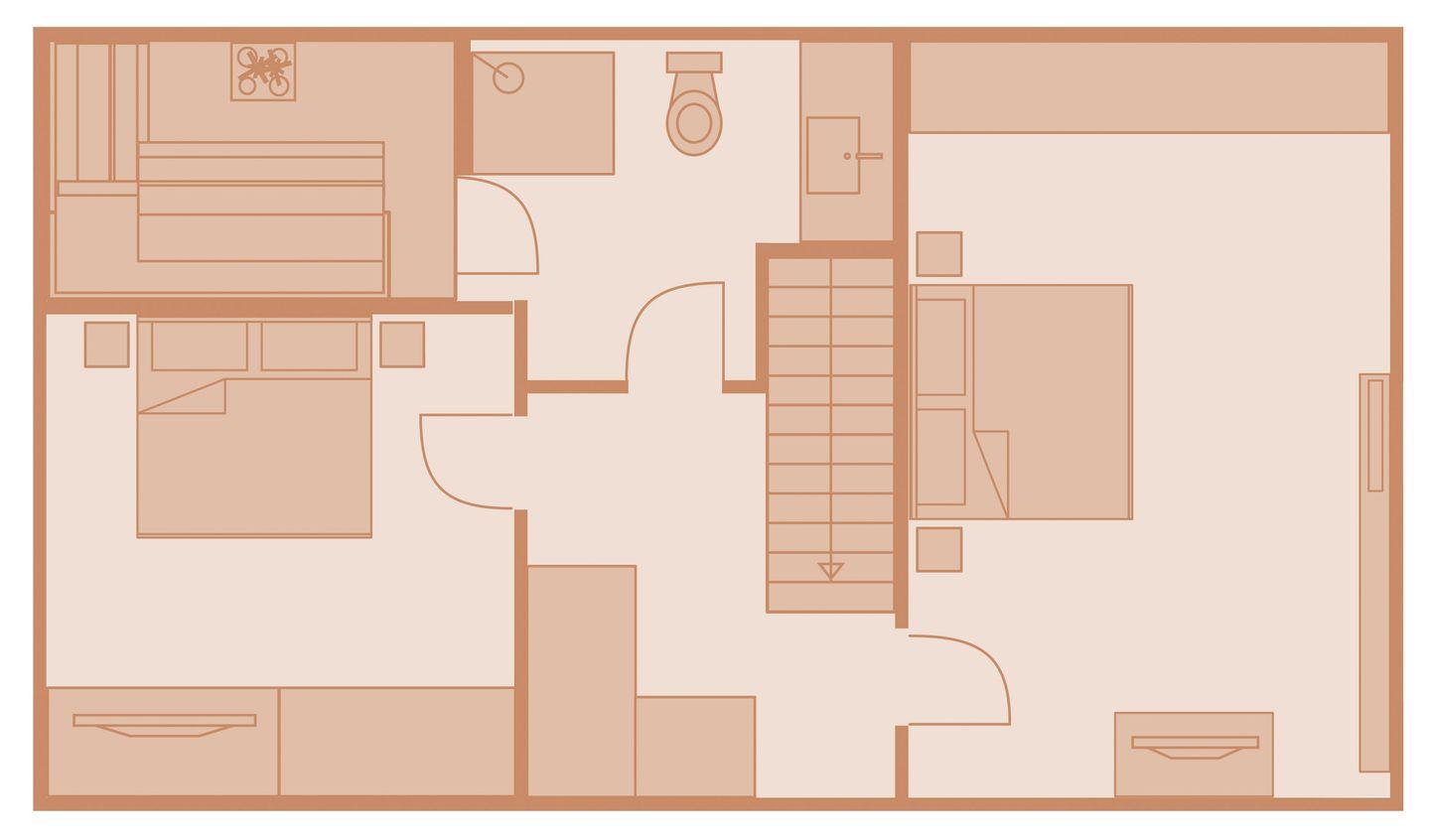 Obergeschoss: 2 Doppelzimmer mit TV; 1 Badezimmer mit Dusche, Sauna und WC
