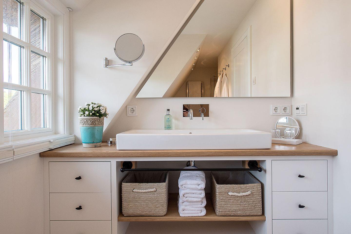 Das großzügige 5-Sterne Ferien Domizil im Westerhörn 54 erstreckt sich über vier Ebenen und 170 m². Es bietet für maximal sechs Personen ausreichend Platz zum gemütlichen Verweilen. Die Haushälfte unter Reet wurde im Jahr 2016 neu erbaut und besticht durch eine geschmackvolle und in Pastelltönen gehaltene Ausstattung. Der nach Süd-Osten ausgerichtete Garten und die Naturstein-Terrasse bieten bereits ab den frühen Morgenstunden die Möglichkeit, viel Zeit im Freien und in der Sonne zu verbringen. Die hochwertige Einrichtung im Landhausstil gepaart mit modernen Elementen schafft einen Rückzugsort, in dem man sich sofort zuhause fühlt. Das offene Erdgeschoss verbindet Küche, Ess- und Wohnbereich, der Kamin bildet einen harmonischen Mittelpunkt für heitere und kommunikative Stunden oder ruhige, gemütliche Auszeiten. Ein Highlight ist die großzügige Sauna mit Ruheliege und separatem Badezimmer. Der wohlige Wellnessbereich erstreckt sich im Souterrain und lädt zum Entspannen oder Aufwärmen nach einem langen Strandspaziergang ein.