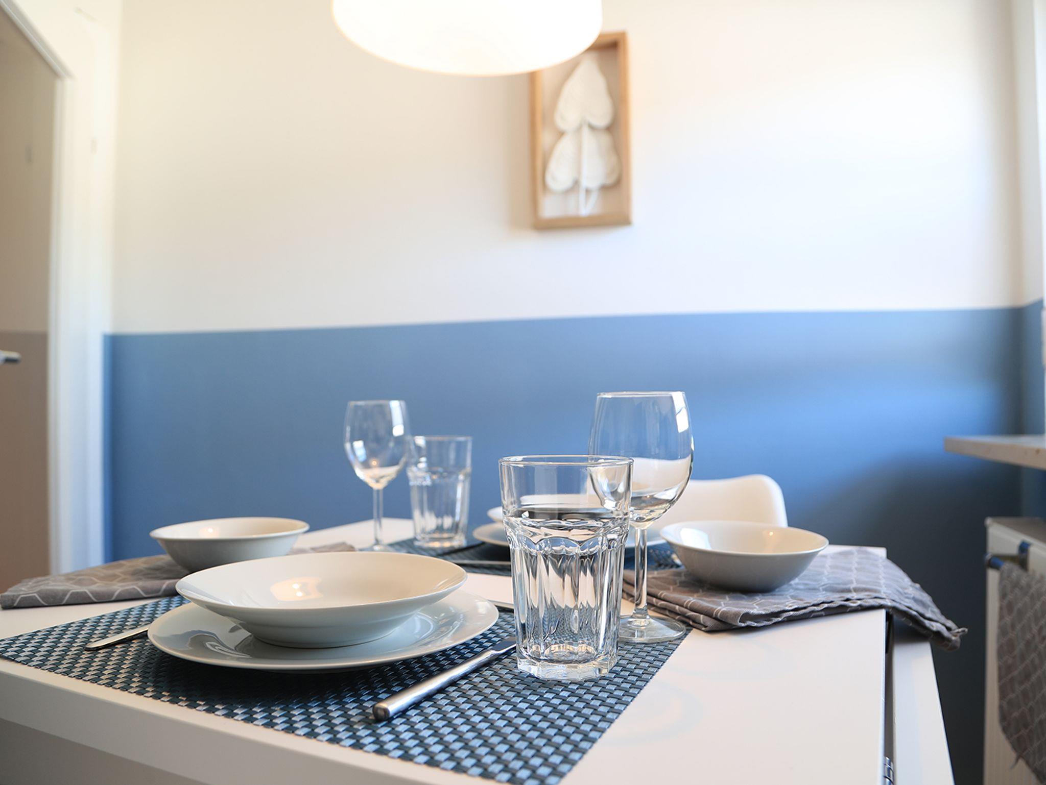 Küche: Essplatz für 2 Personen, weiteres Kind möglich, Cerankochfeld, Kühlschrank mit 3*-Gefrierfach, Mikrowelle mit Grill, Kaffeemaschine, Wasserkocher, Toaster, USB-Ladebuchsen