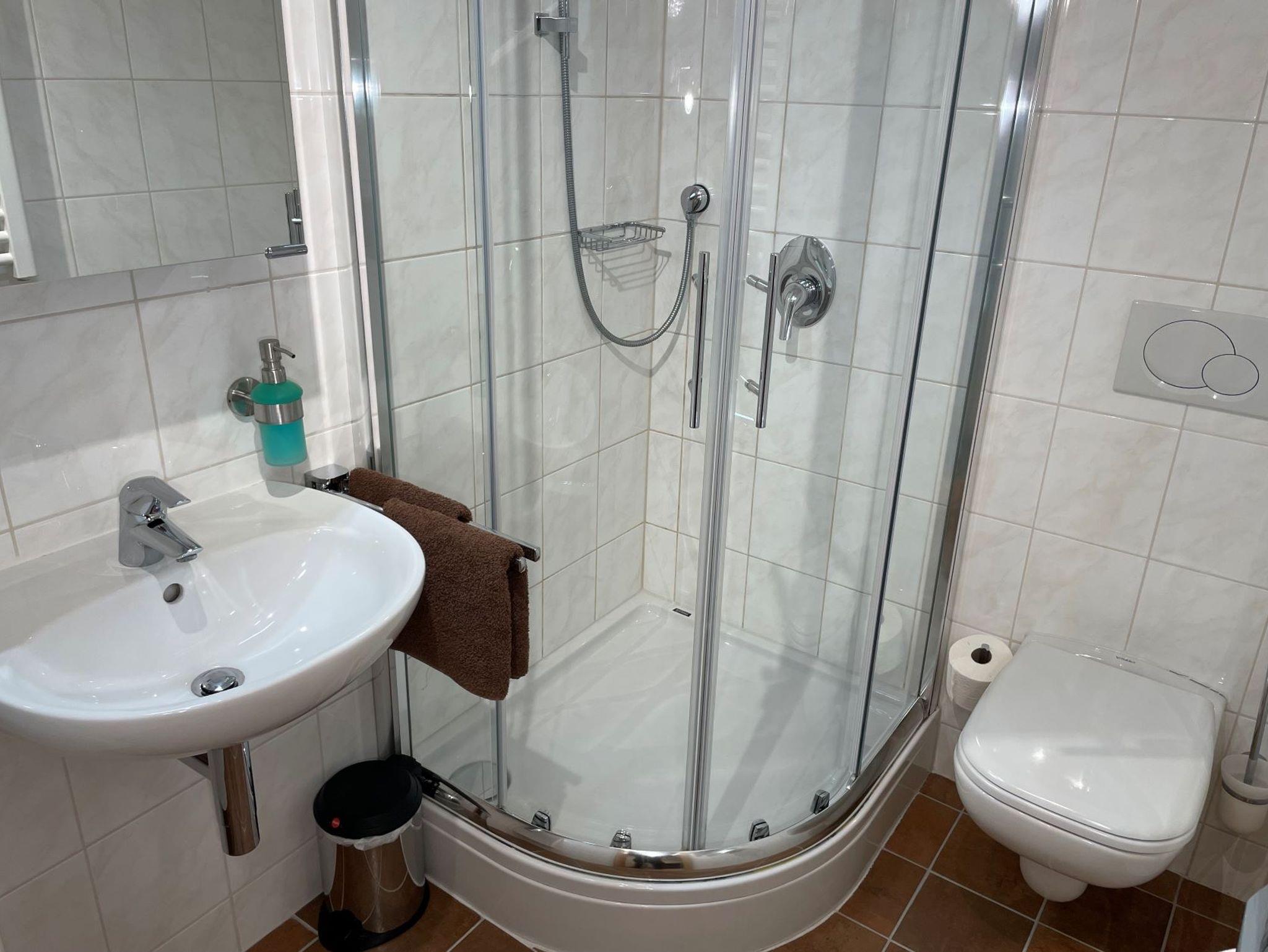 Wohnung 1 - EG 60 qm: 1 Schlafzimmer, Wohnzimmer, moderne EBK mit allem Komfort, HWR, Bad/Du/WC, Südterrasse. Allergikerbetten, Kabel - TV.