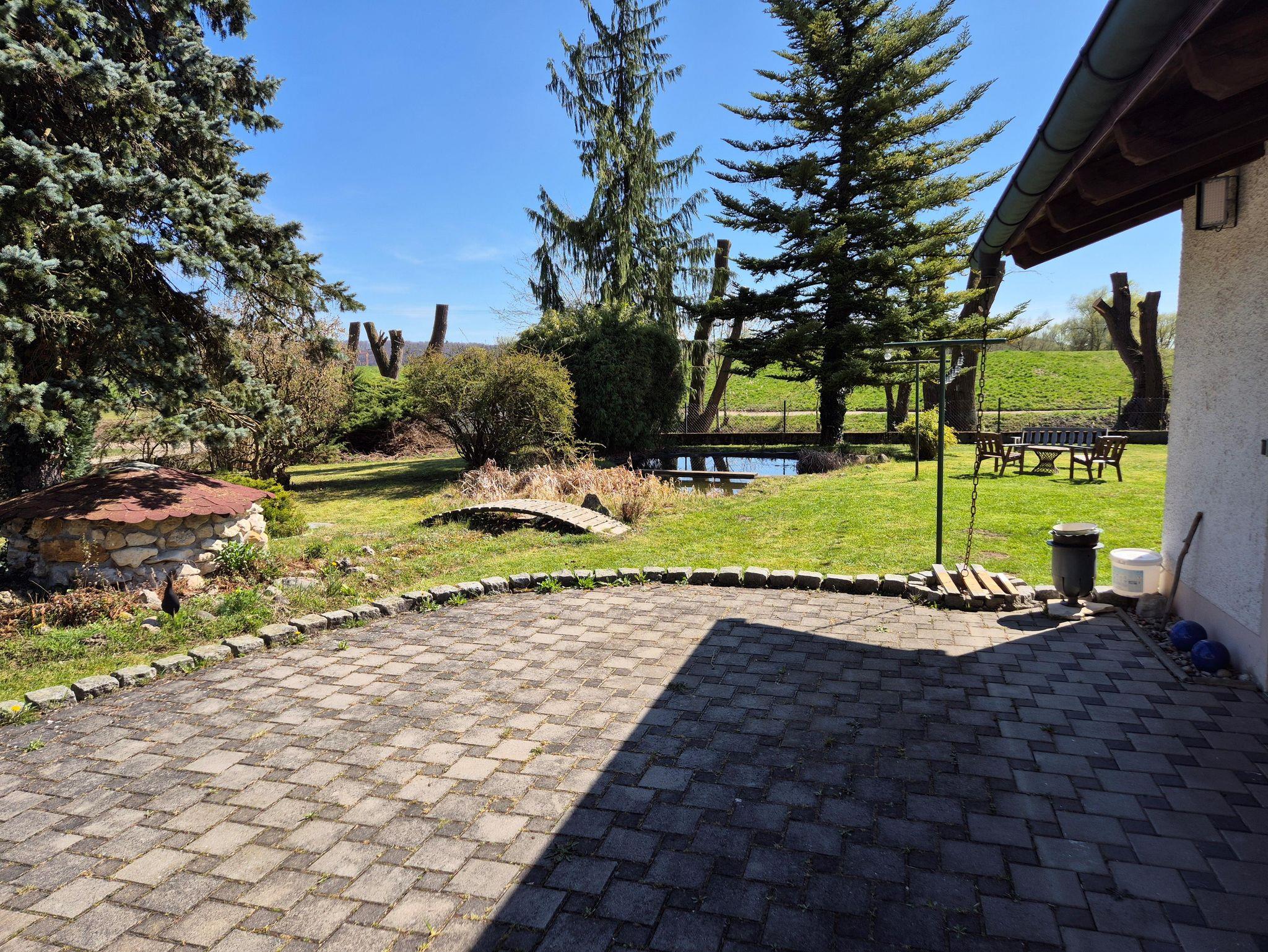 Ferienwohnung 140qm mit einem Garten mit Fischteich und überdachter Terrasse