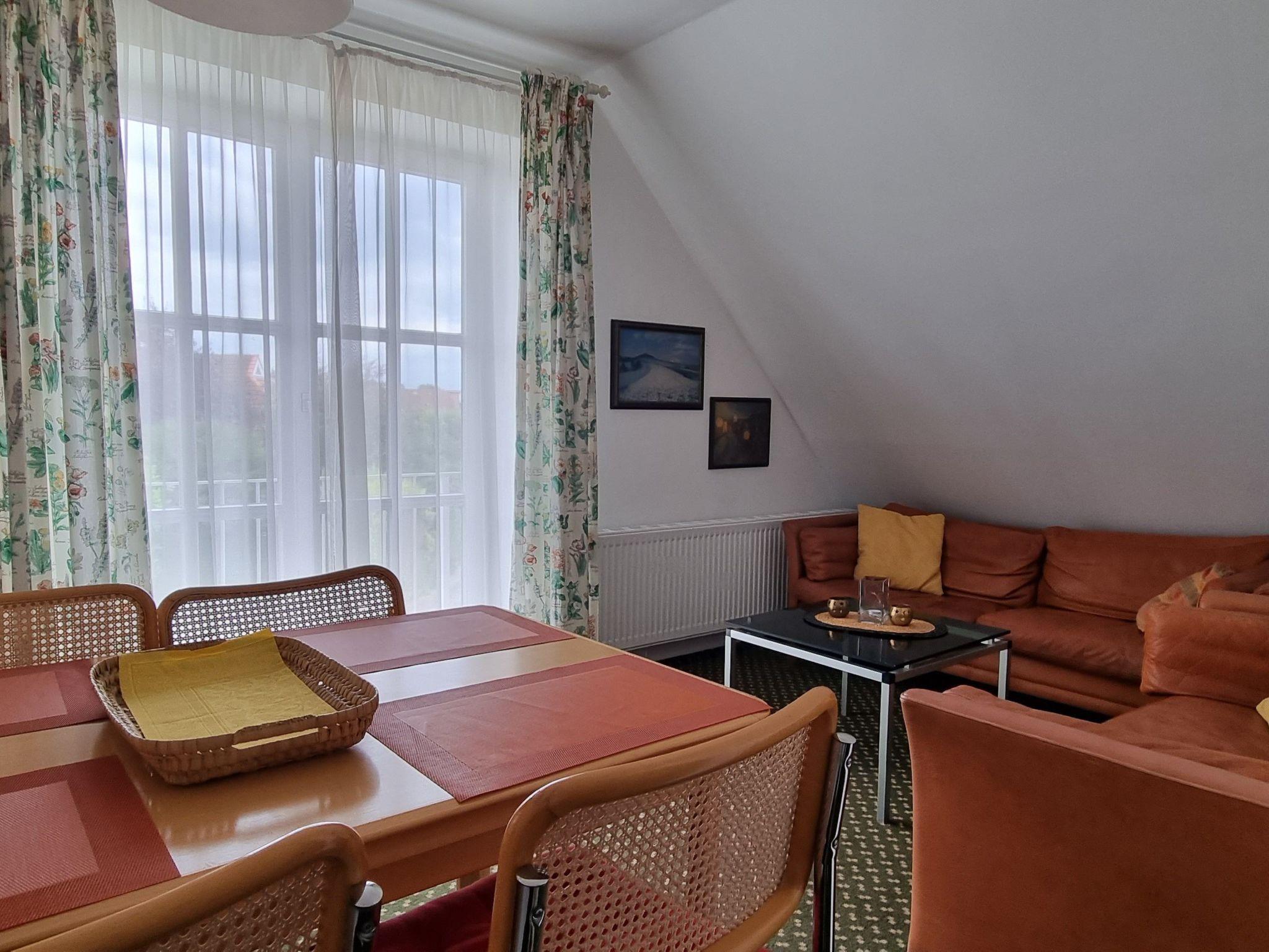 The three-room flat (W10) is located on the 1st floor of the one and a half storey house Rosa Canina, approx. 350 metres from the sea. It is suitable for 4 people. There are two single beds in the children's room. A small additional travel cot can be added. The bedroom is furnished with a double bed (160cm wide), the living room has a sofa bed for one person and the kitchen is equipped with a dishwasher and fridge with freezer. Adjacent to the kitchen is the dining area with seating for 4-5 people. The flat is furnished with light-coloured furniture, WLAN is available and there are seating areas and barbecue facilities in the garden. The meadow invites you to play ball games. The garden is equipped with a sandpit, climbing frame and swing. bicycles can be parked in the garden. the spa town of Kellenhusen, a former fishing village, offers variety and relaxation in a picturesque location. It lies in a gentle bay. The fine sandy beach is followed by the hinterland with fields, wild roses and the Kellenhusen forest. Here, the mixed forest with its predominantly oak and beech trees (1000-year-old crown oak), the nature trail, cycle paths and hiking trails offer a wide range of opportunities. The new, sand-coloured promenade offers a relaxed stroll with a view of the sea. It guarantees a good mood with its adventure zones (water features, the 'observation steamer', the barbecue and children's play facilities... and the picturesque plant islands. You can indulge yourself or do a little shopping in the neat little restaurants, cafés and shops right on the beach. You can have fun on the new pier with its 3 adventure islands, walk 300 metres into the sea and finally set sail on an excursion steamer.Brief descriptionOther : Non-smoking houseShort description 1Number of kitchens : 1Garden and outdoor facilitiesGarden equipment : Barbecue