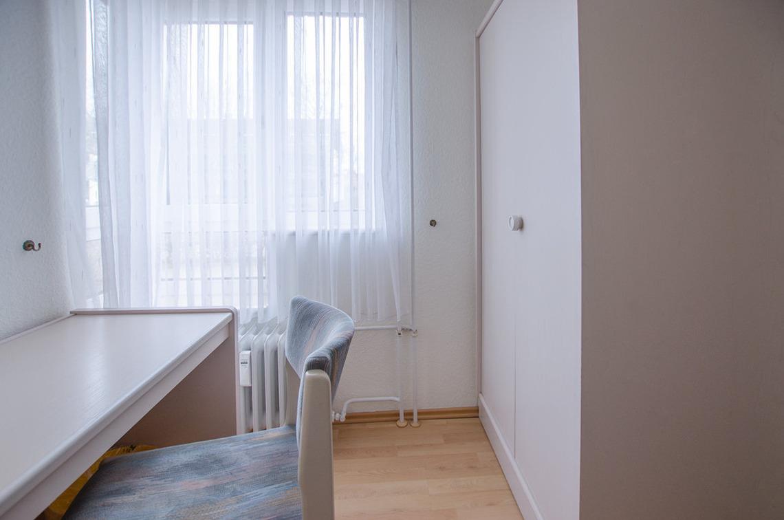 Das zweite Schlafzimmer verfügt über ein Einzelbett, Schreibtisch, Stuhl sowie Kleiderschrank.