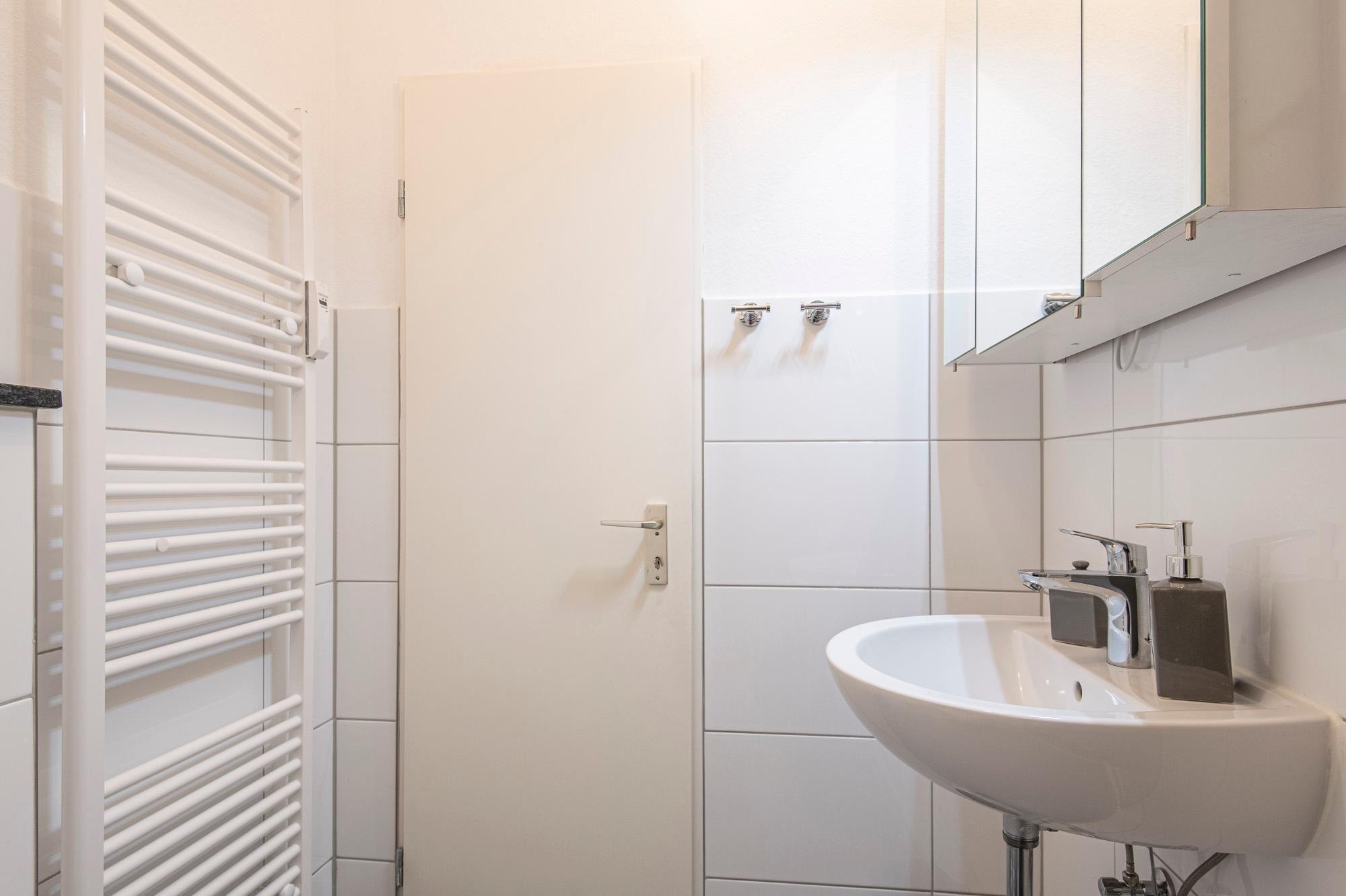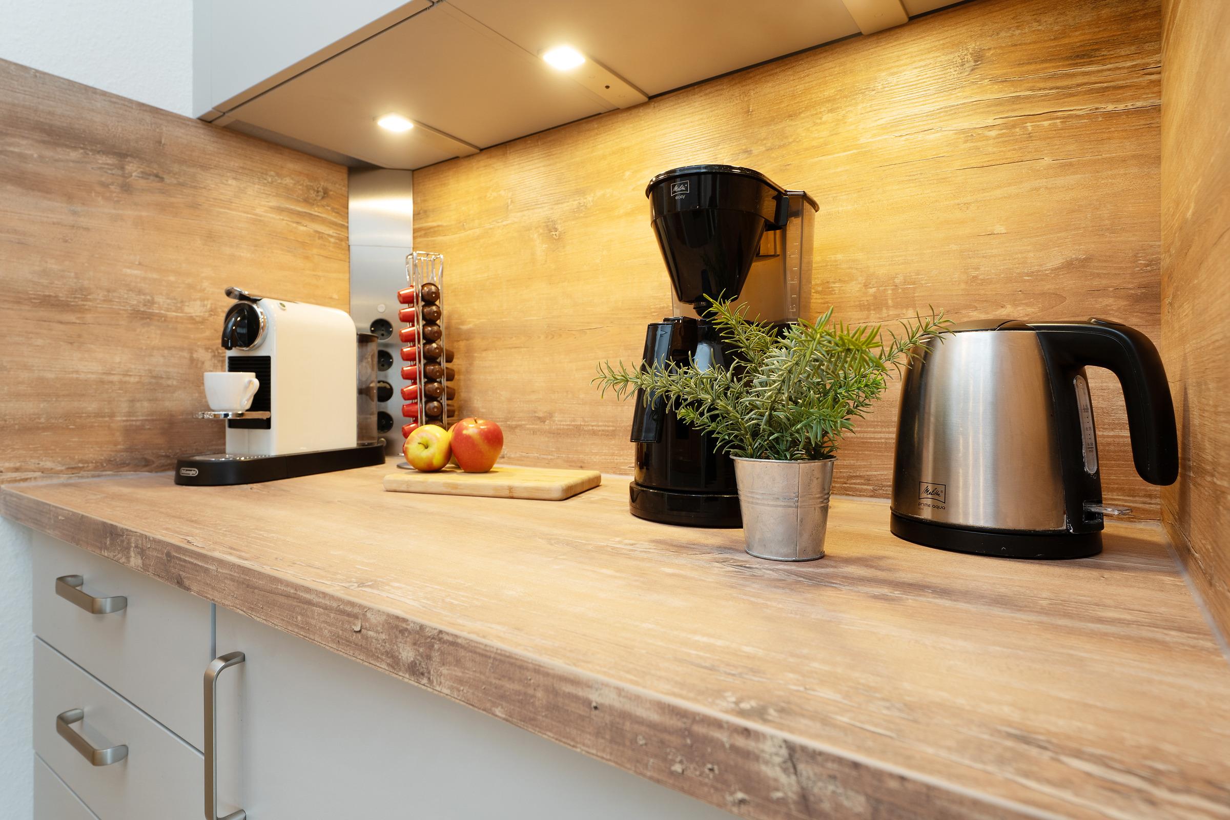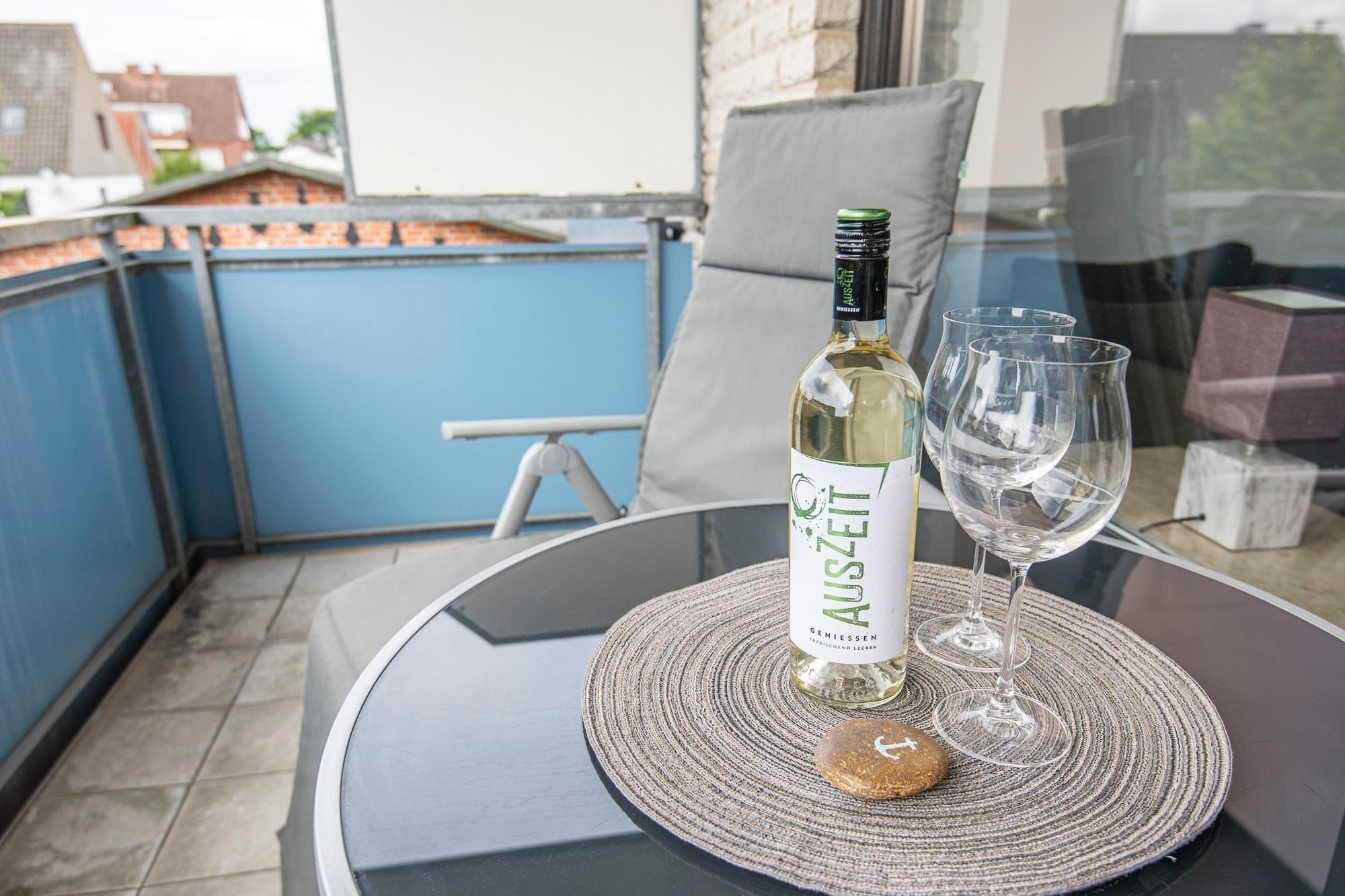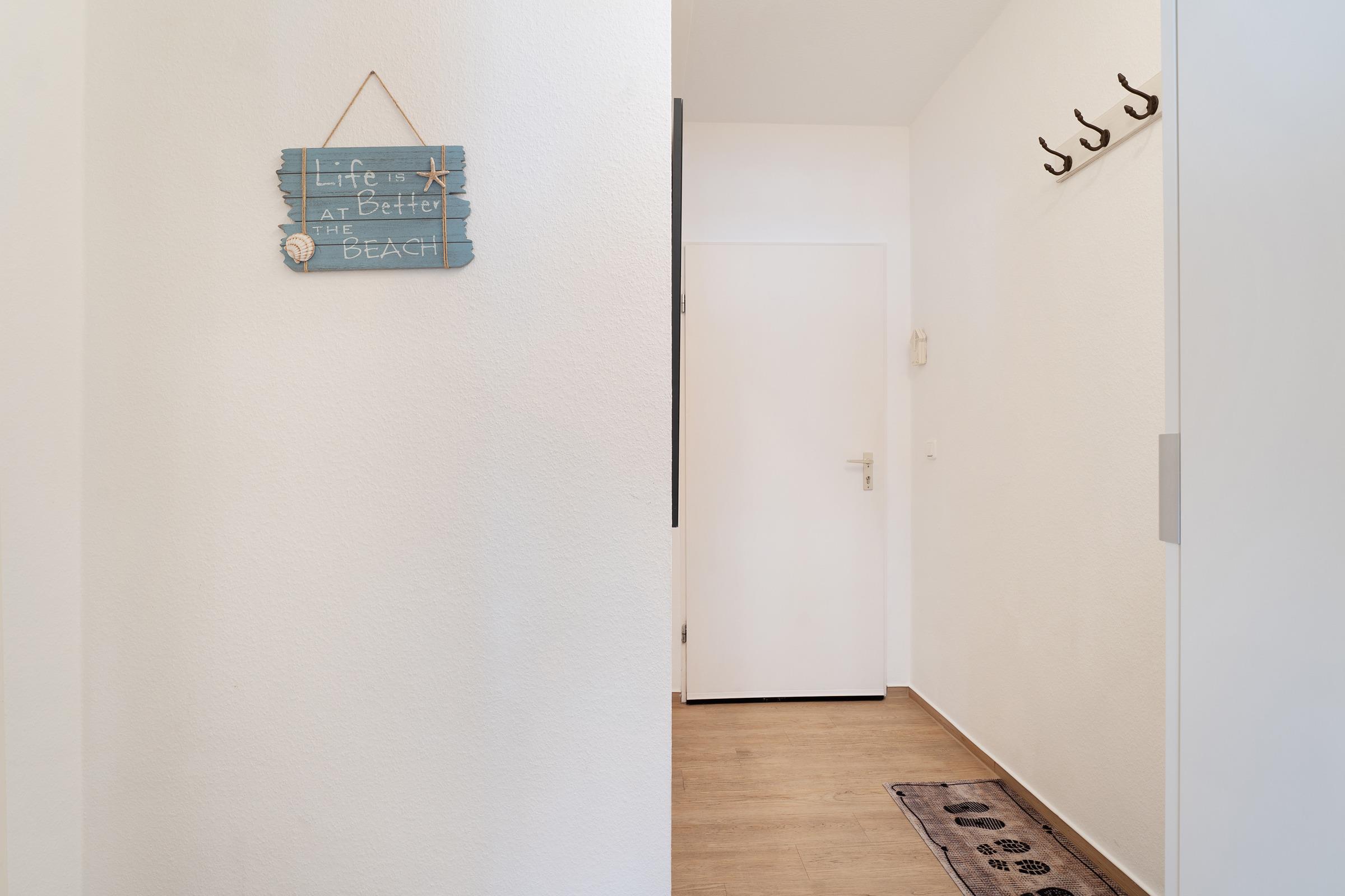 Urlaub total – hinterm Deich in der 2. Reihe. Die kleine, sehr feine Wohnung befindet sich im Haus Deichhof und ist rund 100 Meter vom Strand entfernt. Der Wohnbereich empfängt Sie mit einer wunderbar großzügigen, kuscheligen Sofa-Ecke. Machen Sie es sich hier gemütlich – Ihr Urlaub kann beginnen. Direkt neben dem Sofa geht es raus auf den möblierten Süd-Balkon. Hier können Sie tagsüber das schöne Wetter genießen – oder auch den Abend bei einem Glas Wein ausklingen lassen. Zurück im Wohnbereich: Hier finden Sie auch eine schicke Ess-Ecke für 4 Personen. Die kleine moderne Küche ist zum Wohnzimmer hin offen – und doch in einer separaten Nische. Die Ausstattung kann sich sehen lassen. Eine Espressomaschine, ein Backofen mit integrierter Mikrowelle und weitere Annehmlichkeiten warten auf Sie. Für die Nacht sorgt ein gemütliches Boxspringbett (160 x 200 cm) – und die süßen Träume von der herrlichen Ostsee können beginnen. Das hell gefliestes Badezimmer verfügt über eine bodentiefe Dusche sowie einen Handtuchwärmer und garantiert einen guten Start in den Tag.