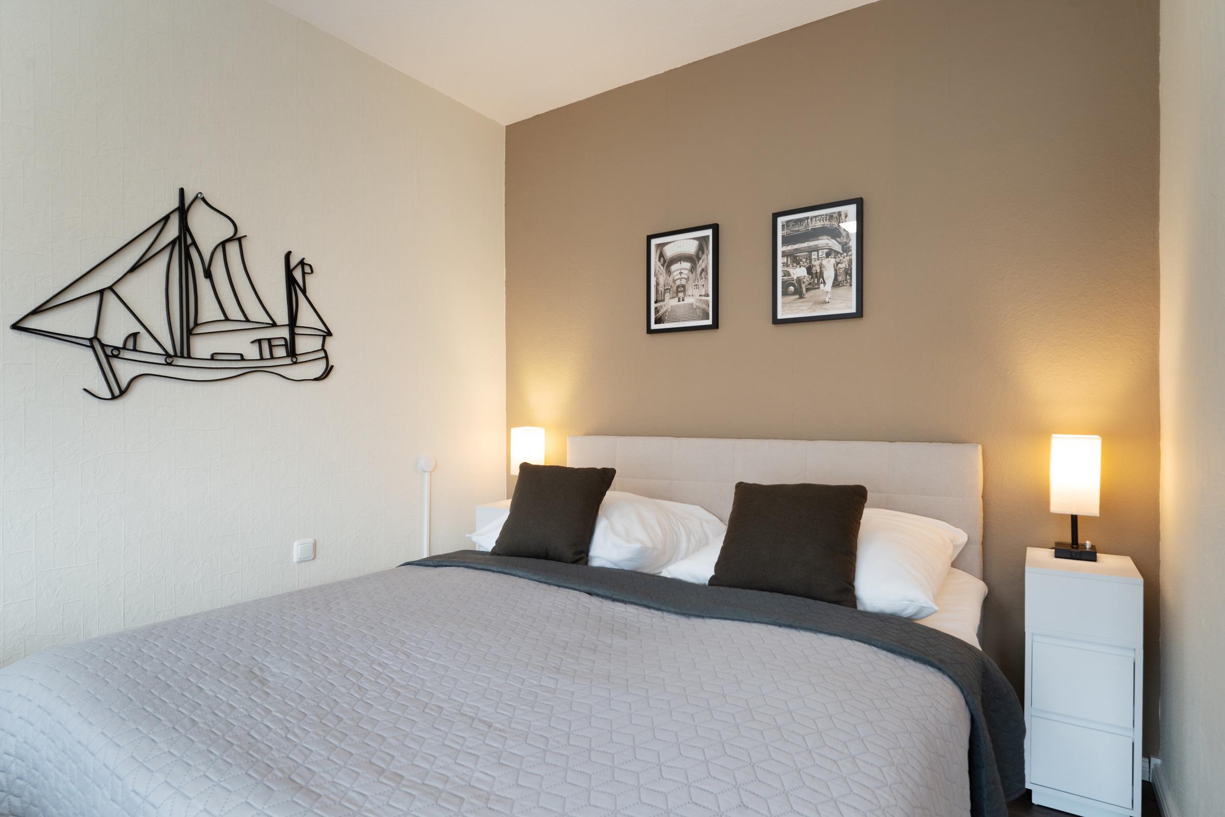 Wohn-/Schlafraum: 1 Boxspringbett (160x200 cm), Verdunkelung (Rollo)