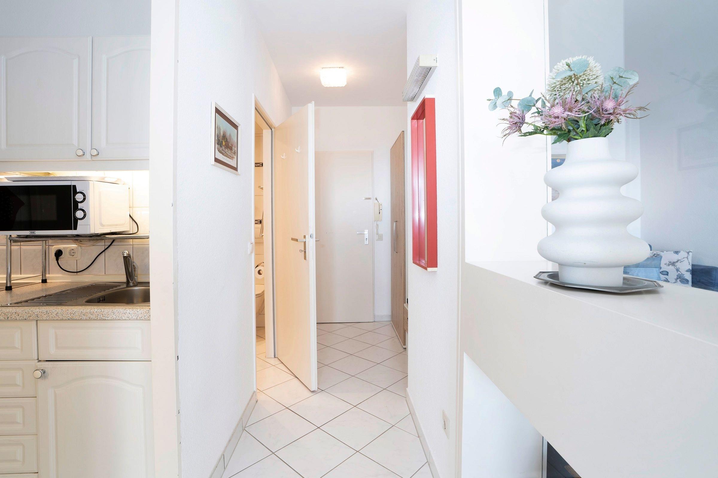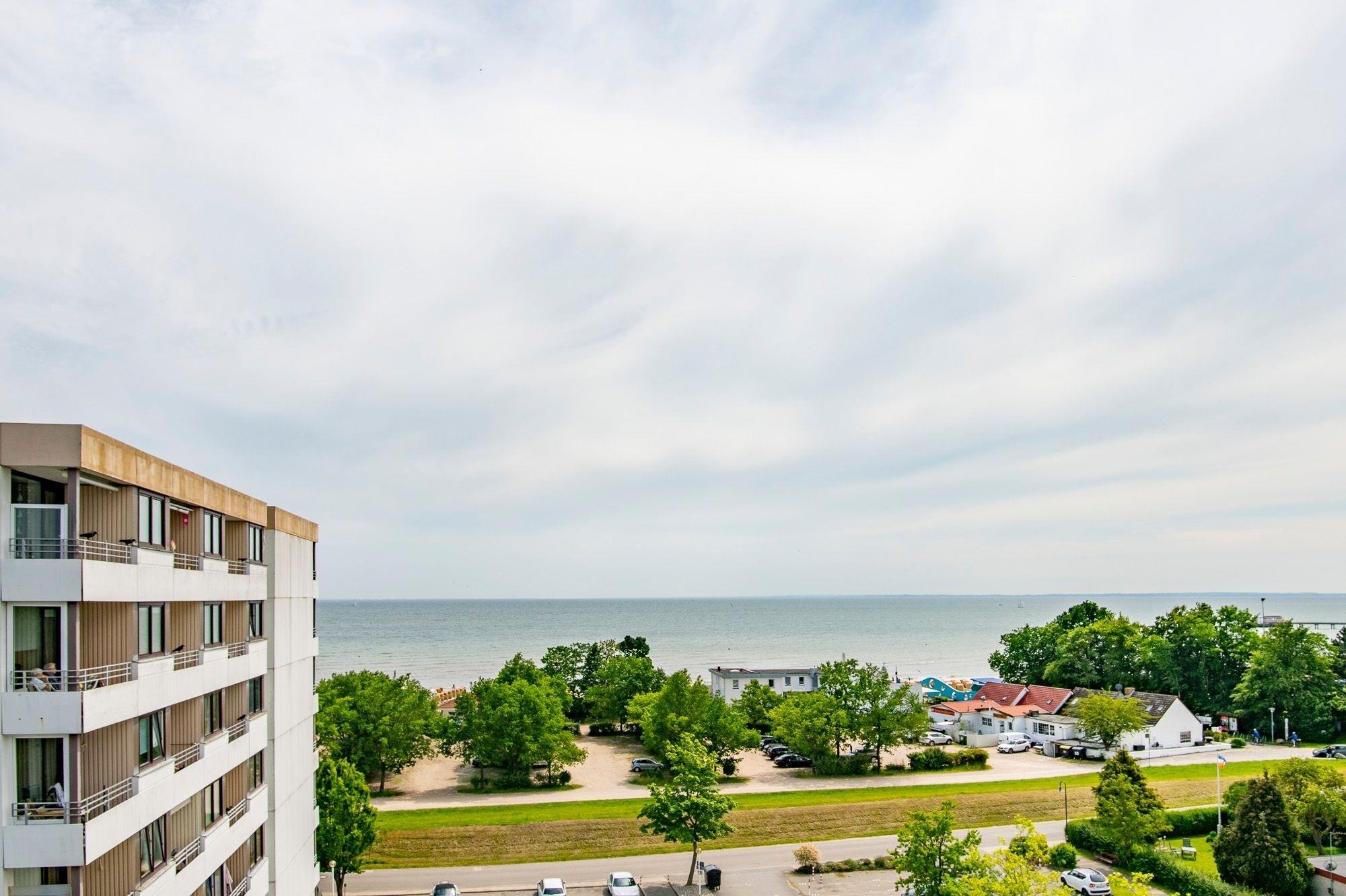 In bester Lage von Kellenhusen: strandnahe 2-Zimmer-Ferienwohnung im 7. Stock mit Balkon, Meerblick, Fahrstuhl und einer Wohnfläche von ca. 42 m² für bis zu 2 Personen.