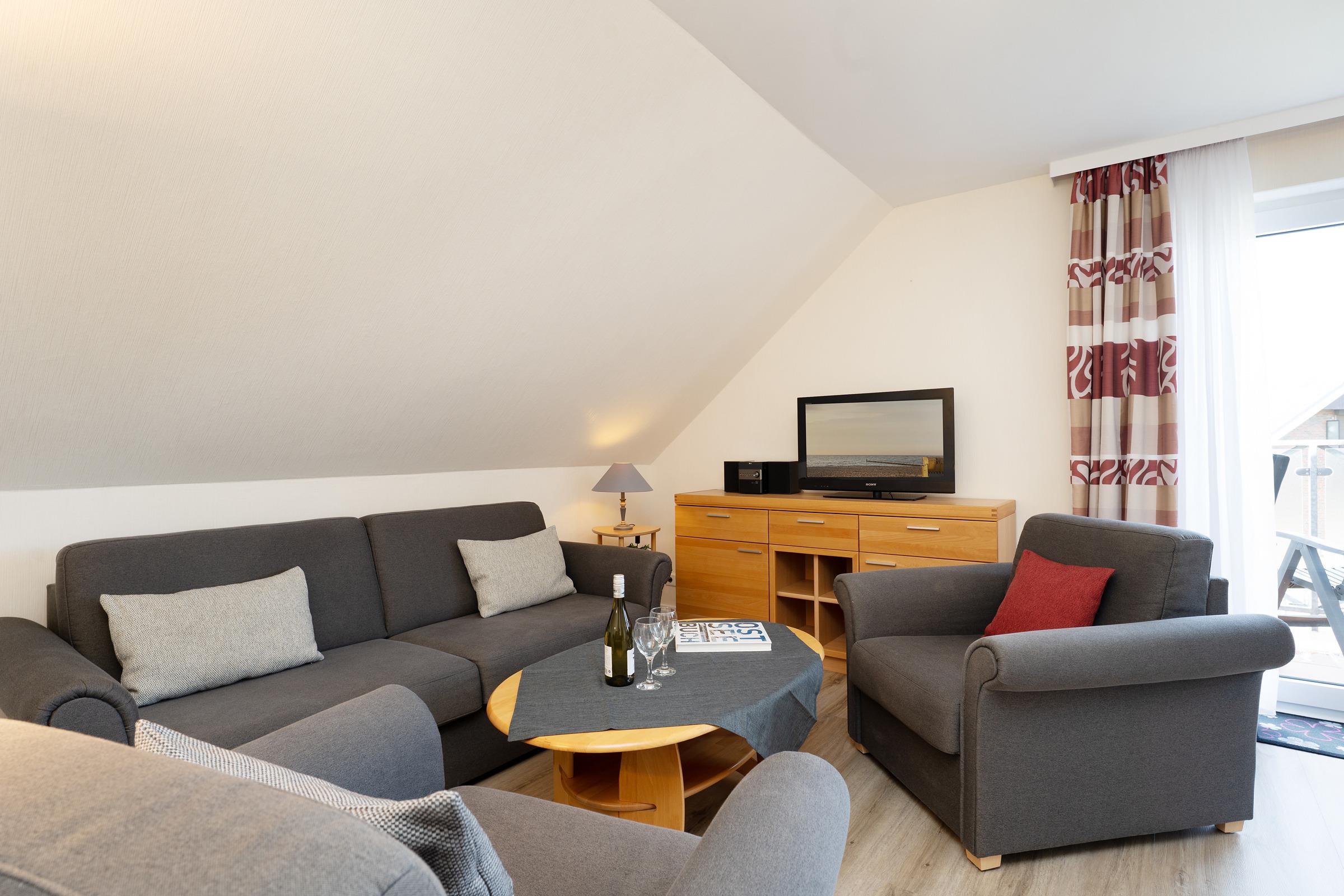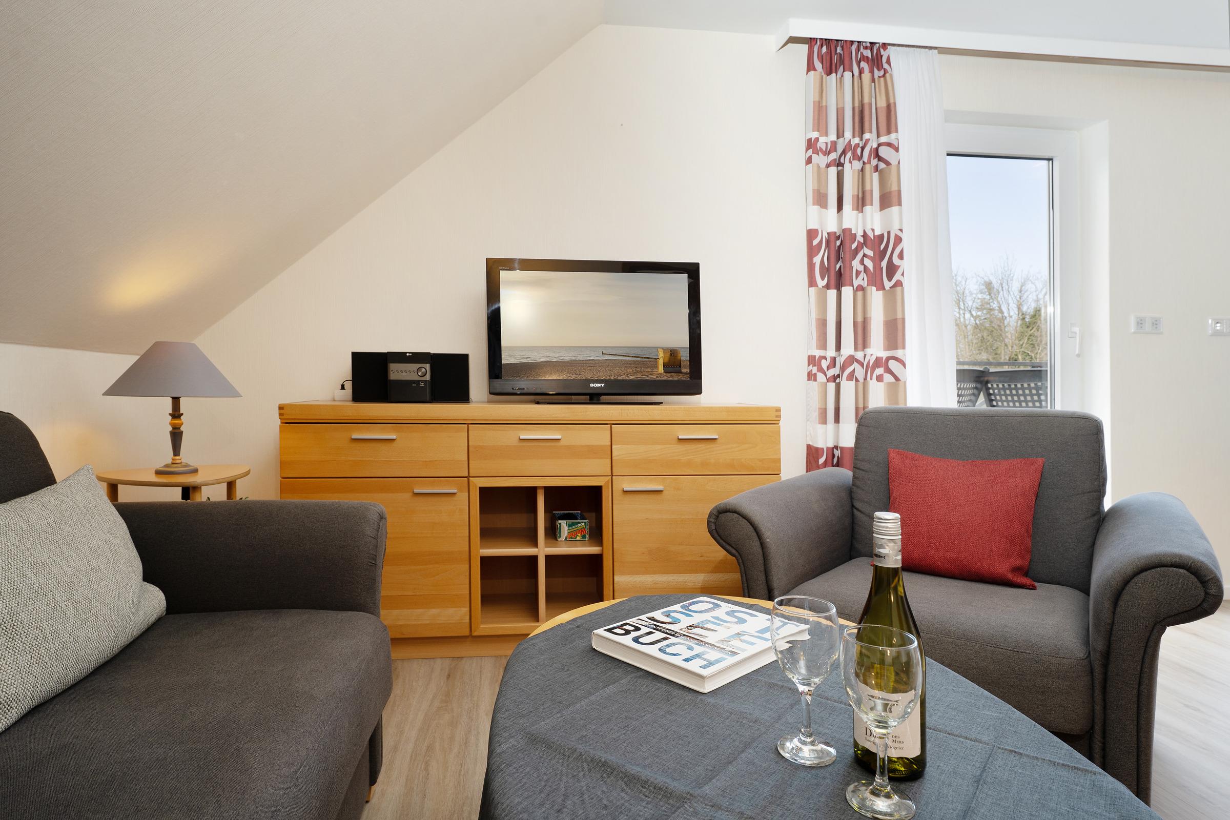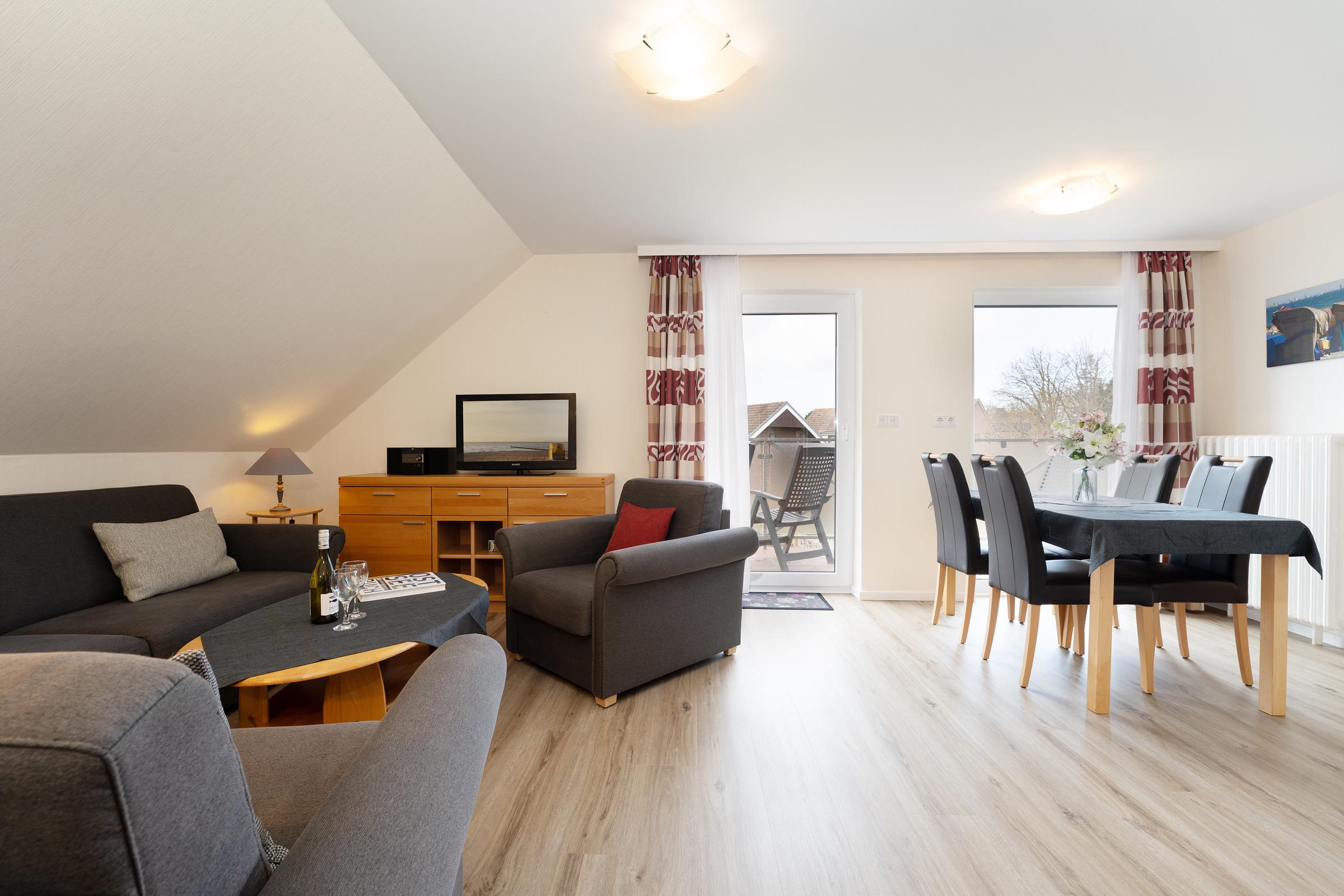 Liefern Sie sich spannende Duelle mit mitgebrachten Gesellschaftsspielen am Esstisch, verfolgen Sie Ihre Lieblingsserie am Flachbild TV oder planen Sie gemeinsam Ihre Urlaubsaktivitäten - der Wohn- und Essbereich bietet Ihnen hierfür ausreichend Platz. Der kostenlose WLAN-Anschluss steht Ihnen für die Recherche der in Frage kommenden Freizeitangebote in Kellenhusen und Umgebung zur Verfügung. Wenn Sie nach einem ereignisreichen Urlaubstag mal keine Lust haben, Ihr Feriendomizil zu verlassen, können Sie sich und Ihre Lieben in der angrenzenden Küche selbst verpflegen. Lassen Sie dann den Abend bei einem guten Glas Wein auf dem möblierten Balkon ausklingen. Im Gemeinschaftsgarten steht allen Gästen des Hauses darüber hinaus ein Kohlegrill zur Verfügung.