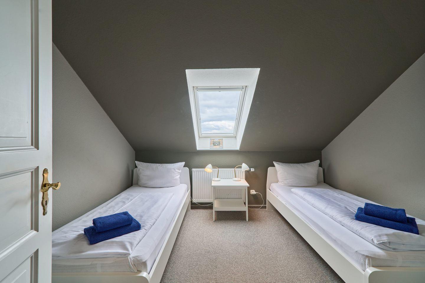 Das Schlafzimmer verfügt über zwei bequeme Einzelbetten und ist optimal für eine erholsame Nachtruhe eingerichtet. Ein weiteres Schlafangebot bietet das Sofa im Wohnzimmer, sodass ausreichend Platz für Familie und Freunde zur Verfügung steht. Das moderne Badezimmer ist mit einer Dusche sowie einem Waschbecken mit Spiegel ausgestattet und sorgt für den nötigen Komfort während Ihres Aufenthalts.
