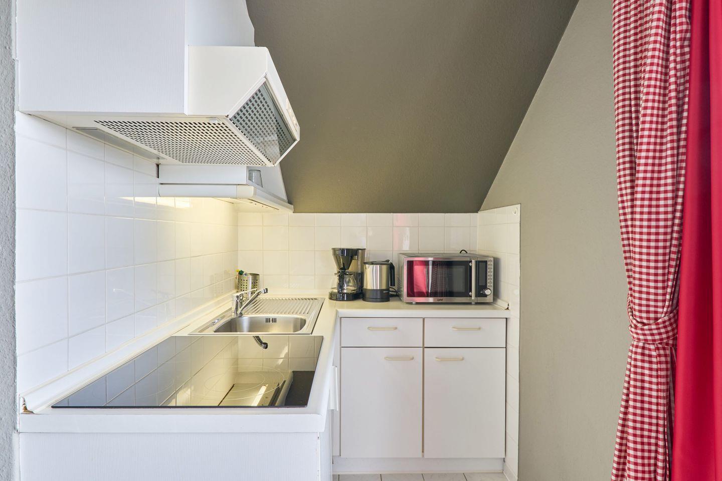 Die Unterkunft zeichnet sich durch ein modernes, offenes Wohnkonzept aus, das einladend und funktional zugleich ist. Das Wohnzimmer ist mit einem komfortablen Sofa und einem Fernseher ausgestattet, damit Sie nach einem erlebnisreichen Tag am Strand gemütliche Abende verbringen können. Der Esstisch lädt dazu ein, gesellige Mahlzeiten zu genießen, die Sie selbst in der voll ausgestatteten offenen Küche zubereiten können. Diese ist unter anderem mit einem Herd, einer Mikrowelle, einem Kühlschrank, Toaster und einer Kaffeemaschine ausgestattet. Hier finden Sie alles, was Sie für die Zubereitung Ihrer Lieblingsgerichte benötigen.