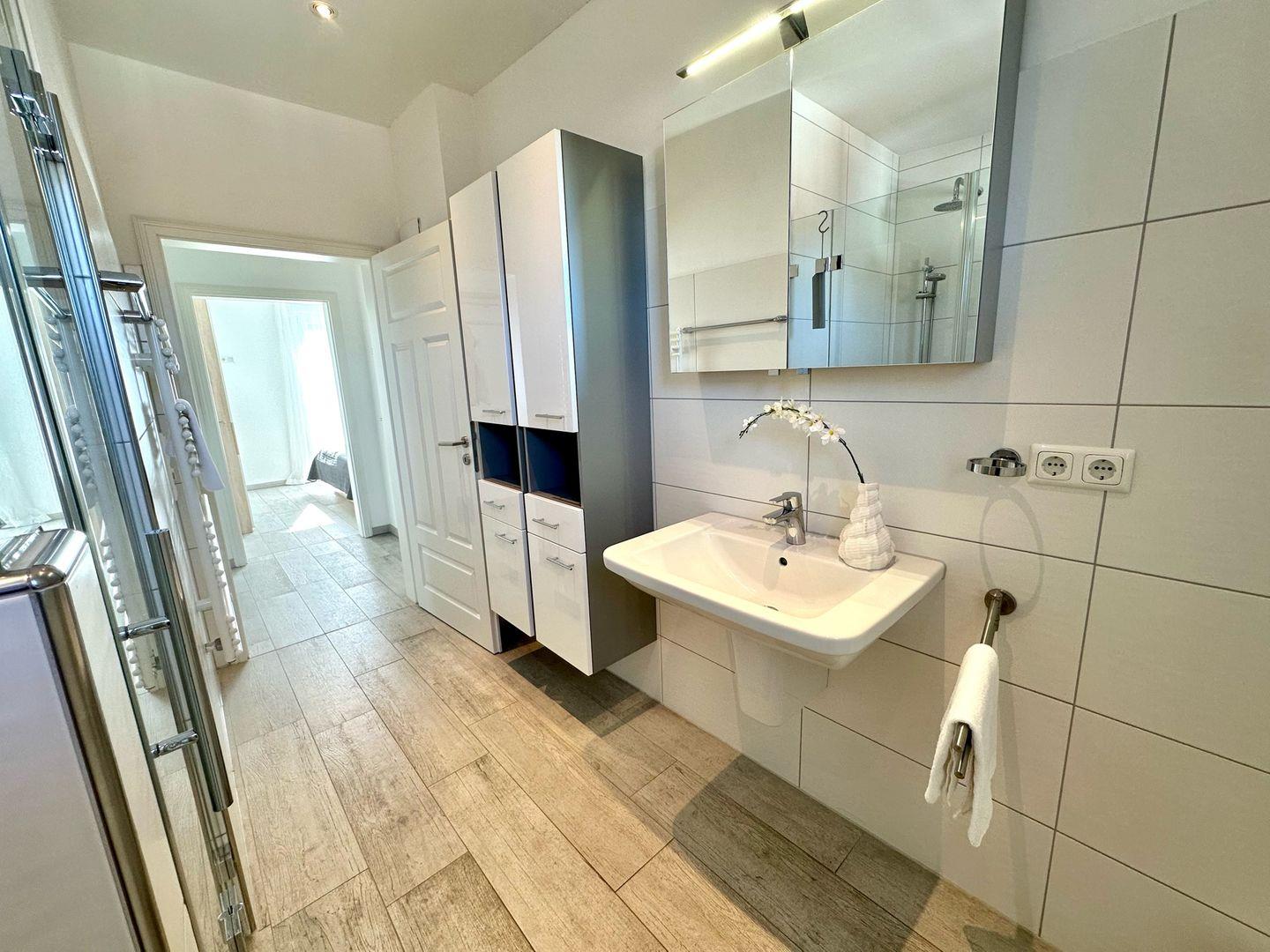 Die Ferienwohnung erstreckt sich über großzügige 70 m² und bietet mit zwei Schlafzimmern Platz für bis zu drei Personen. Jedes Schlafzimmer mit TV-Gerät ist liebevoll ausgestattet, um Ihnen eine erholsame Nachtruhe zu garantieren / Elternschlafzimmer 2 x 90 x200 cm, Kinderzimmer 100 x 200 cm, Und falls Sie doch mal arbeiten müssen, steht im Kinderzimmer ein Schreibtisch. Das helle und einladende Wohnzimmer lädt zu entspannten Stunden ein und und hat selbstverständlich einen Smart-TV. Die bodengleiche Dusche sowie der Rainshower-Duschkopf im modernen Badezimmer sorgt für zusätzlichen Komfort und Barrierefreiheit.