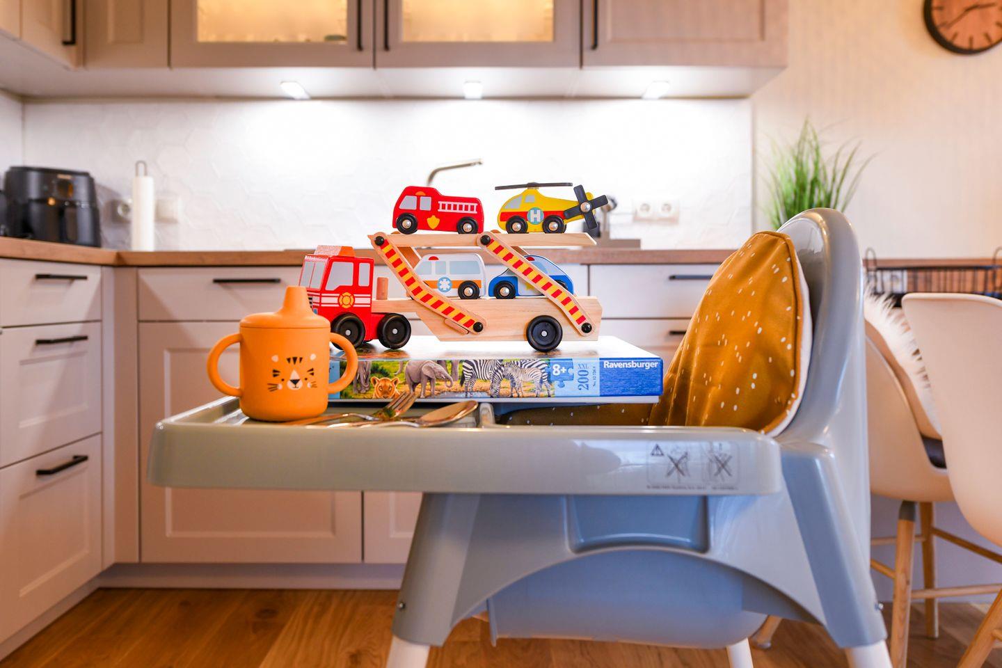 Hier fühlen sich Familien rundum wohl. Neben praktischer Kleinkindausstattung findest du viele liebevolle Details, die den Familienurlaub besonders angenehm machen – vom Hochstuhl bis zu kleinen Spielmomenten. Der Aufzug bringt dich bequem bis vor die Wohnungstür, so reist du komfortabel und stressfrei.