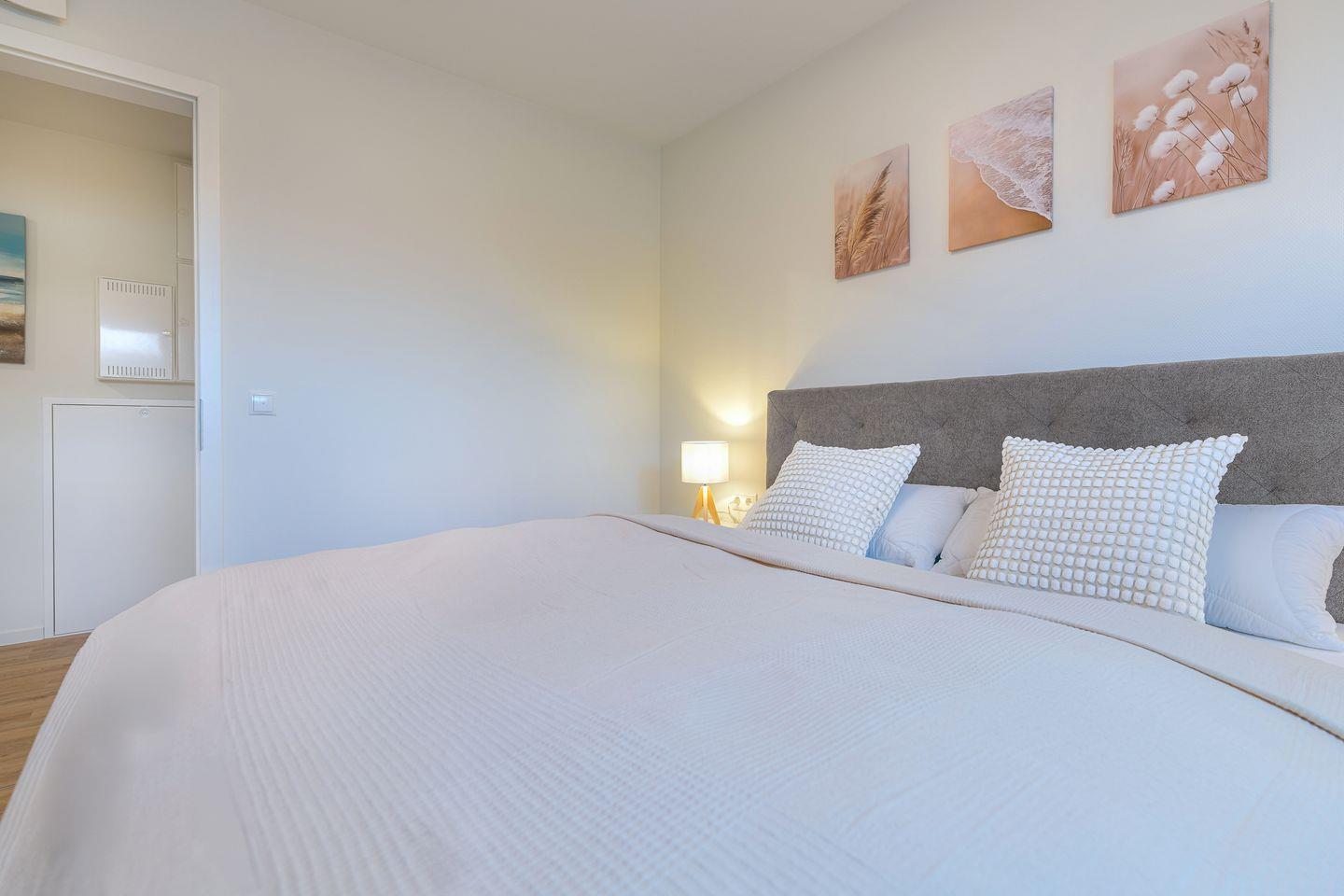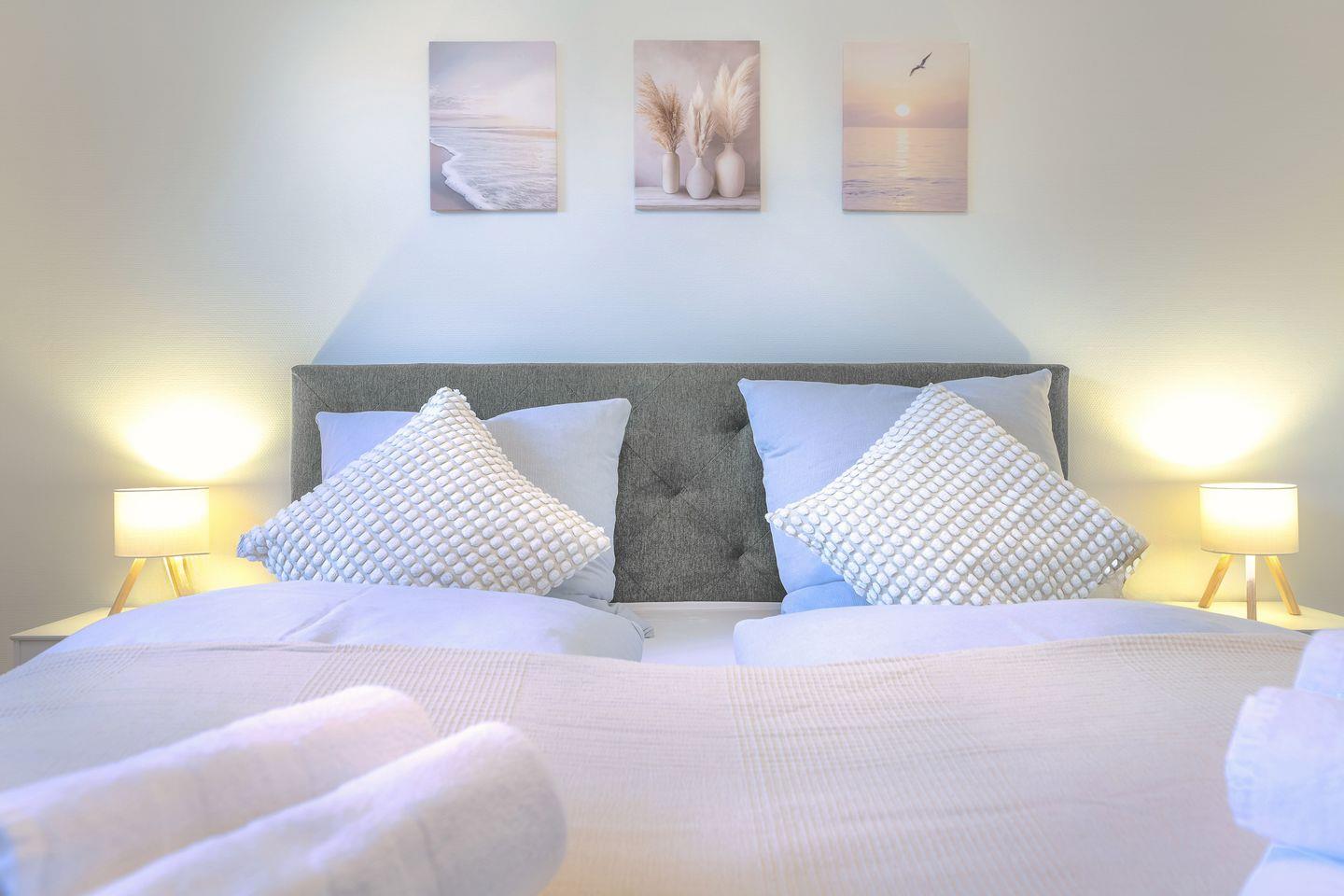 Zwei separate Schlafzimmer bieten dir komfortable Boxspringbetten und jeweils einen eigenen Smart-TV. Die klare Gestaltung und hochwertige Ausstattung schaffen eine entspannte Umgebung zum Ausschlafen und Erholen.