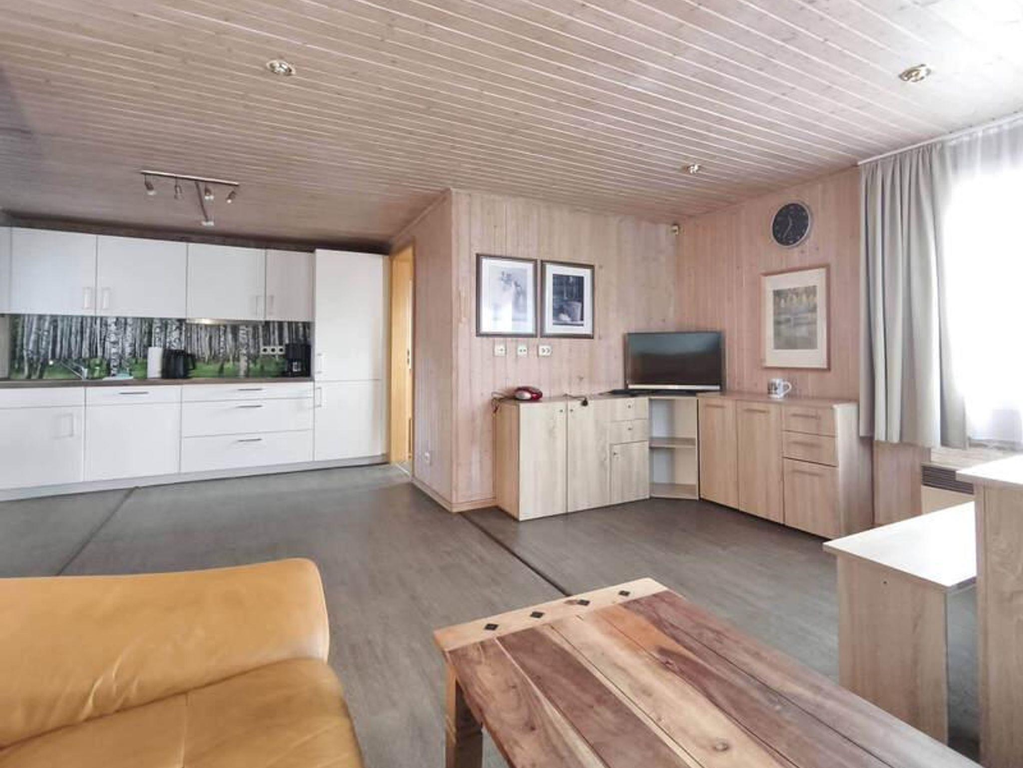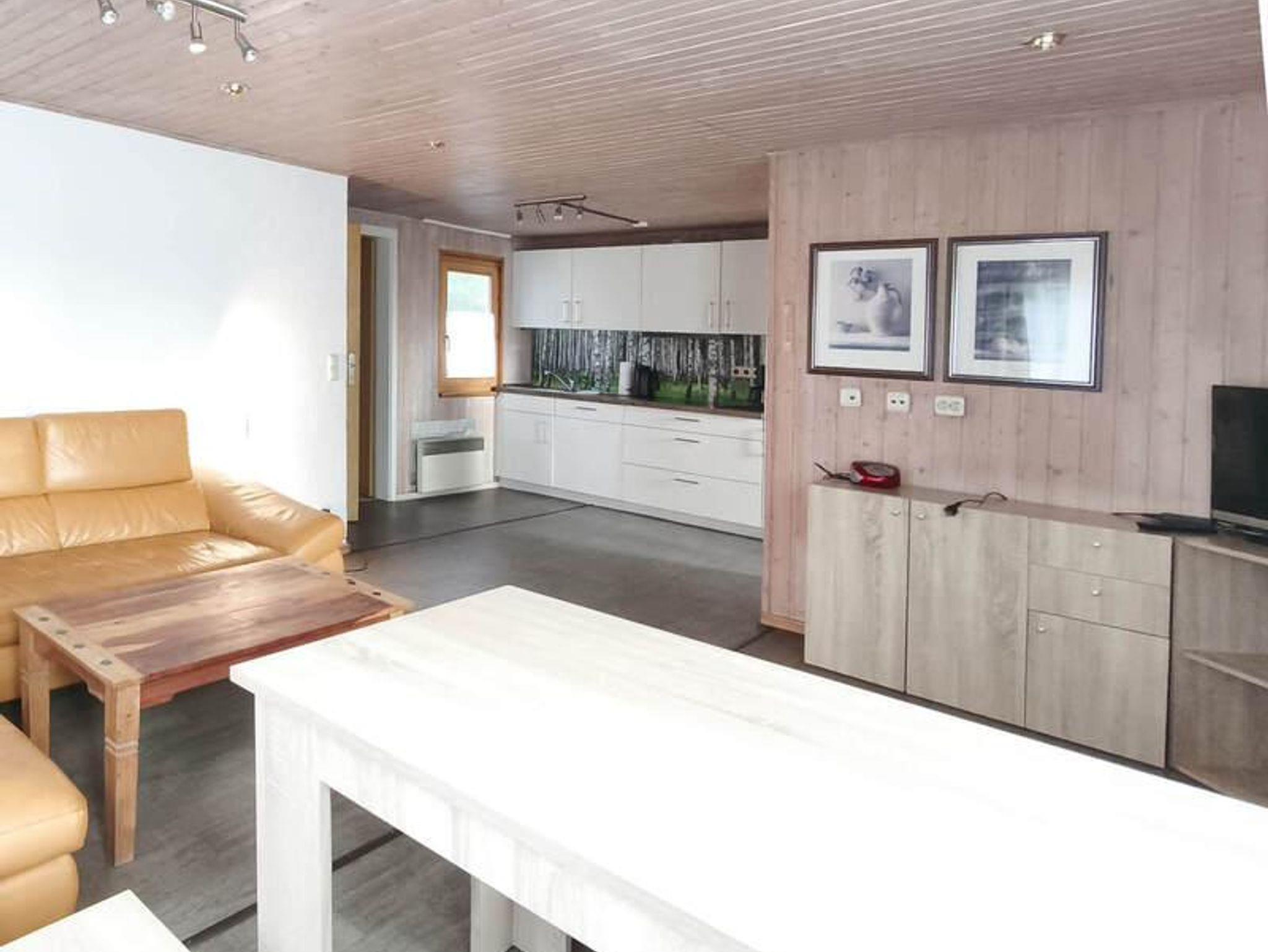 Vollausgestattete Küche und großzügiges Wohnzimmer.