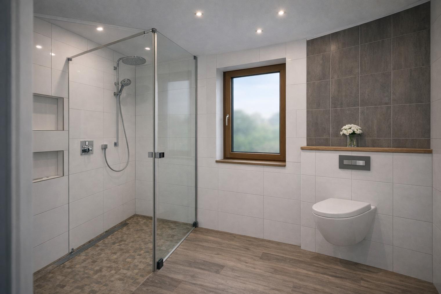 - Zwei moderne Tageslicht-Badezimmer mit Regendusche