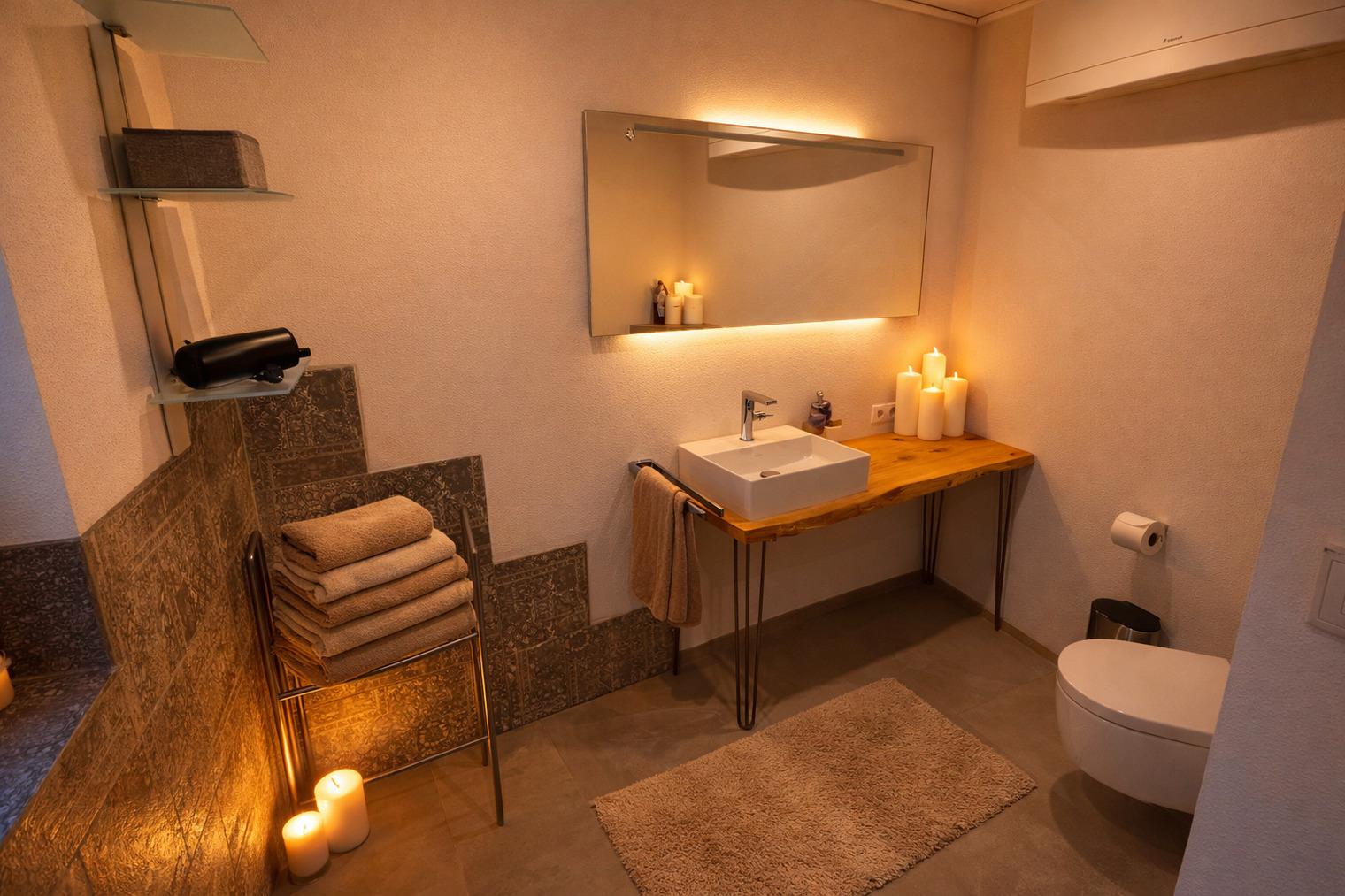 - Ein modernes Tageslicht-Badezimmer mit Regendusche