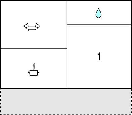 Opholdsstue 23m2 - 2 Sovepladser. (Sofa, madras eller lignende).