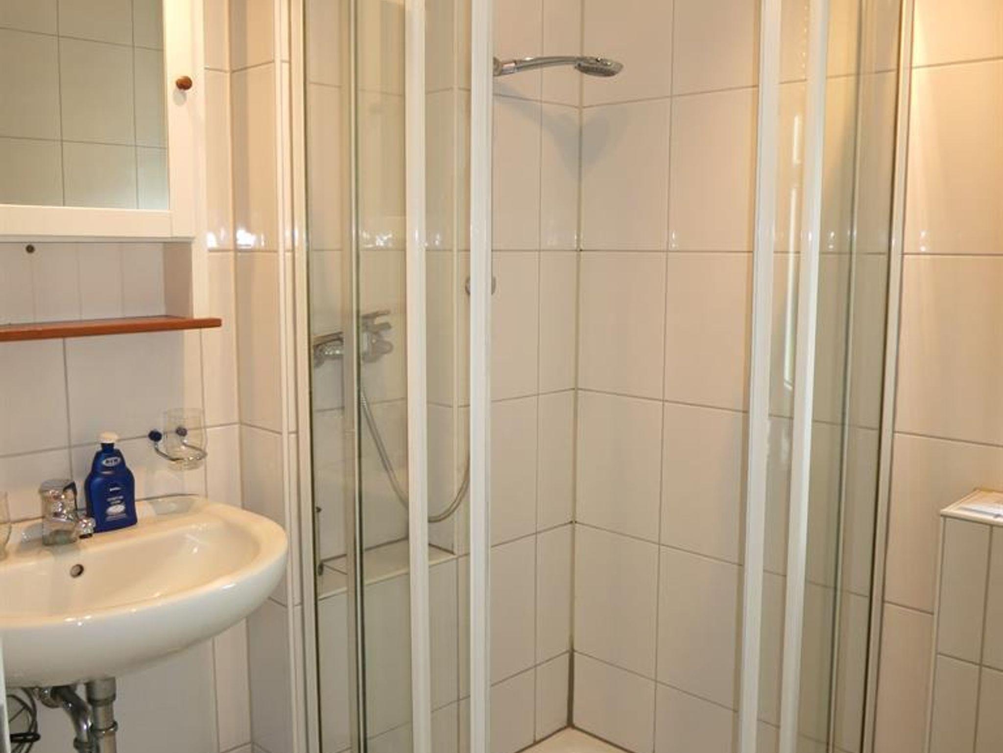 Das Bad ist mit einer Dusche ausgestattet.