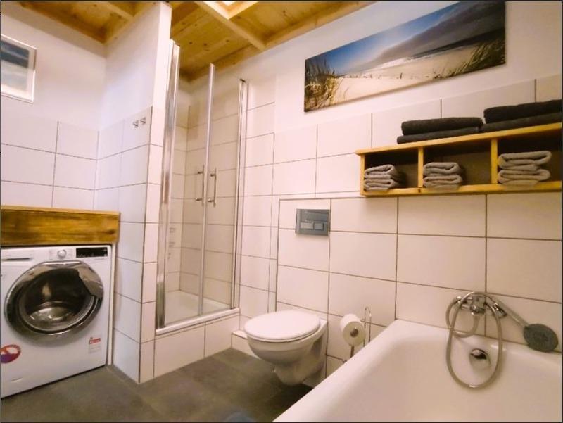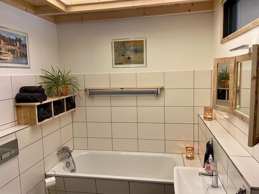 offener Küche auf ca. 45m². Ein Schlafzimmer mit Doppelbett ca. 13m². Badezimmer 8 m² mit Duschbad und Badewanne.