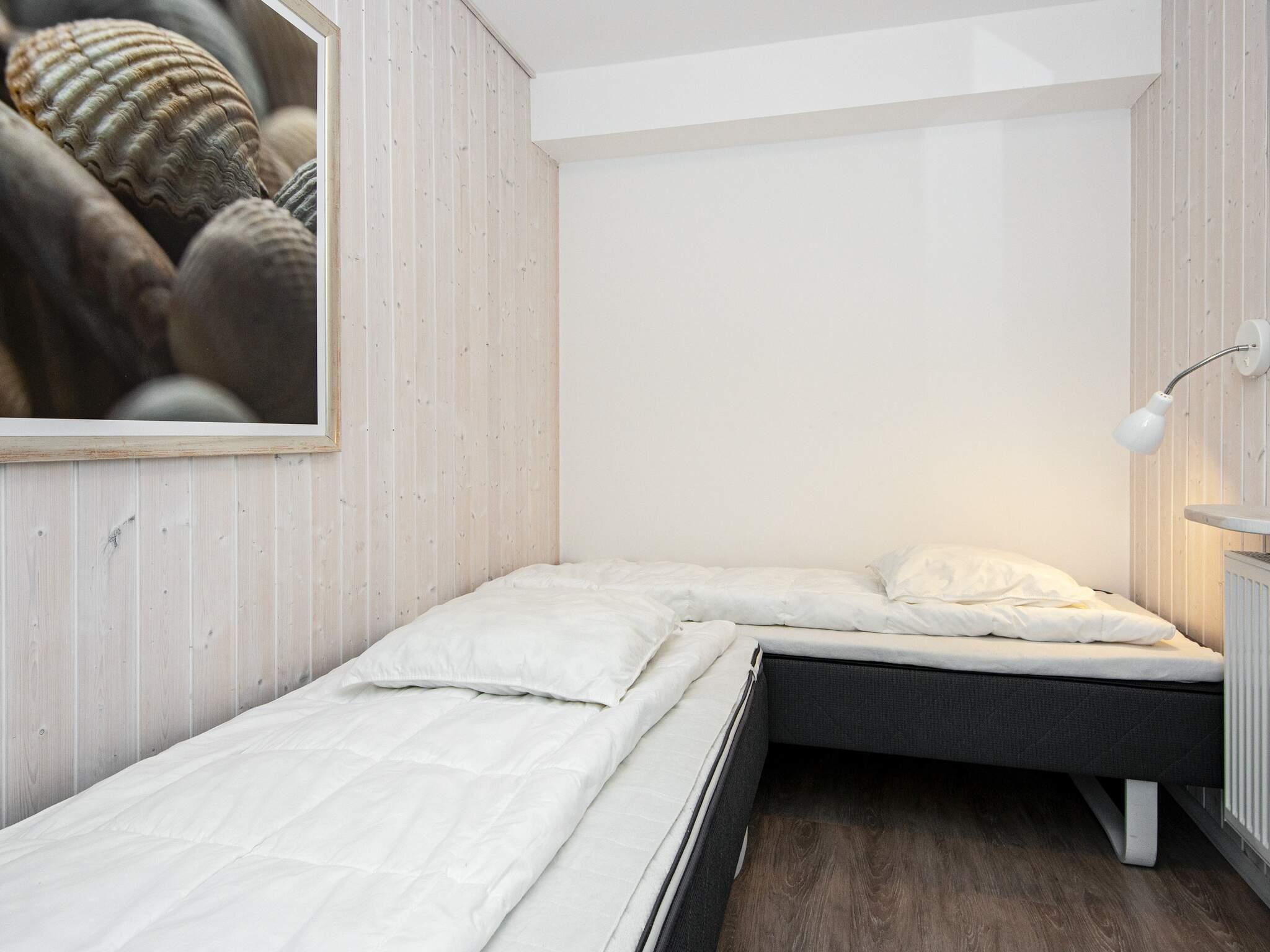 Huset er moderne indrettet og de træbeklædte vægge og skrånende lofter giver huset en lys atmosfære. I stueetagen er der to soveværelser og et badeværelse med bruseniche, gulvvarme og sauna, så I har god mulighed for at slappe af.