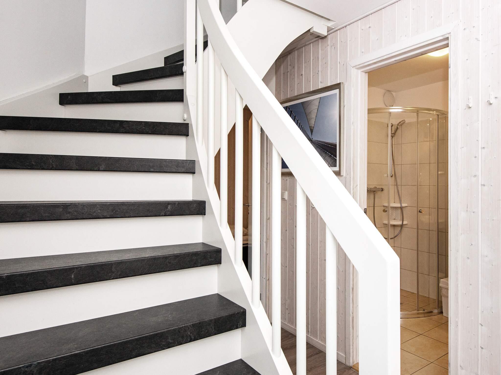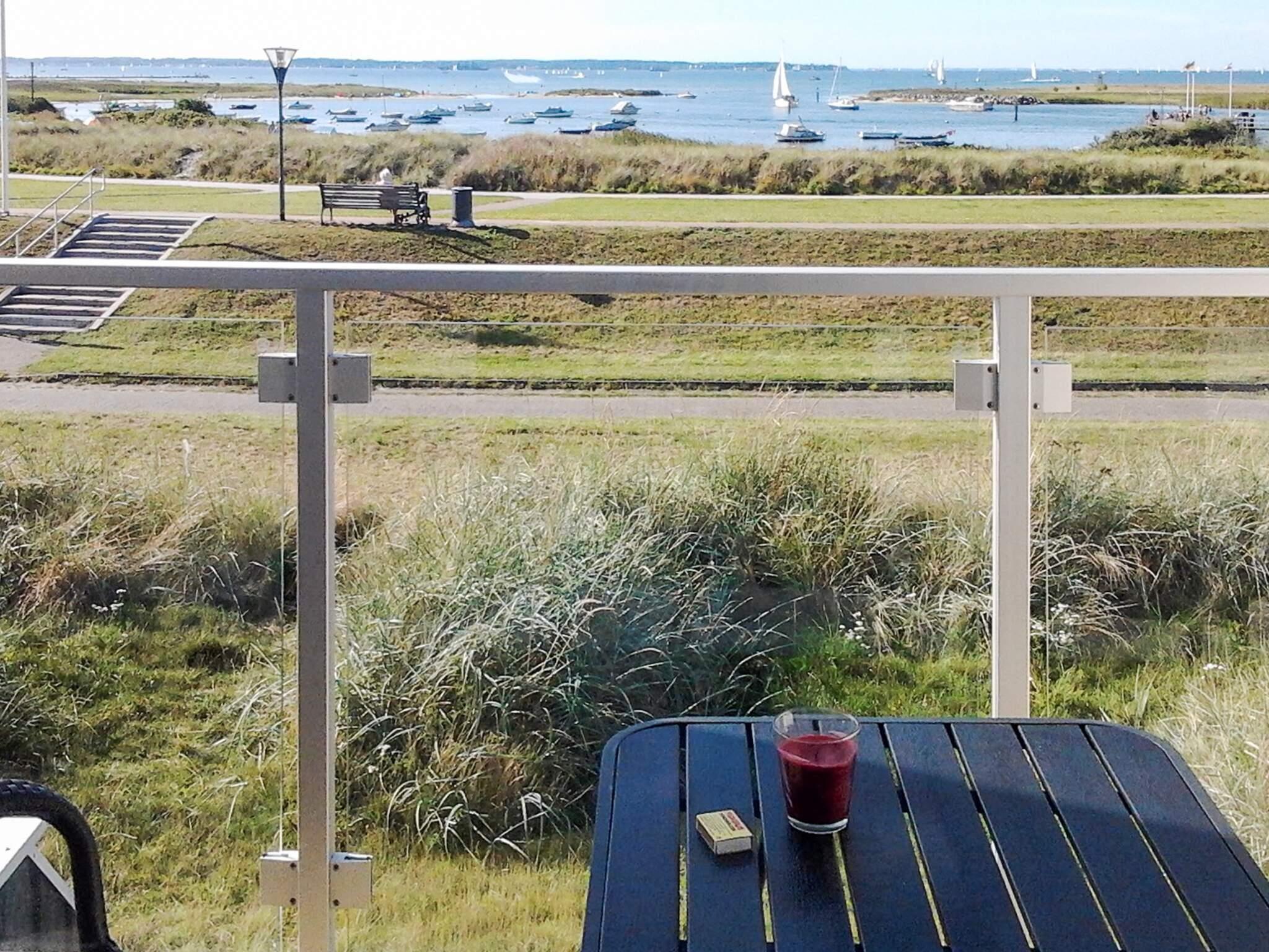 Køkken, spise- og opholdsstue ligger på 1. sal, hvorfra I har et flot udsyn over vandet og området. Herfra er der udgang til den praktisk overdækkede terrasse på 1. etage, den såkaldte loggia, hvor I kan forlænge den skønne sommeraften og nyde panoramaudsigt mod diget og den bagvedliggende strand. Huset er på 1. sal udstyret med en kikkert, så I nøje kan betragte fugle, skibsfart og den pragtfulde udsigt.