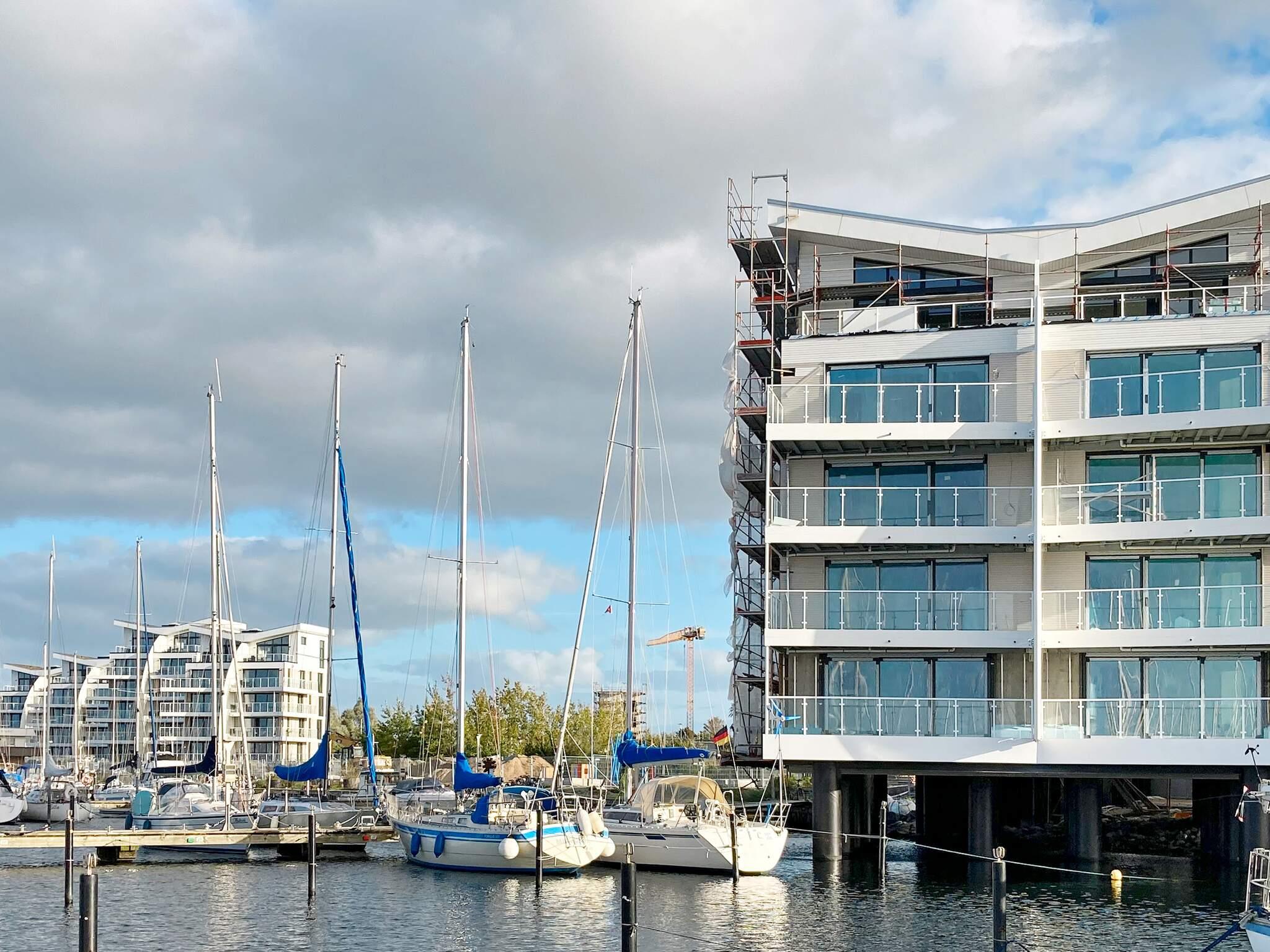 Moderne og komfortabel ferielejlighed direkte ved vandet med en fantastisk panoramaudsigt. Vandvillaerne tilbyder en uforglemmelig udsigt over Østersøen og marinaen fra morgen til aften.