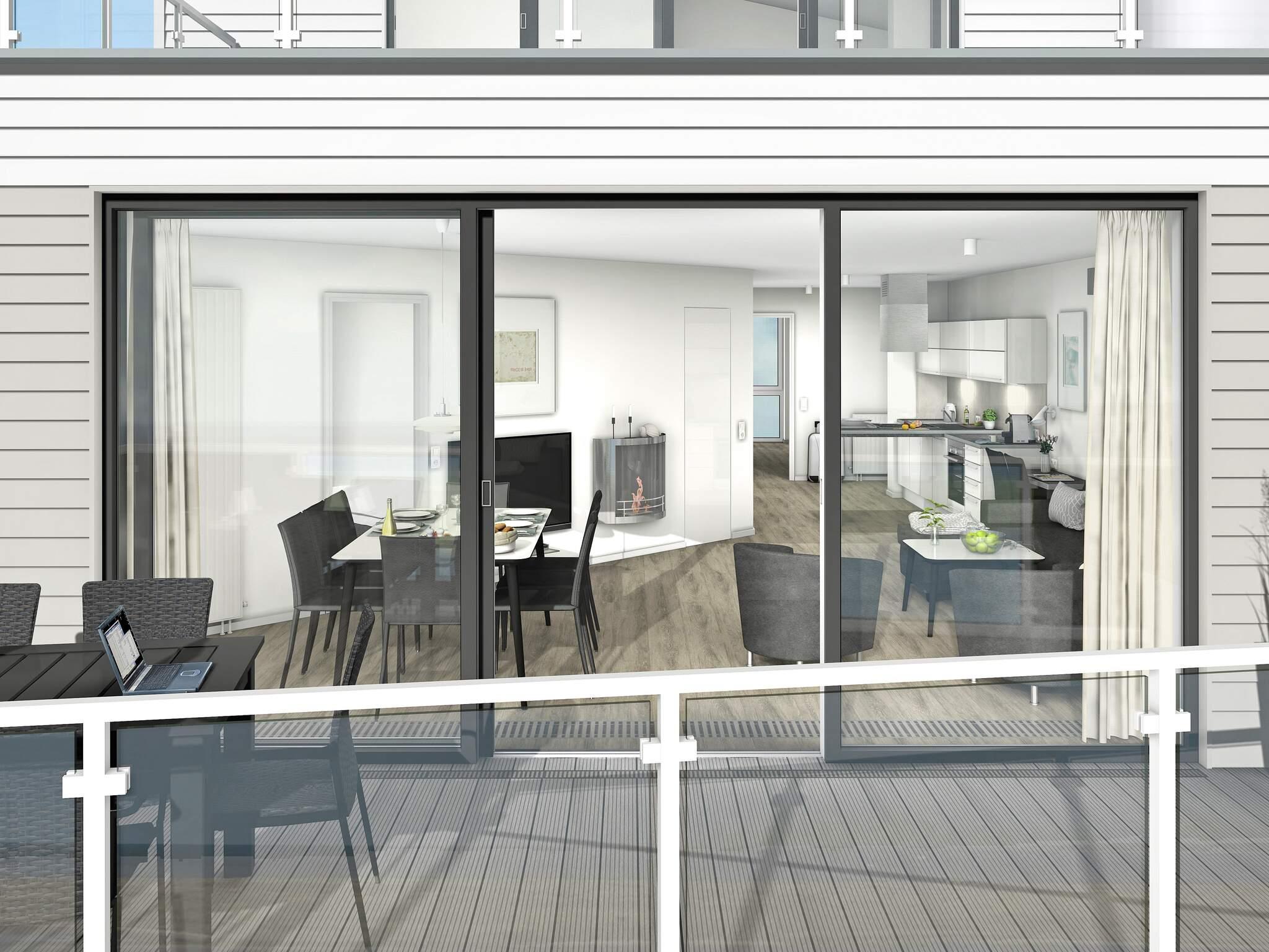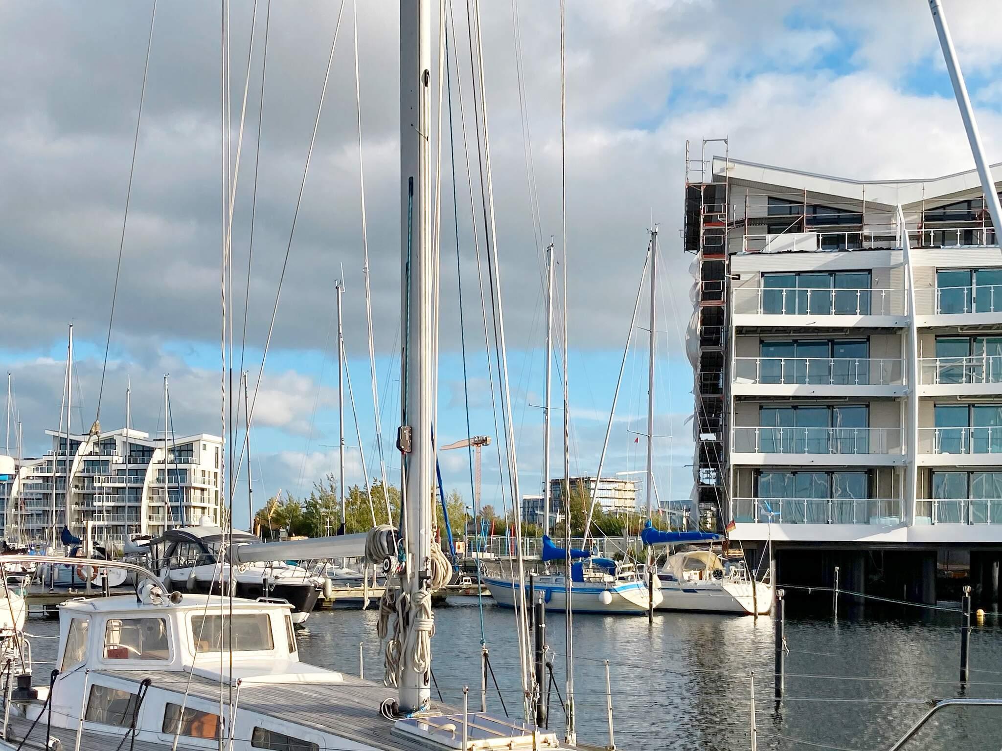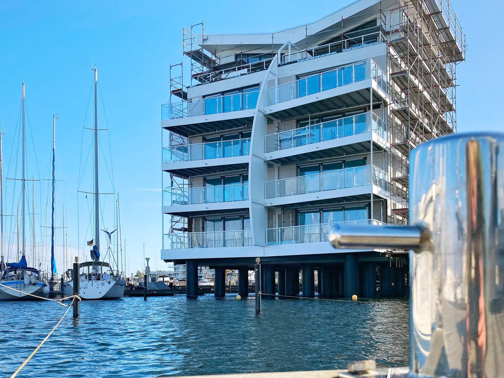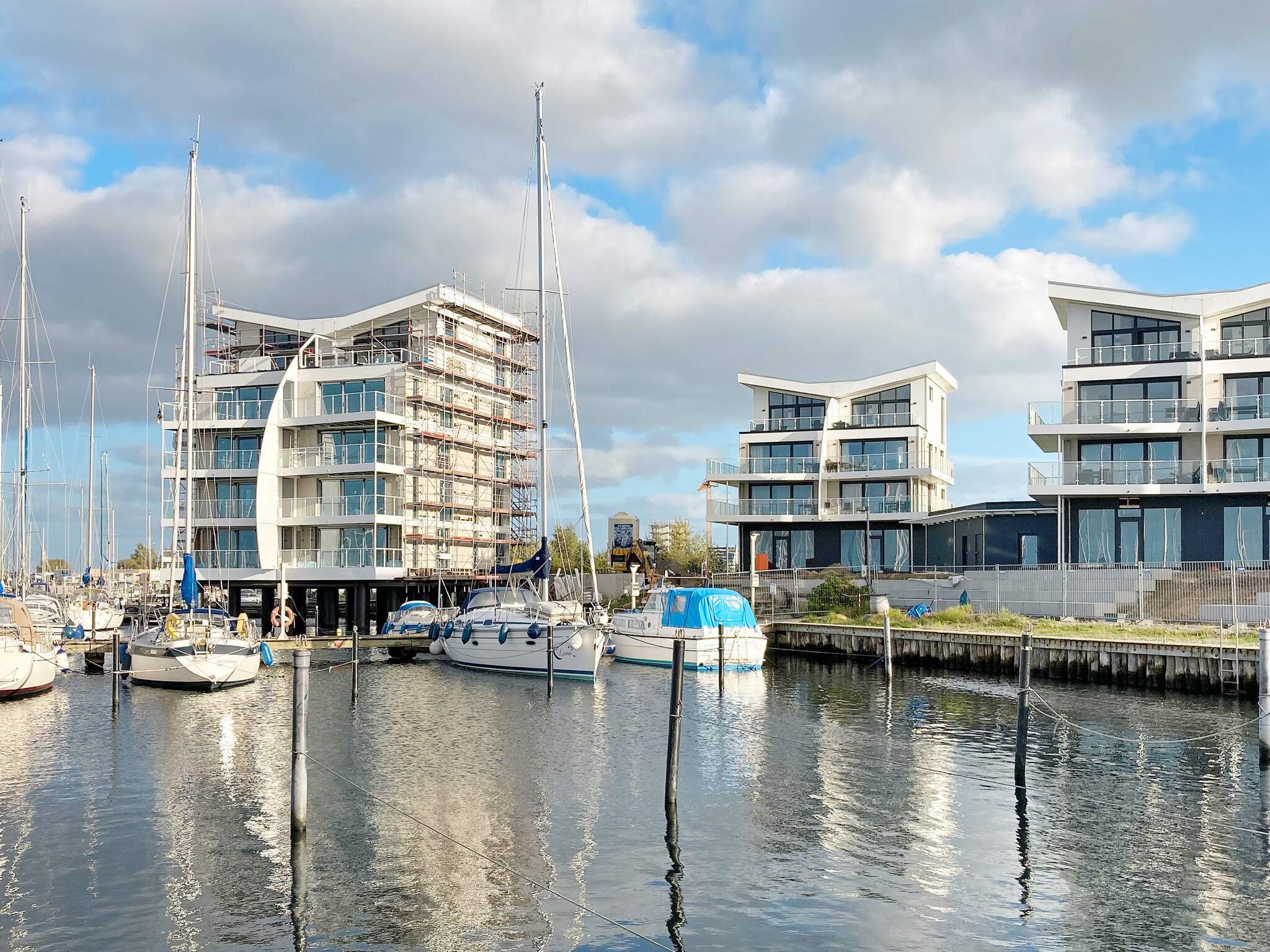 Moderne og komfortabel ferielejlighed direkte ved vandet med en fantastisk panoramaudsigt. Vandvillaerne tilbyder en uforglemmelig udsigt over Østersøen og marinaen fra morgen til aften.