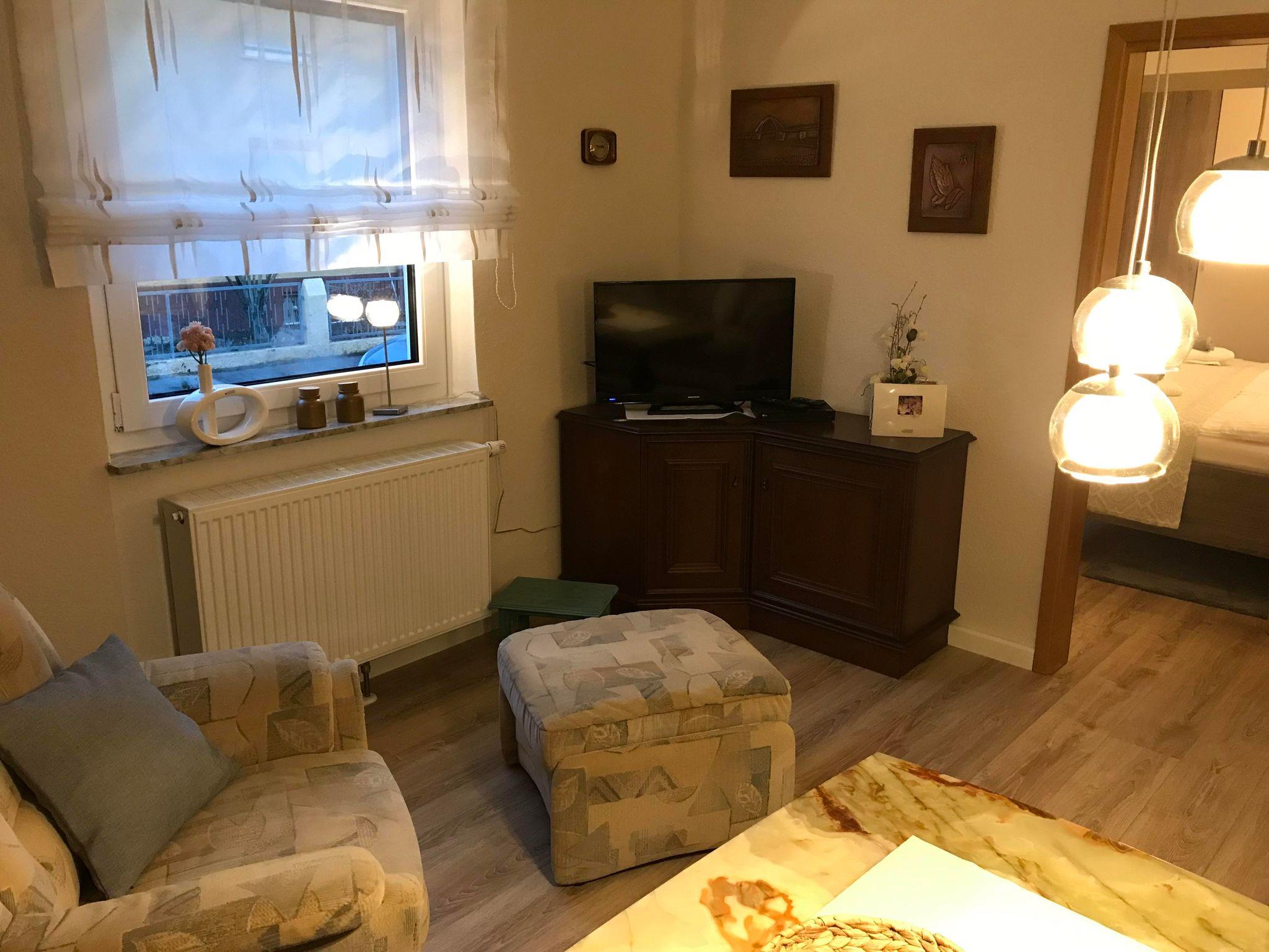 In unserer gemütlichen Ferienwohnung Melanie freuen Sie sich auf einen Urlaub auf 55 m² Wohnfläche mit WLAN-Ausstattung und Terrasse und Garten mit Grillmöglichkeit. Eine komfortable Einbauküche, ein bequemes Doppelbett, ein bequemes Sofa mit Sessel und eine zeitgemäße Ausstattung mit Elektrogeräten machen Ihren Urlaub zur puren Erholung. Wir vermitteln auf Wunsch geführte Wanderungen (entsprechende Vorlaufzeit einplanen) und halten Informationen zu Ausflugszielen für Sie bereit. Auf unsere Gäste wartet immer ein Willkommenstrunk!