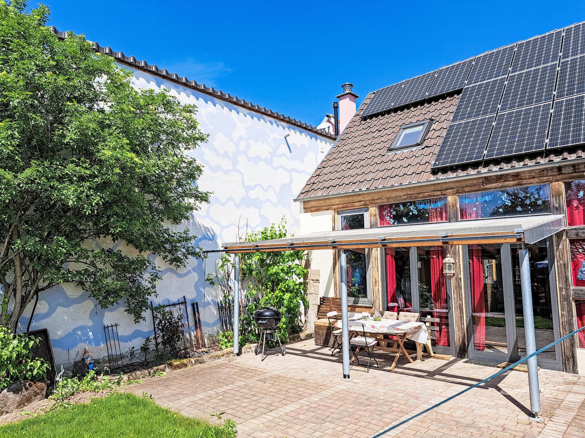 Quiet, idyllic, high fairytale-like equipment with highest comfort. 4 DTV stars - direct access to hiking trails and good connection via largely deserted roads to renowned cycle paths, a lovely, slightly hilly landscape in the Haßberge Nature Park, good shopping facilities for conventional and organic food with short distances, including a village shop (1 km on foot, bike or car) with high-quality organic products from the counter-star water fun, garden, meadows and terraces. Additional hire of the yoga room possible.